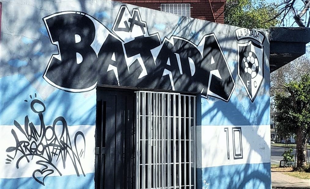 This artwork is located at Avenida Uriburu 489 in the neighborhood „La Bajada“ and the football club house of the FC La Bajada with the GPS coordinates -32.99057, -60.64013. World champion Lionel Messi grew up around here.