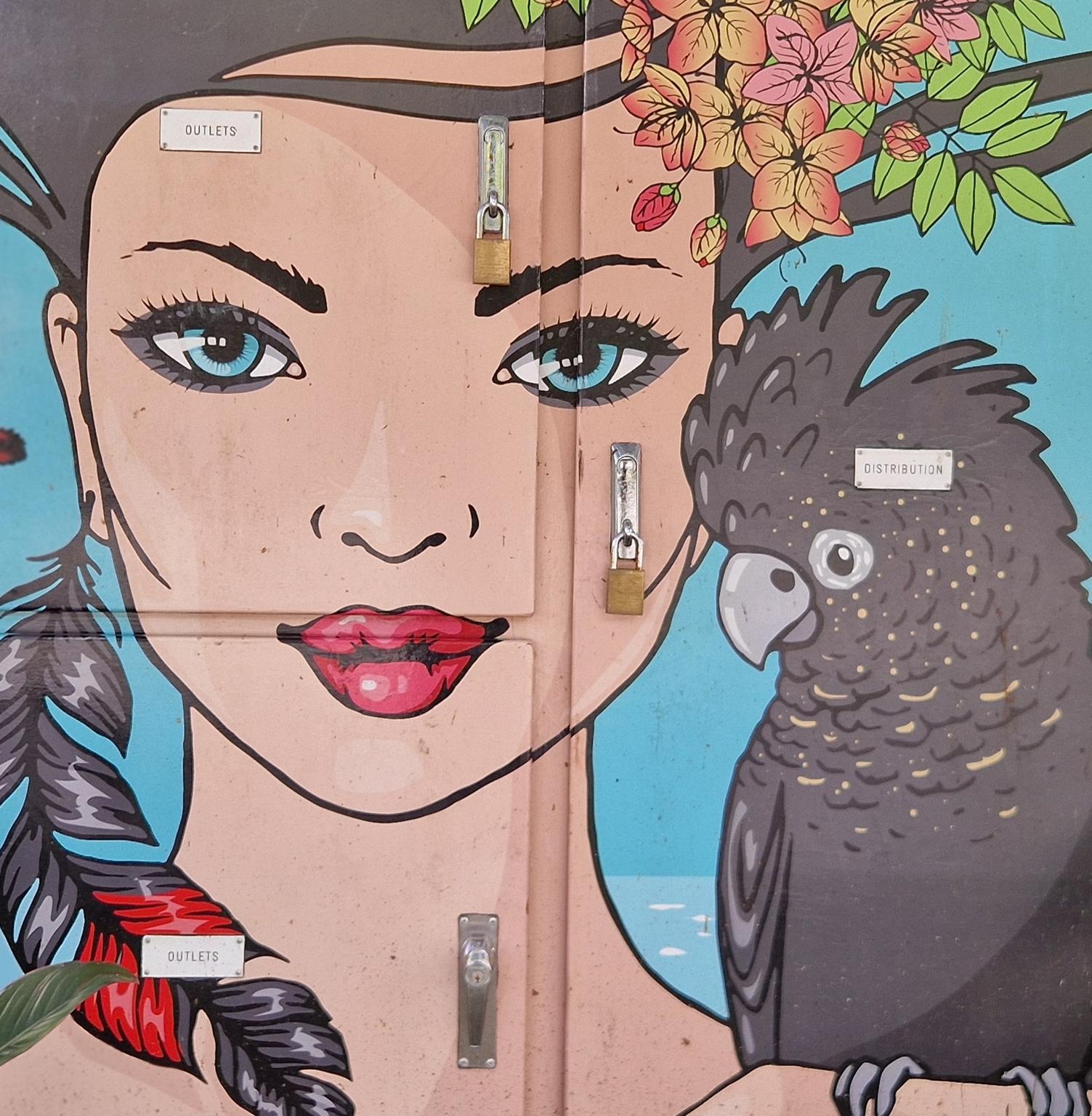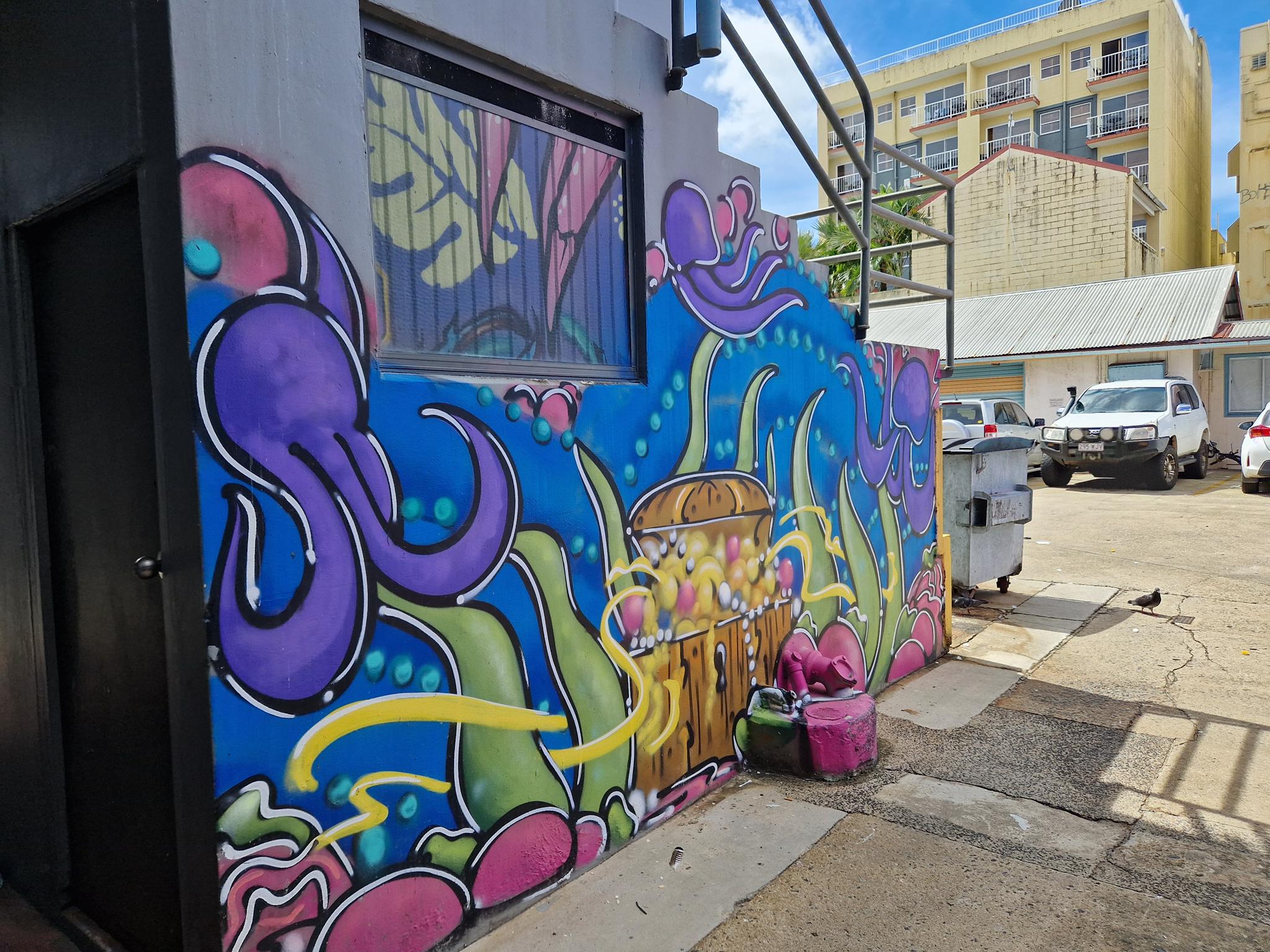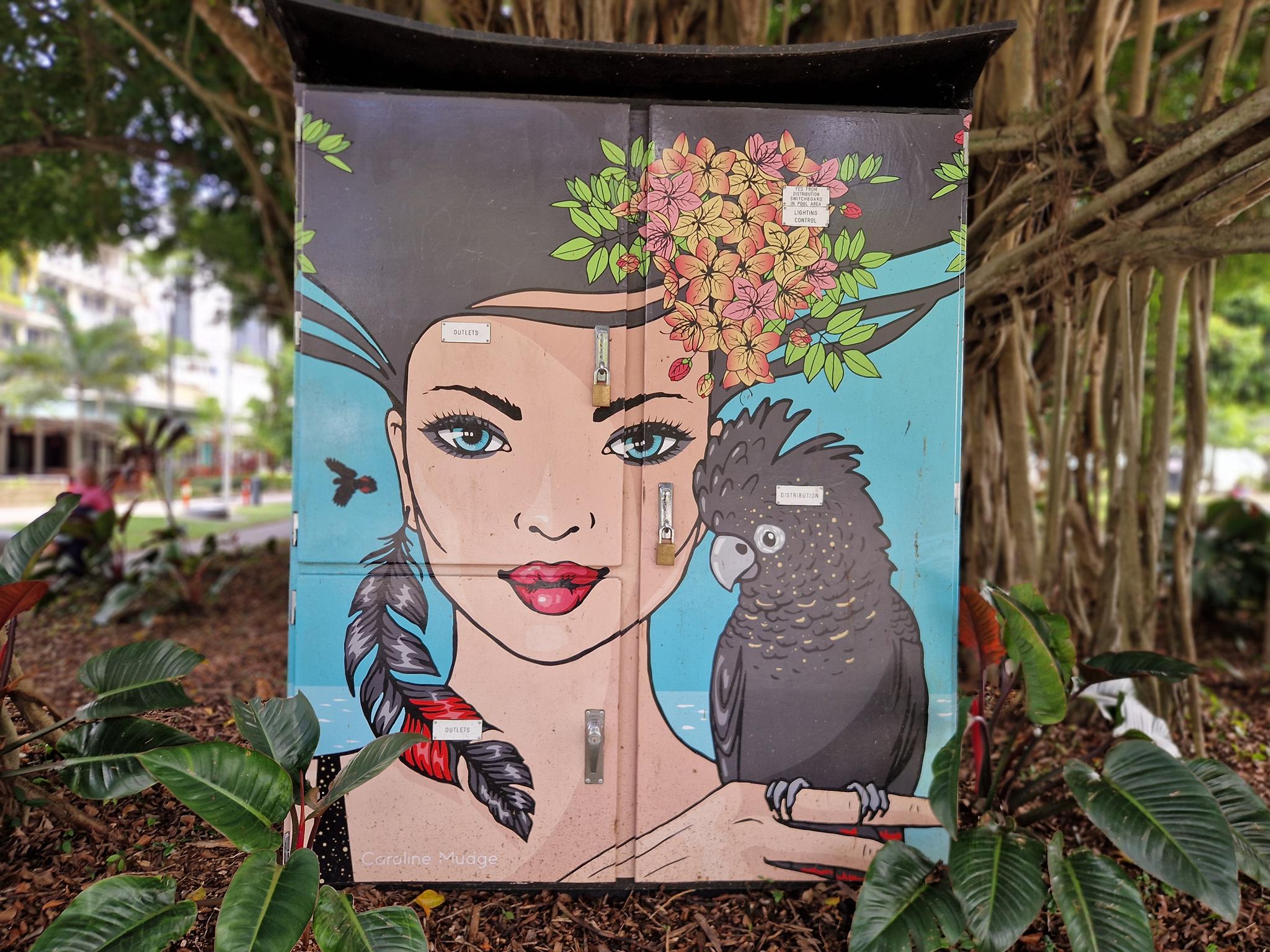 Cairns is a city in northern Queensland with around 150.000 residents in the urban area and it was established in the late 19th century as a port serving nearby gold and tin mining operations and later the sugar industry. In the 20th century the city grew into a key commercial and logistics hub and became an important military base in the Pacific during World War II. Today, it is best known as a gateway to the Great Barrier Reef and tropical northern Australia. Beyond tourism, Cairns has developed a growing urban art scene, with murals and public artworks playing an increasingly visible role in the cityscape. Many works reference Indigenous culture, tropical landscapes, and regional identity, often created in collaboration with local communities. A major platform for Indigenous contemporary art is the CAIRNS INDIGENOUS ART FAIR, which showcases Aboriginal and Torres Strait Islander artists and has become an important national cultural event. The CAIRNS FESTIVAL also contributes to the city’s public art culture through installations, performances, and street-based art projects. Alongside this, local artist collectives and mural initiatives supported by institutions such as the TANKS ART CENTRE. Here we have a collection of great urban artworks photographed by graffiti hunter and streetart lover MAZZANTI. Check out her instagram channel, where she regulalry presents great pictures from Sweden and from other countries all over the world.