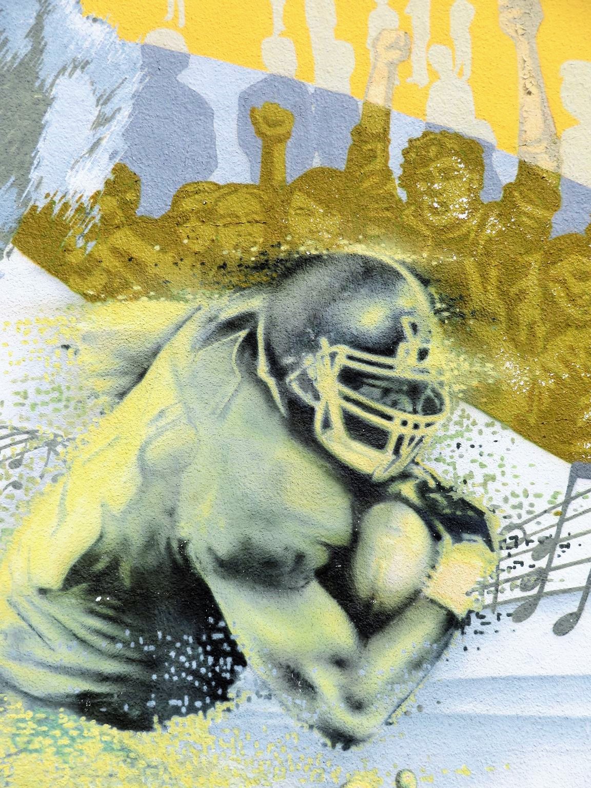 This one on a wall of a school dedicated to sport-study. The school has a basketball and football program. The teams are called the Golden Eagles. – Patrice Loranger