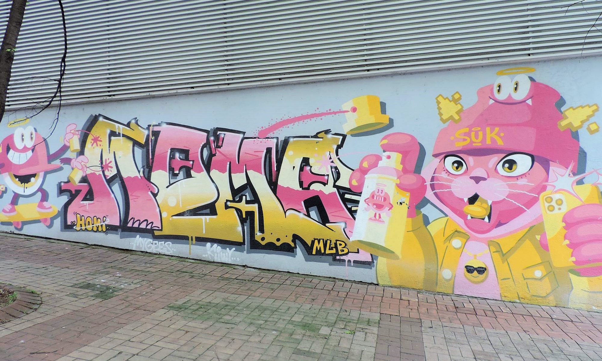 The Hongik University in Seoul is a renowned private academy, particularly known for its popular programs in art, design, and architecture. Founded in 1946, the main campus is located in the lively Hongdae district, a cultural center of the metropolis with numerous galleries, cafés, and live music venues. The Red Road in particular is a popular route where you can find numerous urban artworks. Also a lot of artists are based throughout the surrounding neighbourhood, as well there are ateliers and creative spaces. And the walls are accordingly decorated with colorful graffiti and streetart of course!