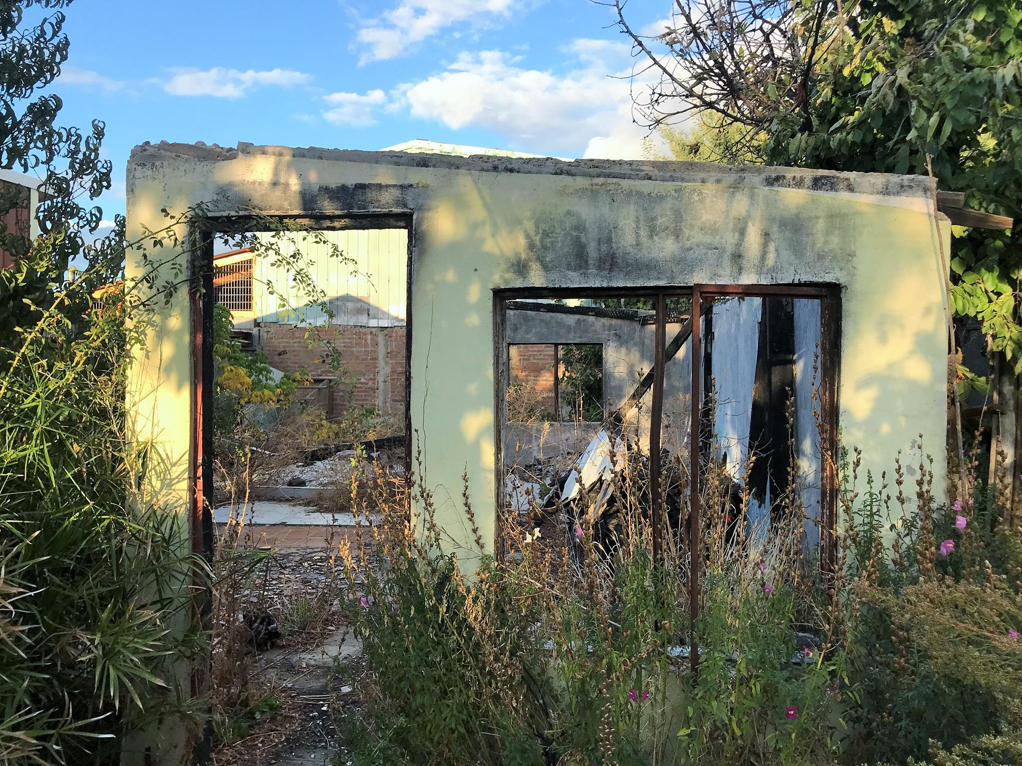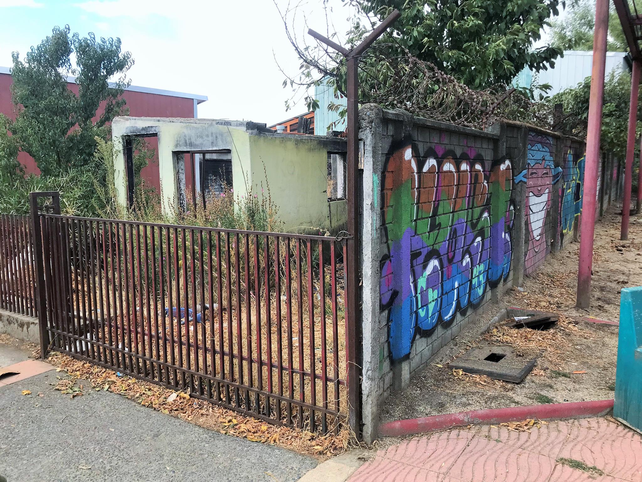 The abandonment of the plaza is also exacerbated by the property where the mural is located, as the house is burned and abandoned, as can be seen in the last photographs.