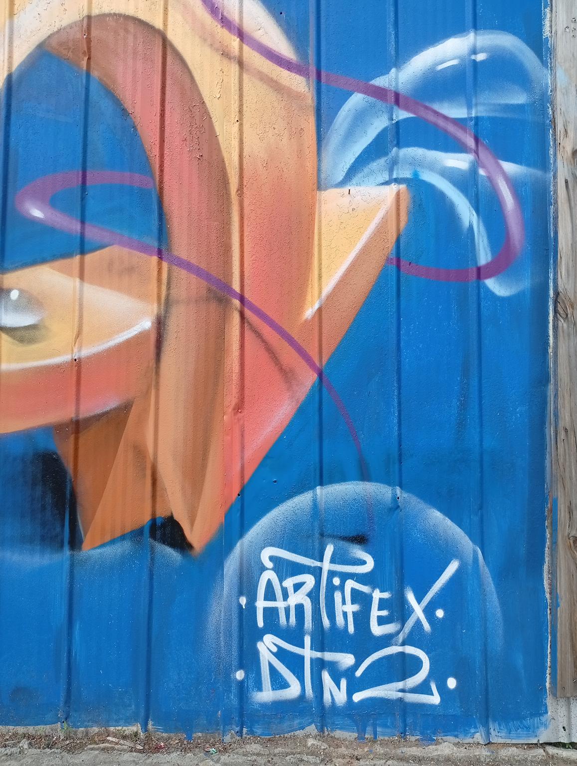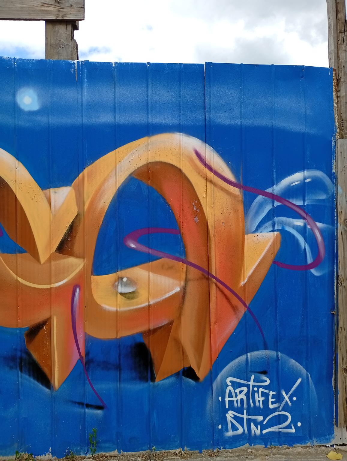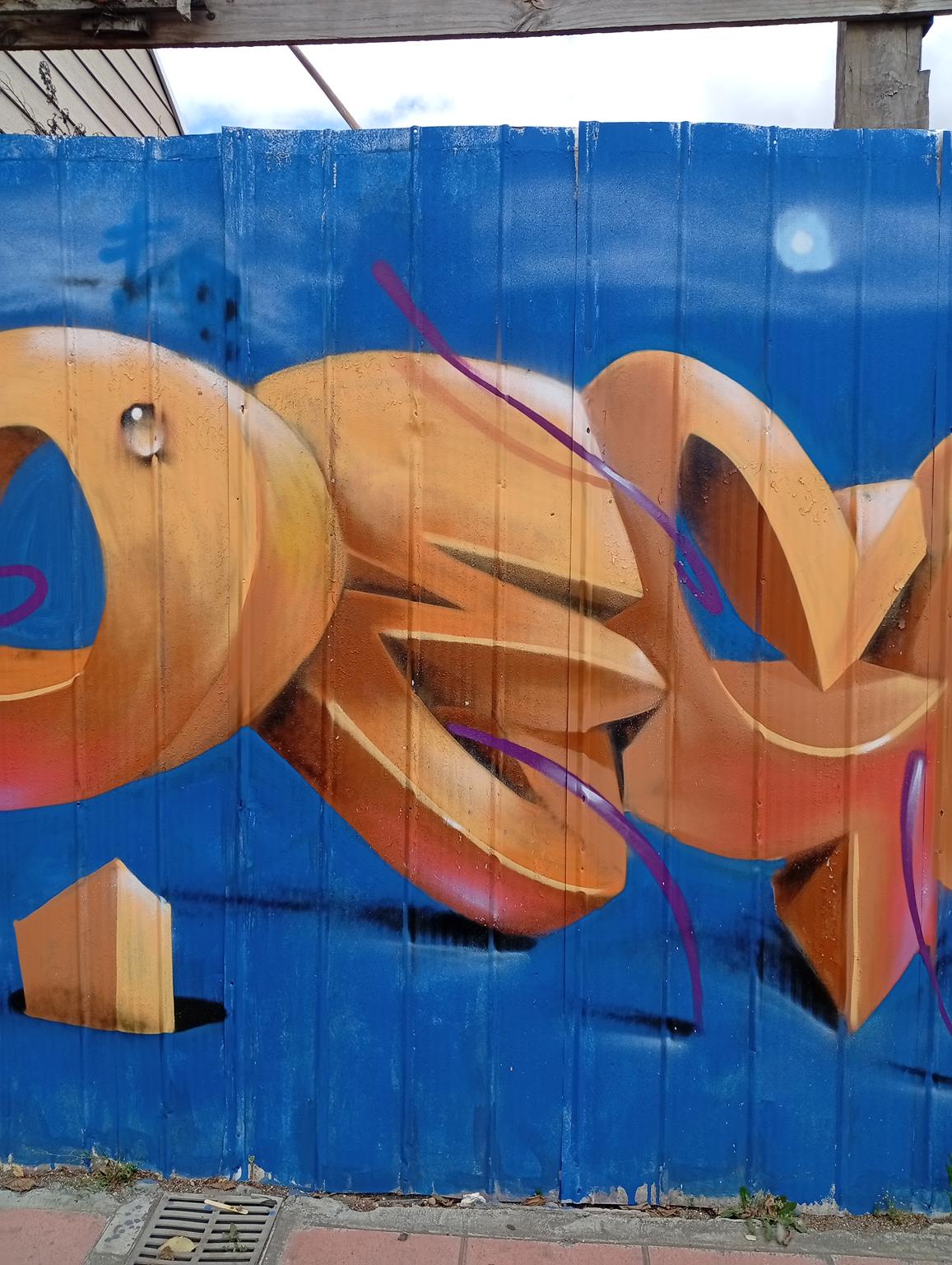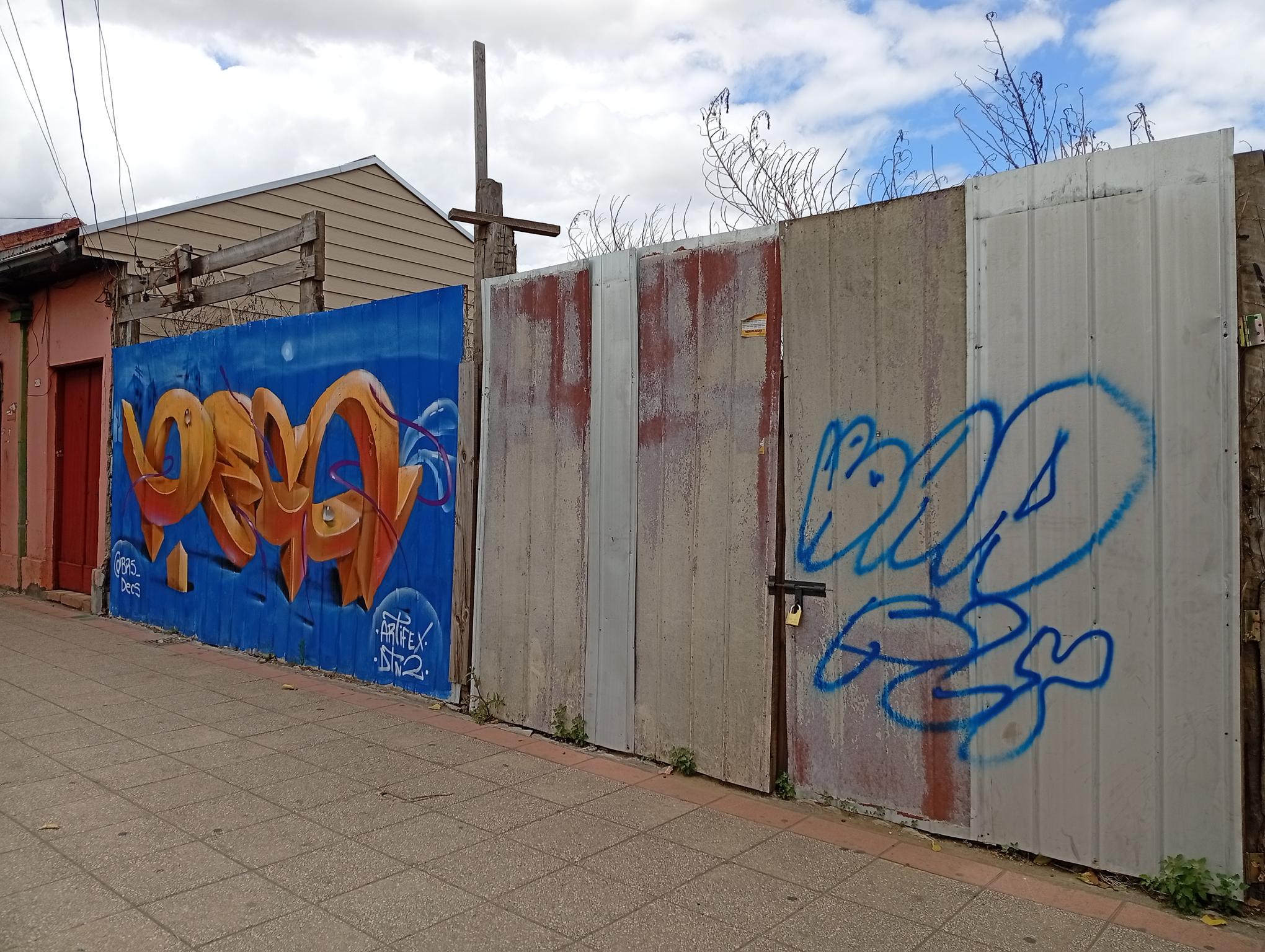 DECS, an artist from Temuco, was visiting a relative and wanted to leave his art on the main avenue of Angol, the one that crosses the Rehue River Bridge and leads to the city center or downtown. DECS belongs to the DETONAOS FAMILY aka DTN2 CREW, a group of great artists from Temuco, a city 130 km south of Angol. It is there that DECS began to develop his art. The graffiti shown here is a flop that says DECS, short for the Spanish word “decoras” (decorate). The artist intends to decorate everything with their paint and do it wholeheartedly, which is why they chose DECS as their artistic name.