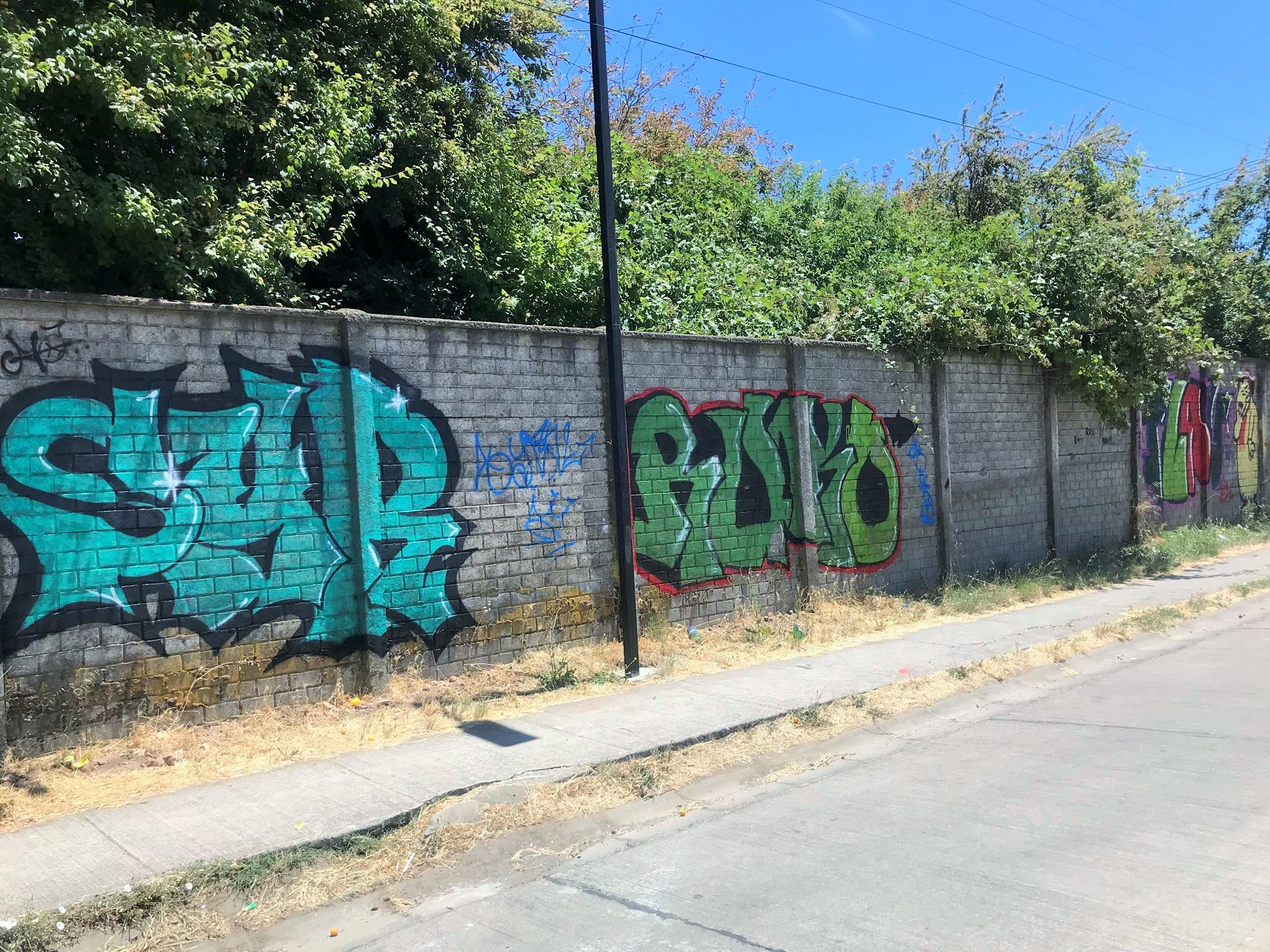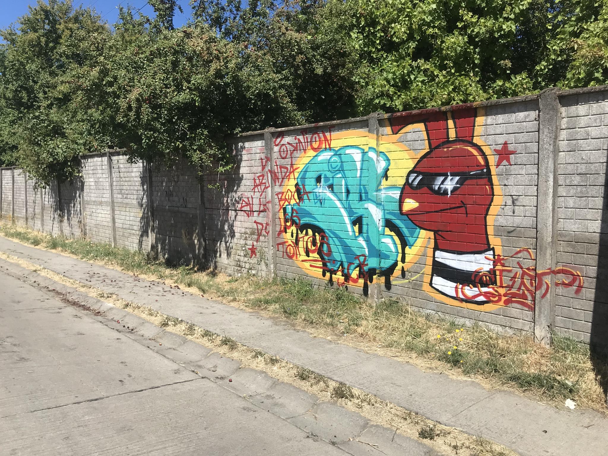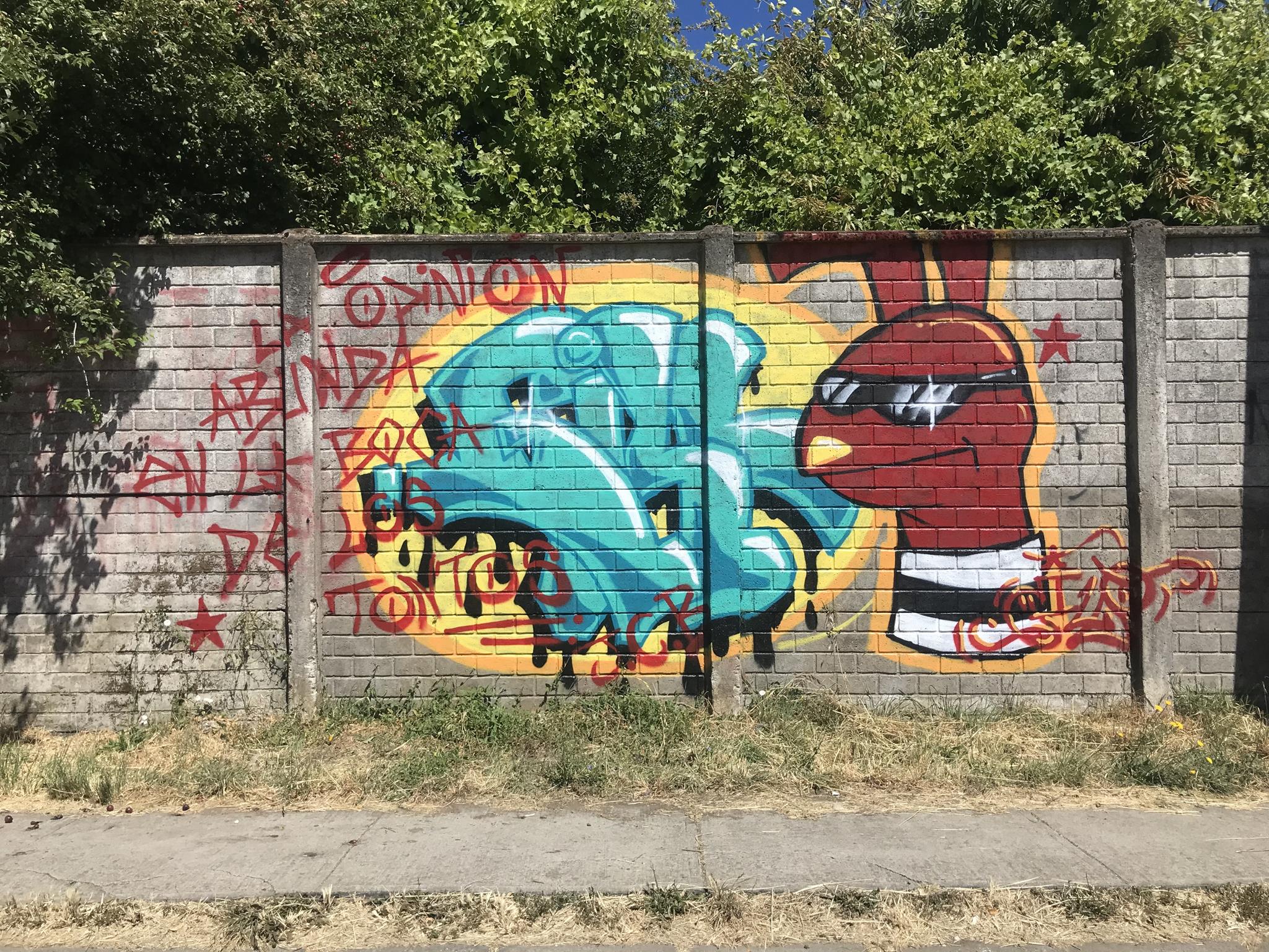 This wall of almost 100 meters, since the pre-bicentennial period of Chile (before September 18th 2010) had only the graffiti that is on the corner with Colima Street. And after all these years, that graffiti remains in good conditions and without any third-party intervention, as these photos that were taken in December 2024 attest.