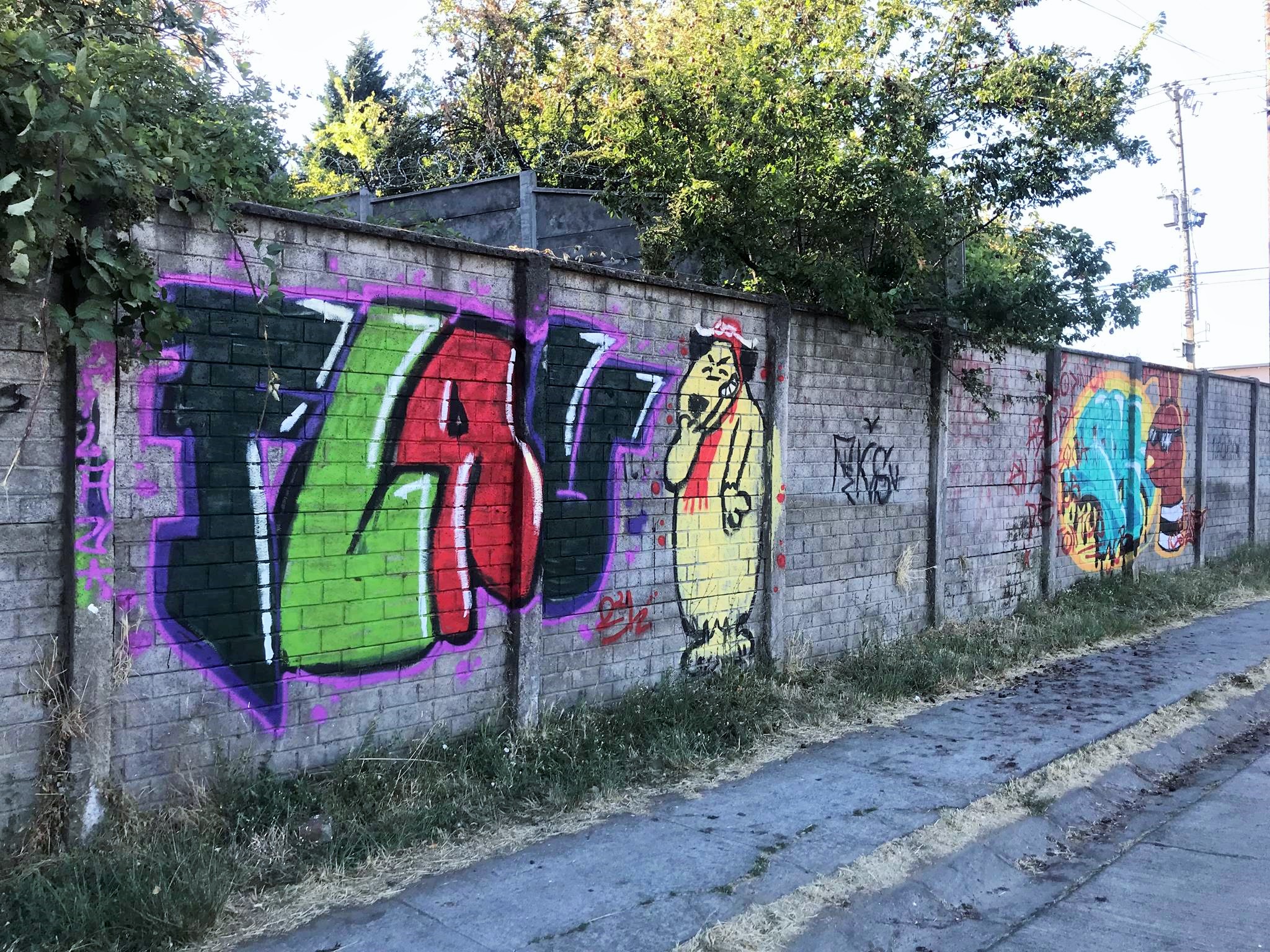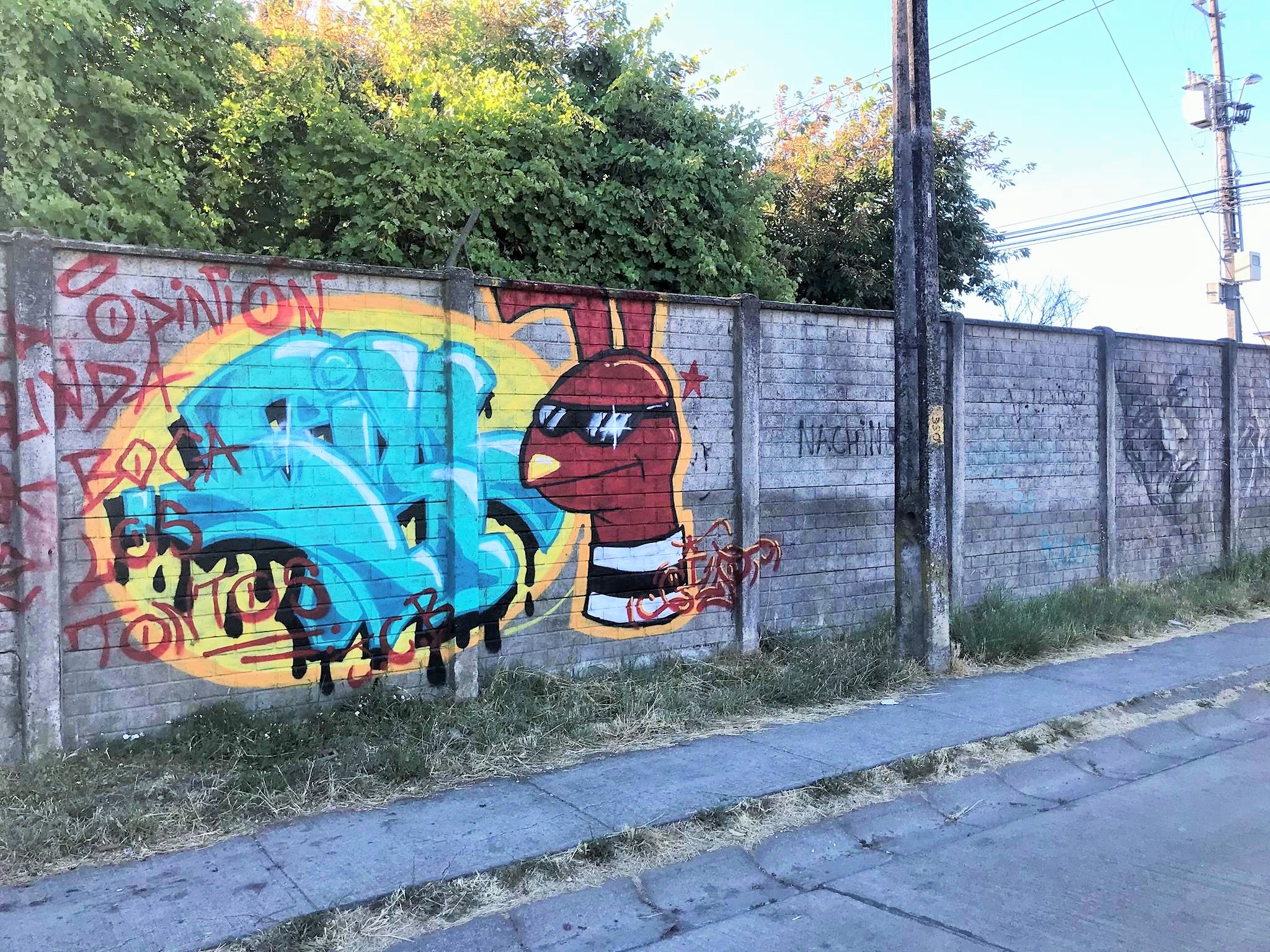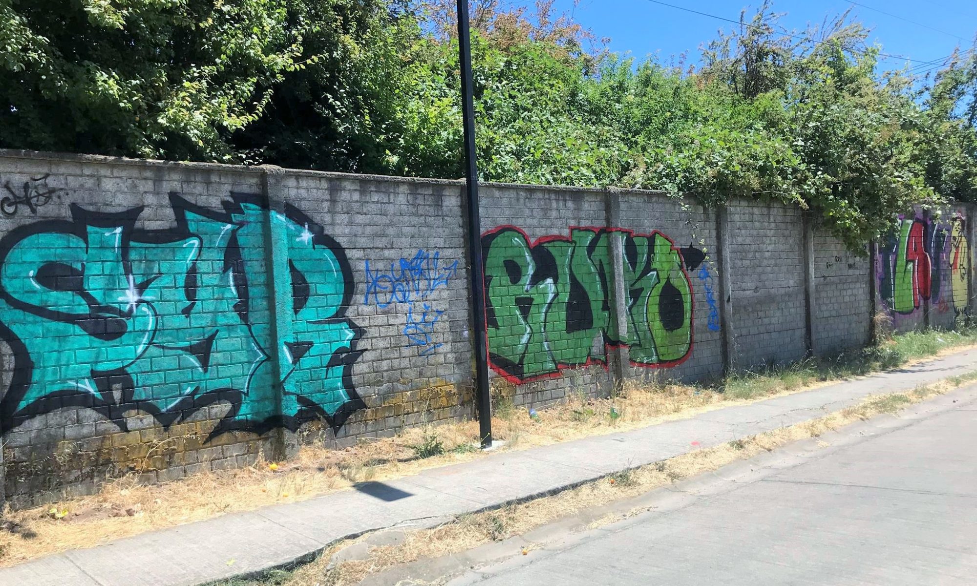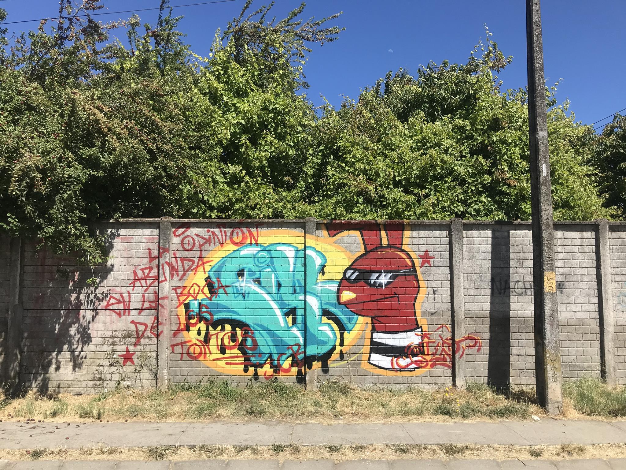 This wall of almost 100 meters, since the pre-bicentennial period of Chile (before September 18th 2010) had only the graffiti that is on the corner with Colima Street. And after all these years, that graffiti remains in good conditions and without any third-party intervention, as these photos that were taken in December 2024 attest.