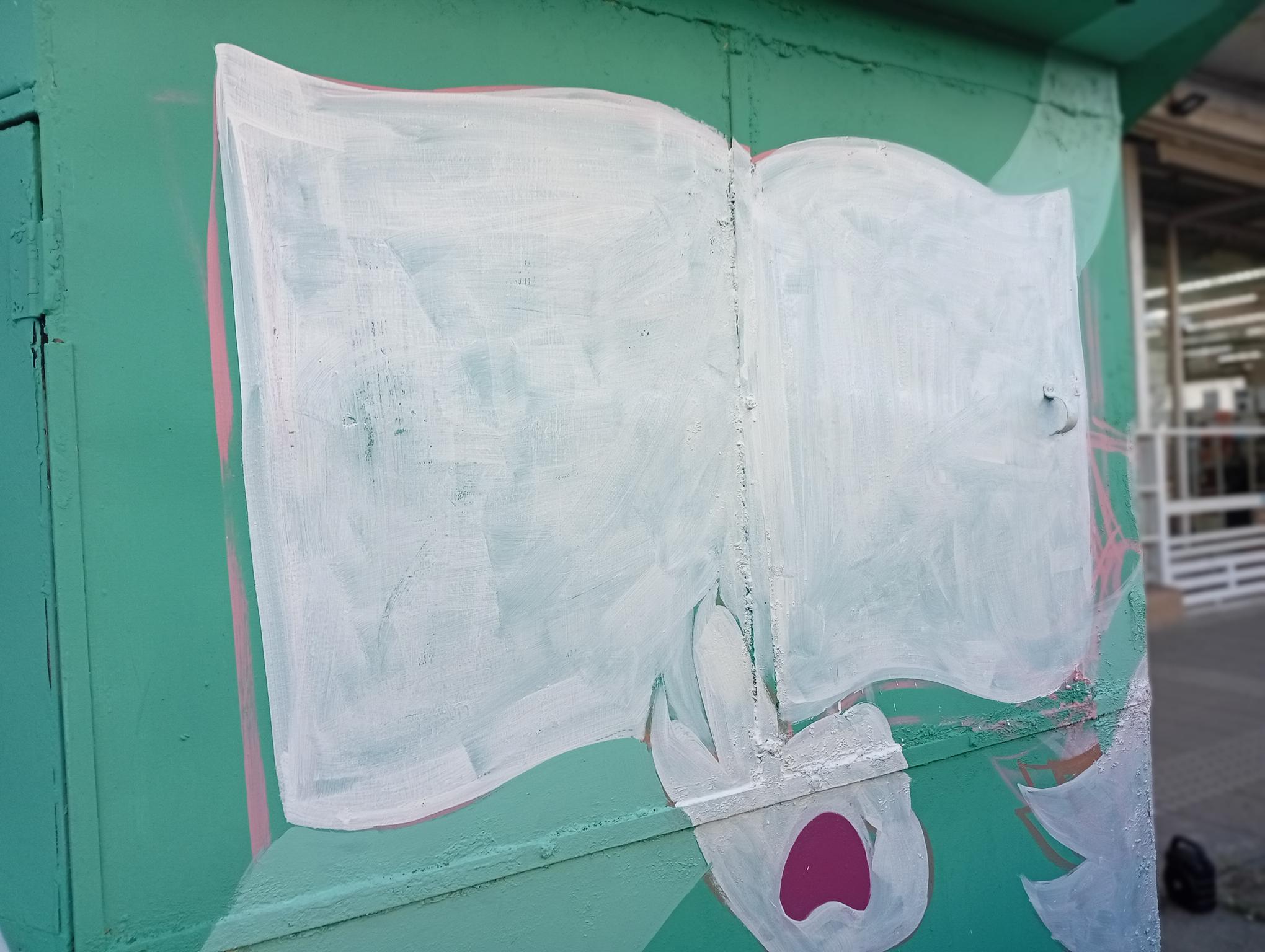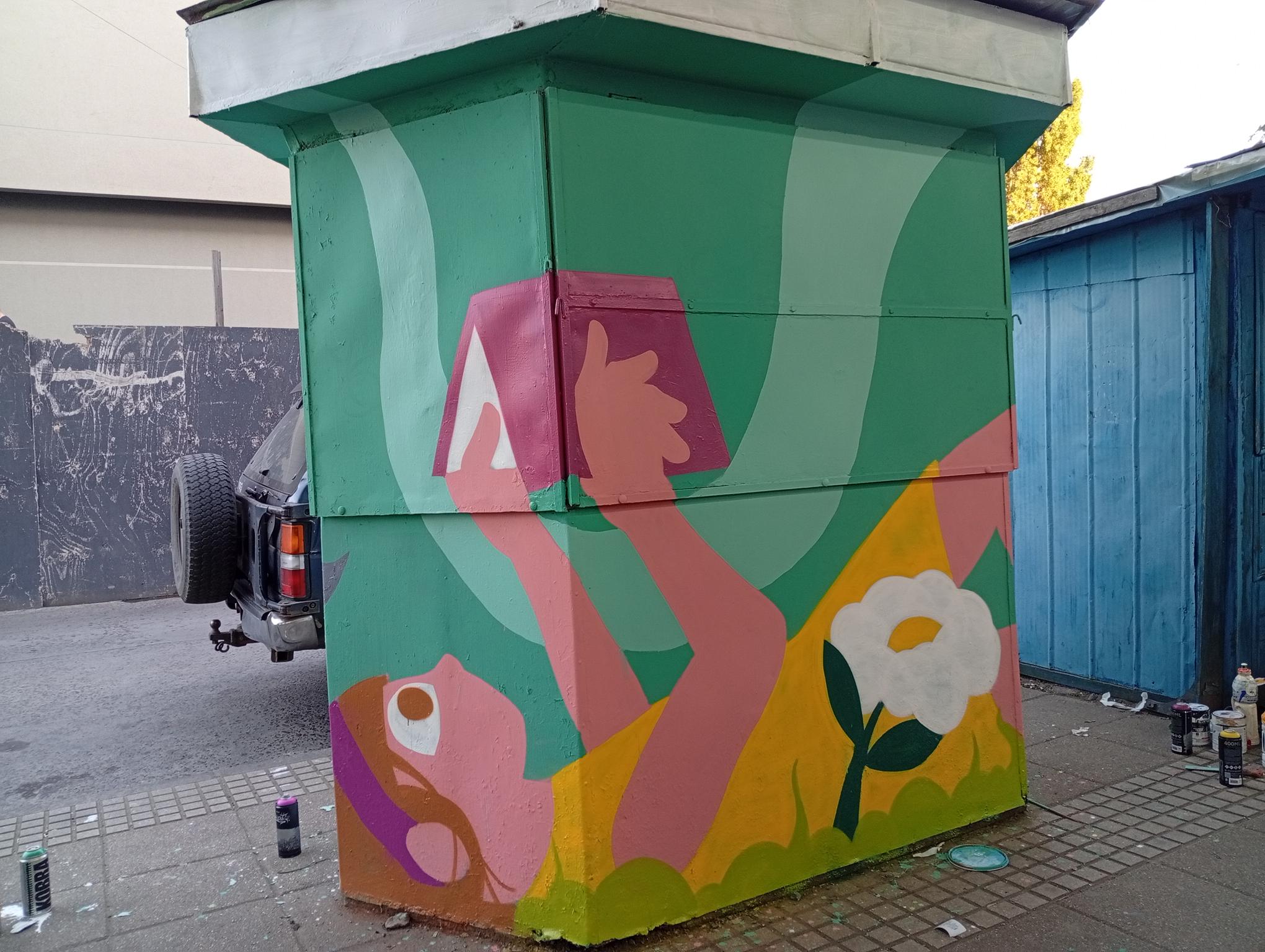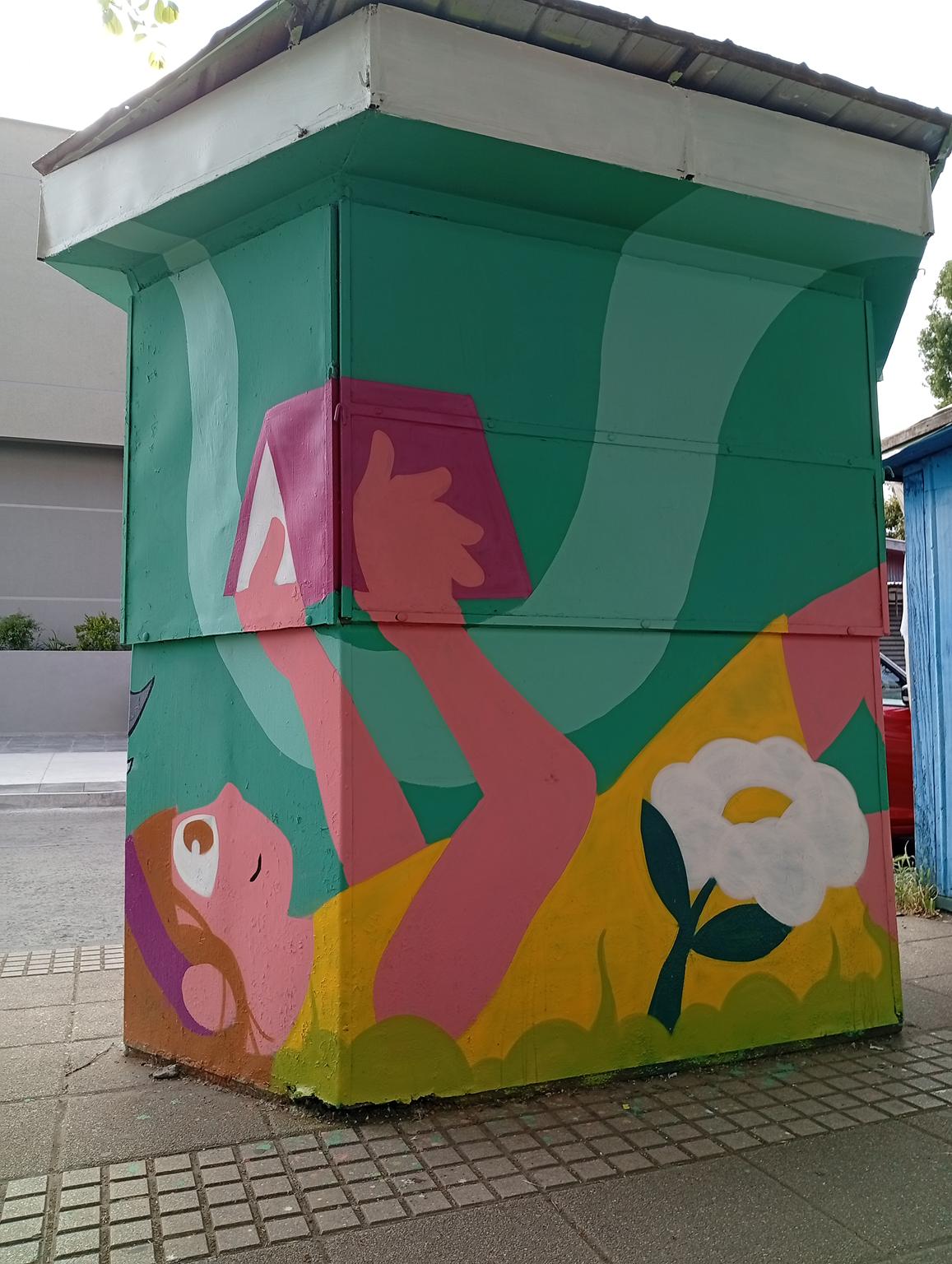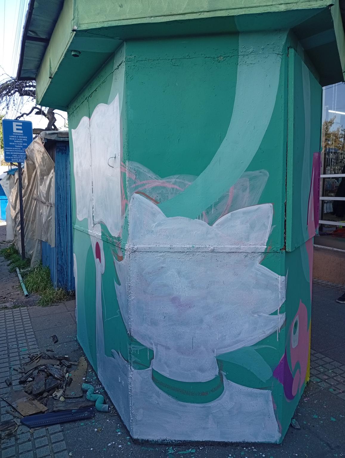 Outside the Chinese Mall there are several kiosks selling different products; for example, crafts, perfumes, books and a lot more. All the kiosks are painted blue on all four sides. Andrea San Martín, owner of one of these kiosks, sells books under the name Librería Esperanza. Andrea decided to reinitiate her business. Among the main ideas, was to decorate and highlight her kiosk. Since Andrea was already familiar with ZEN’s work, she contacted him to have his artwork featured on the kiosk, thus making it stand out.