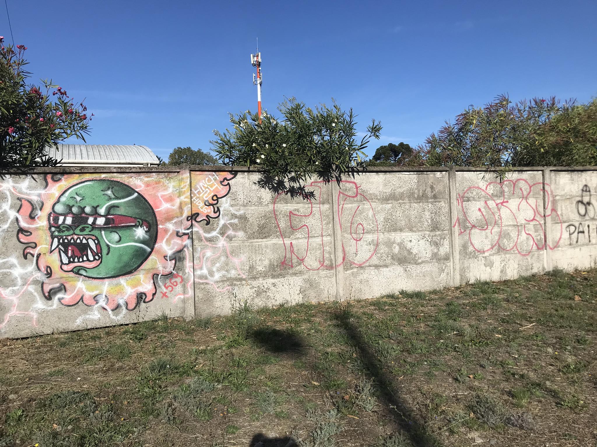 The train lines used to run through here when it reached Angol. None of that exists anymore; now there are bike paths and a pedestrian walkway. Some of the walls along this stretch, called La Paz Street, extend as far as Bernardo O’Higgins Avenue and are adorned with various graffiti.
