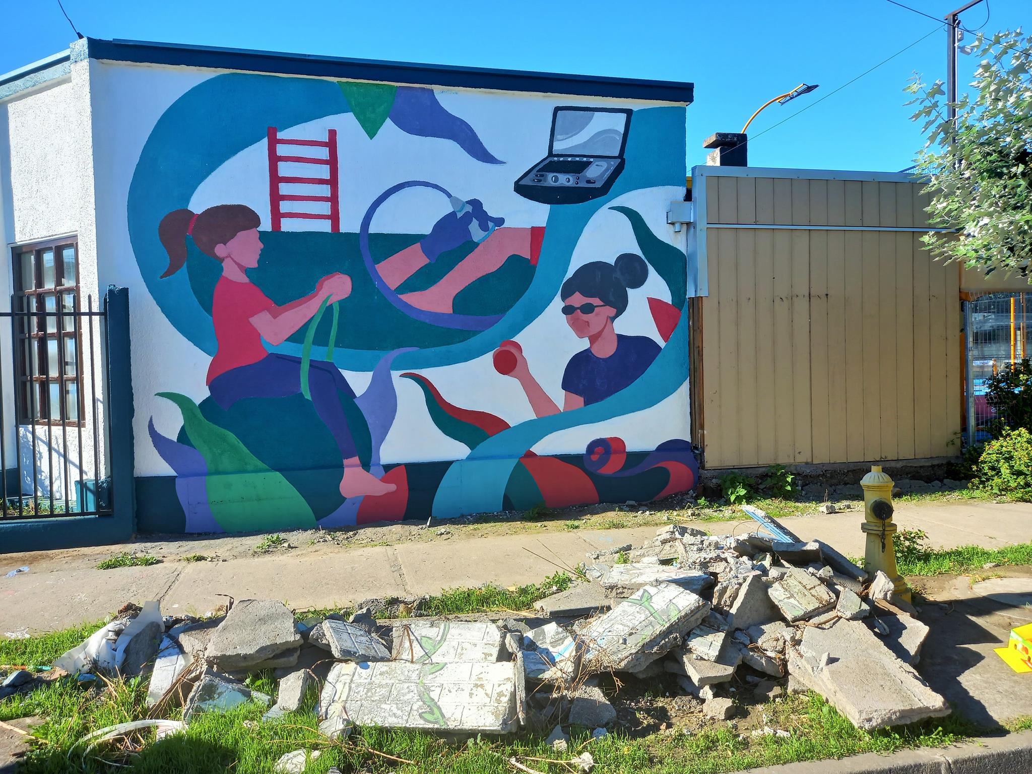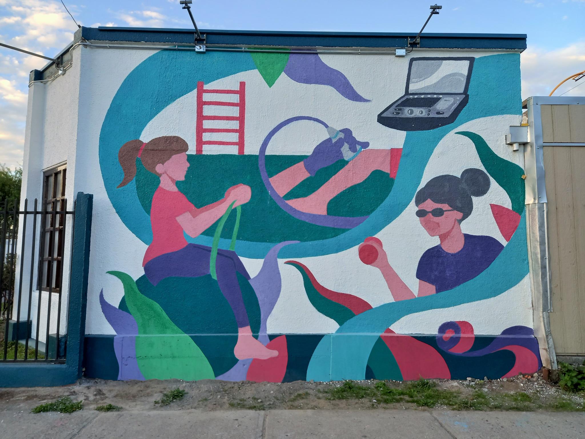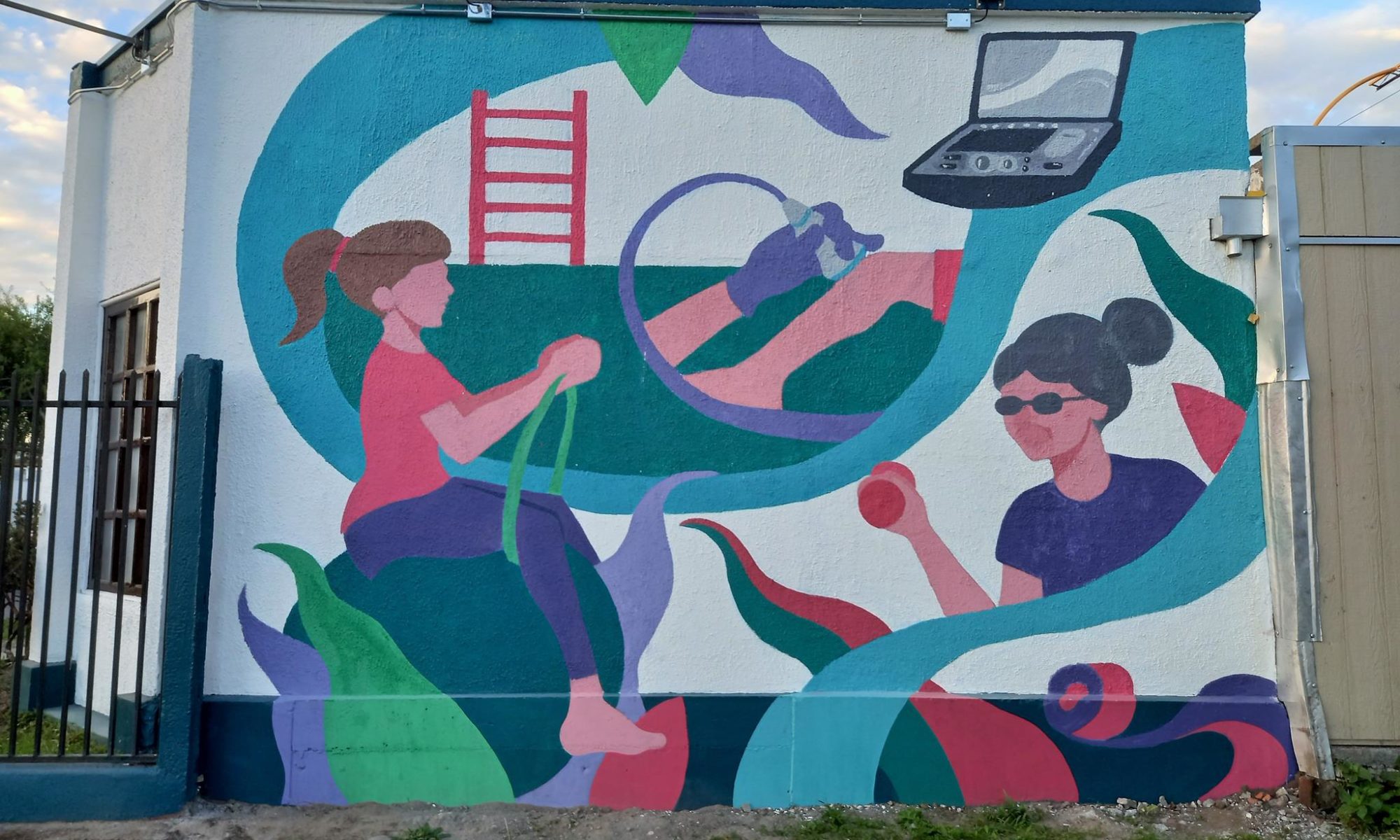 Among the transformations that the property underwent, the entire exterior wall was demolished. In some of the photos, you can see debris from the mural with drawings of Saavedra 503. Part of the original house was also removed to make more space for paddle tennis courts. The house was rebuilt, still it can be seen that the house has a window at the time of Saavedra 503. Now where the new ZEN mural is, that window no longer exists. ZEN’s great artwork represents the clinical center, so the artist drew the concept of physiotherapy, represented by several of the practices and treatments that the clinical center provides.