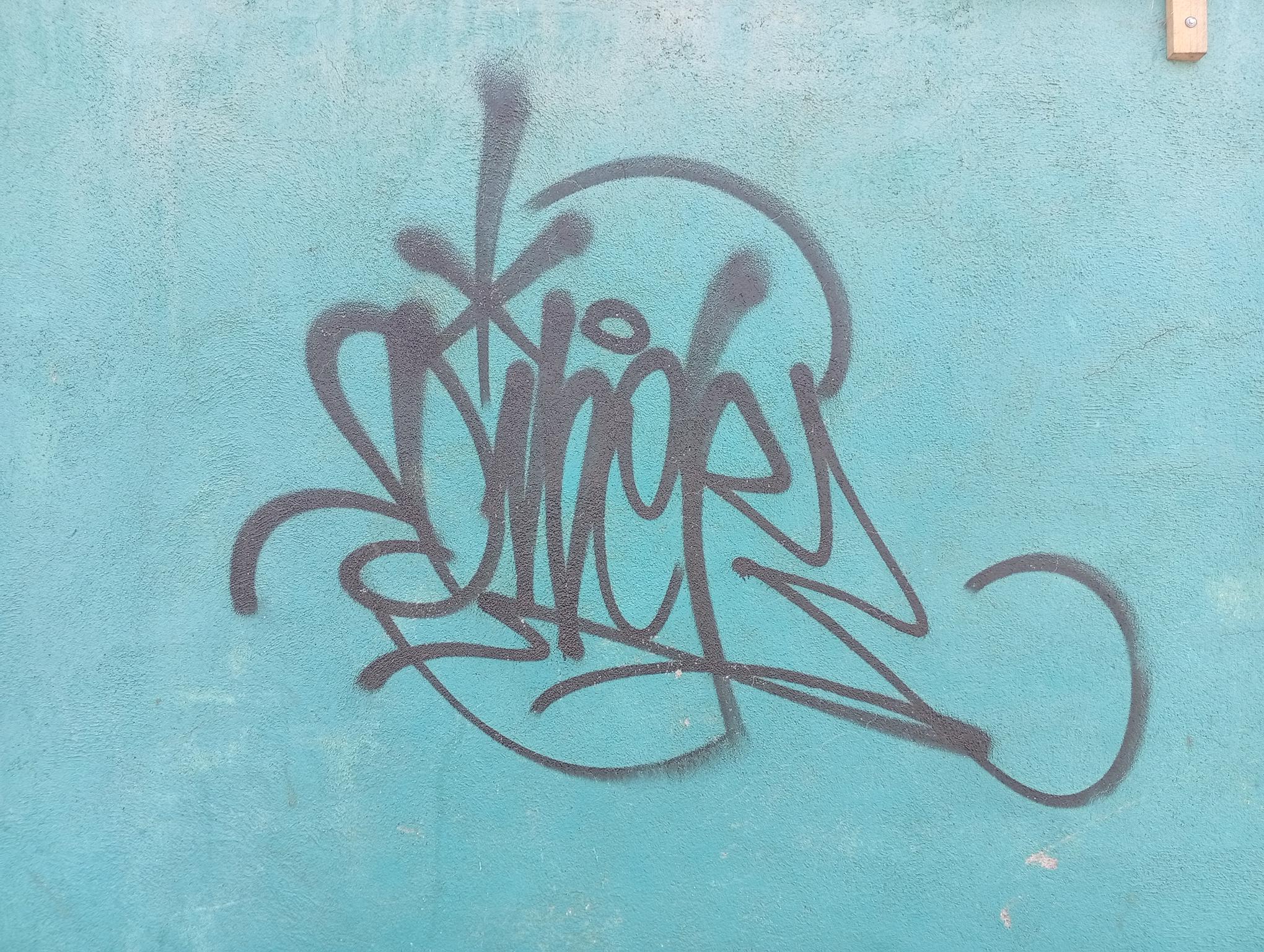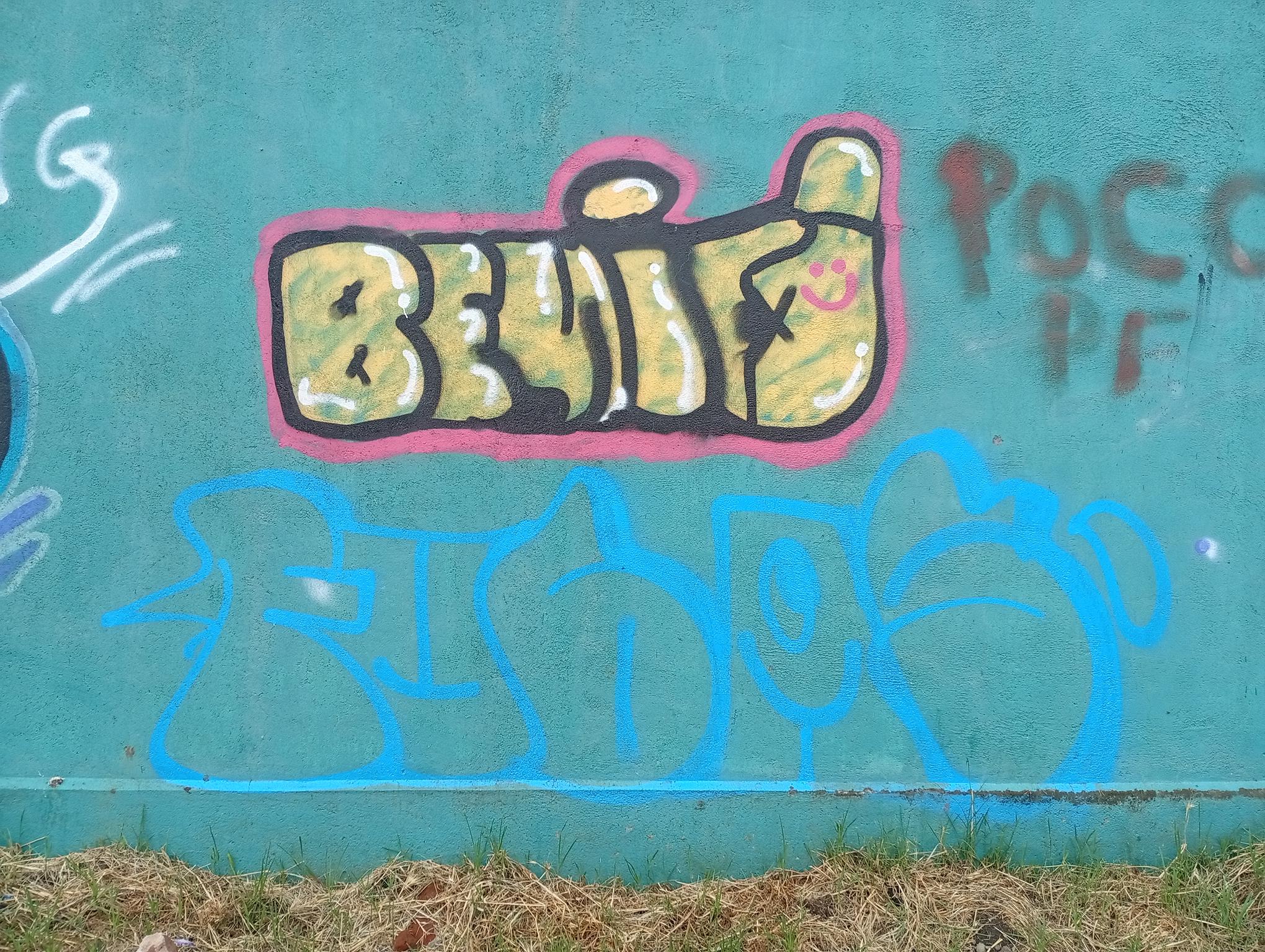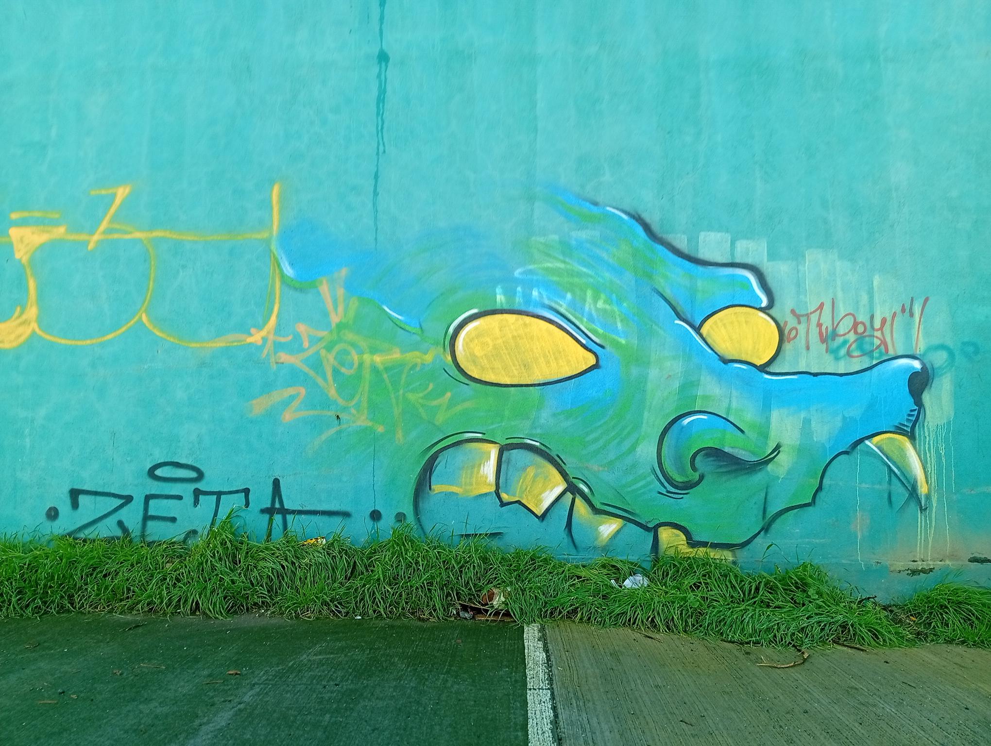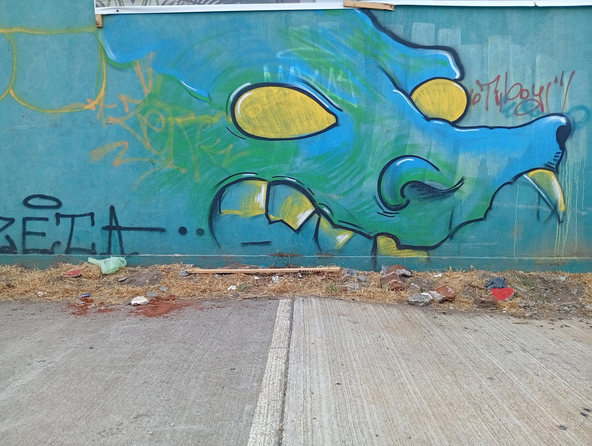 This large wall is located where the train tracks used to run, at the corner of Bernardo O’Higgins Avenue. Most of the streetart of this wall are flops that say things like SMOT, EL BABO, BENID, MAFLAY and FUGAS, among others. There are also several tags, including two by DIBERZO, which were probably done when he was painting across the existing train track at Train Line Nº4. Finally, there are also some graffiti pieces, such as a dog at the middle of the wall and a wolf at the end of the wall, that have all the characteristics of the wolf done by probably the same artist who created the graffiti located in Jose Bunster 615.