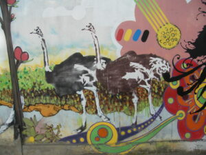Another group of stencils features a variety of themes, styles and ideas that defy easy categorization. There are stencils of flowers and butterflies, stencils throughout the stairs of Valparaiso. You can see stencils of ostriches, a couple kissing each other and much more. This immense variety reflects the styles and trends found on the City of Valparaiso. Below you can find the several subtopics, just click on the photo or the link and you will get to the stencil artworks of that category.