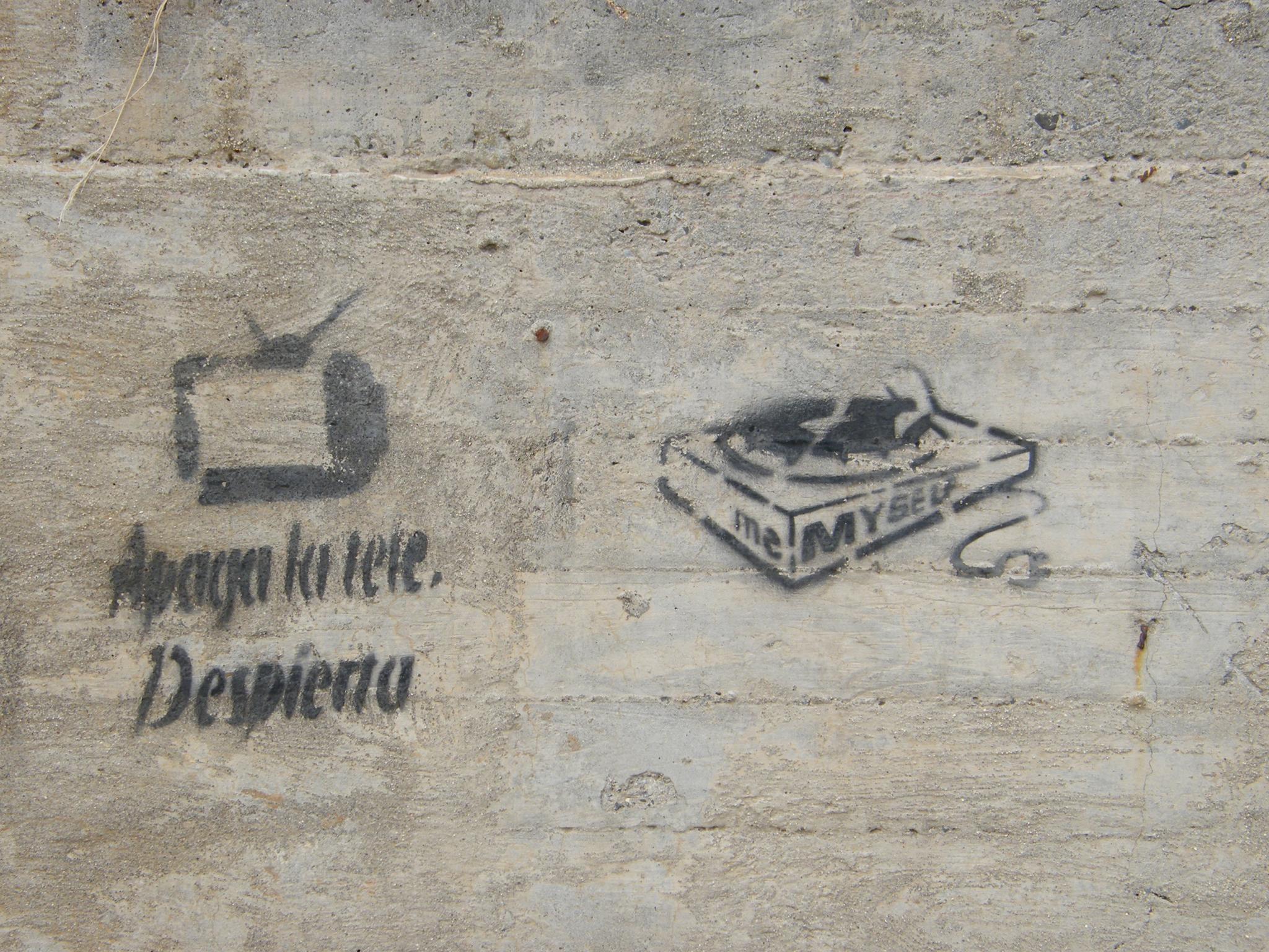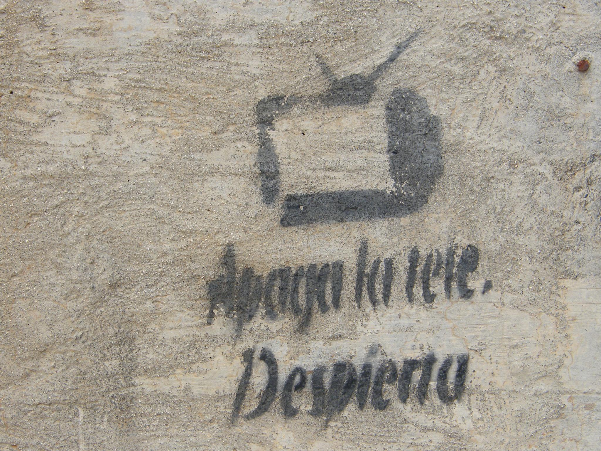 „Apaga la tele. Despierta“  –  „Turn off the TV. Wake up“