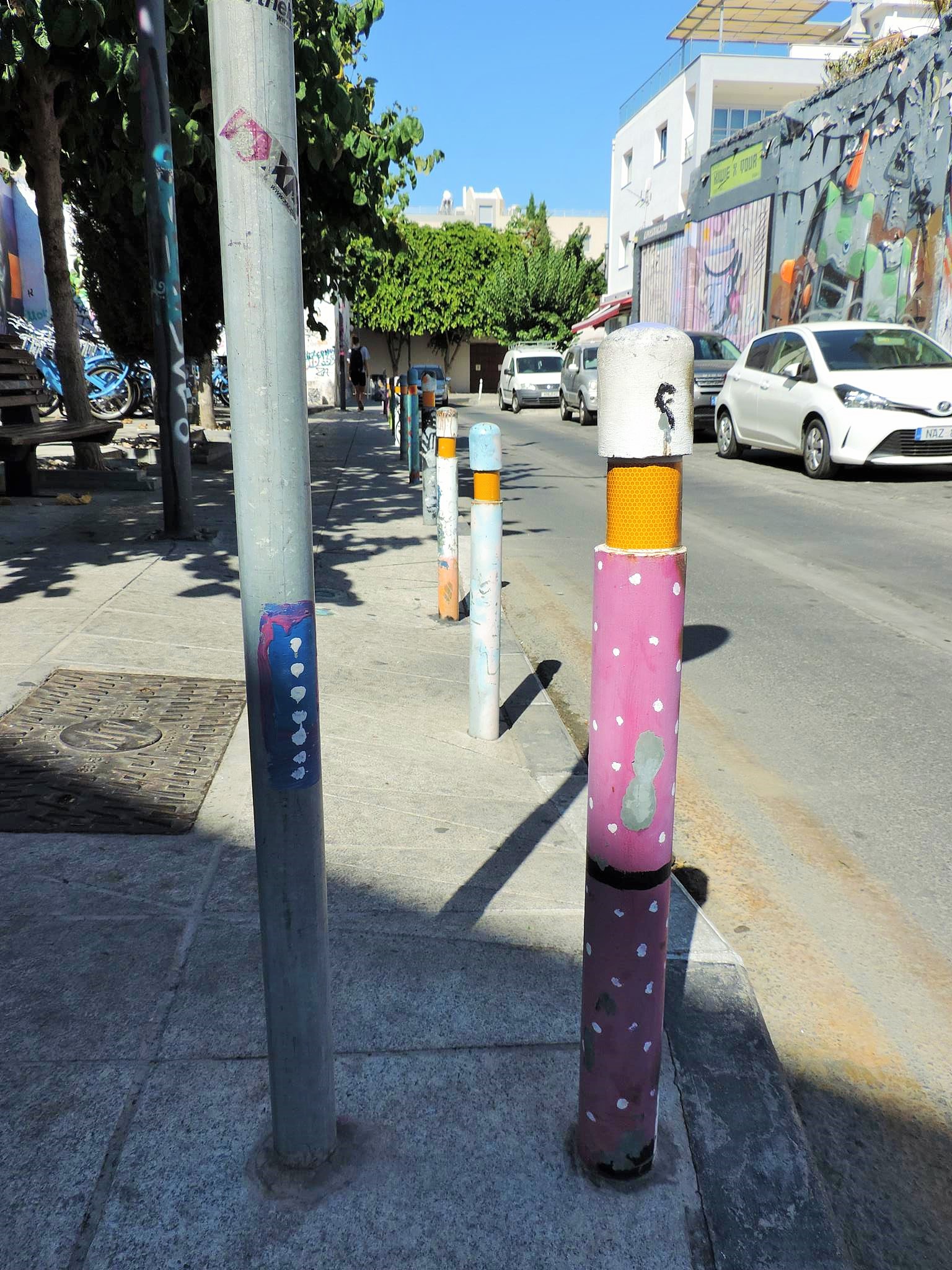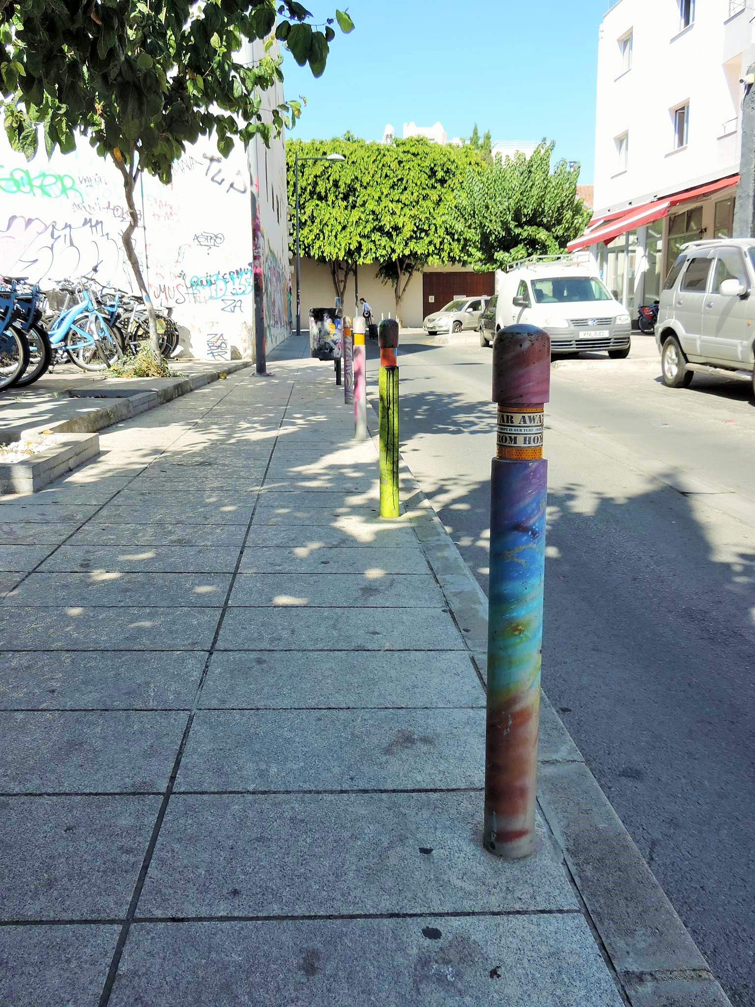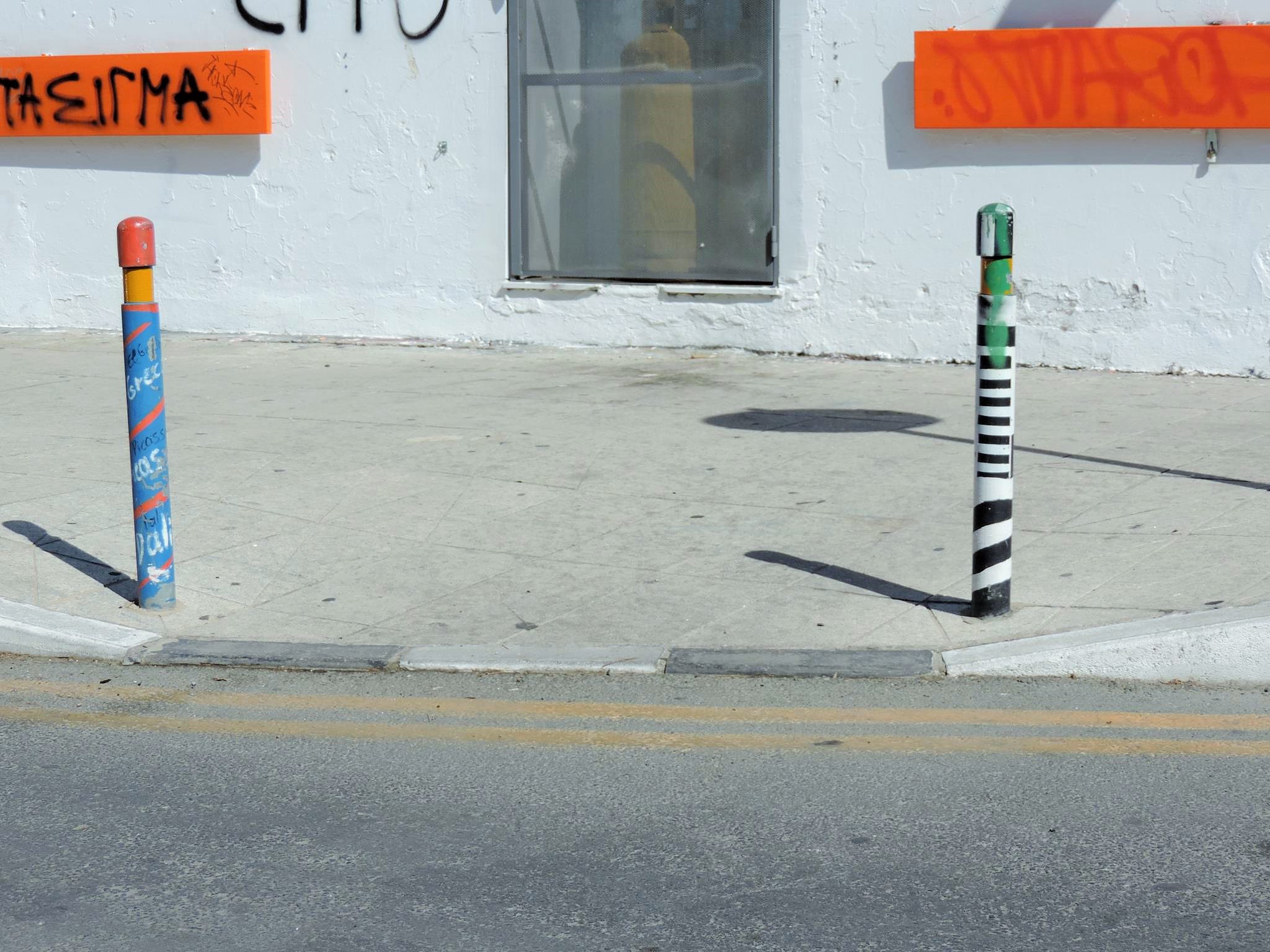 Along Athinon Street, starting from the intersection with Ellados Street, there is a great urban art gallery with various large-scale and high-quality murals. Starting with the first works, more and more pieces by local and international artists were added over time, turning the rather small street in the Katholiki neighborhood into a fantastic open air museum. Even the street bollards were given their own colorful creative design.