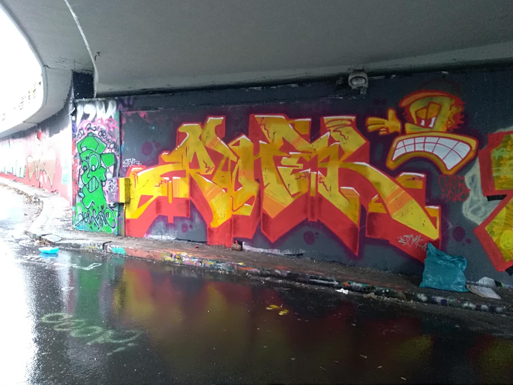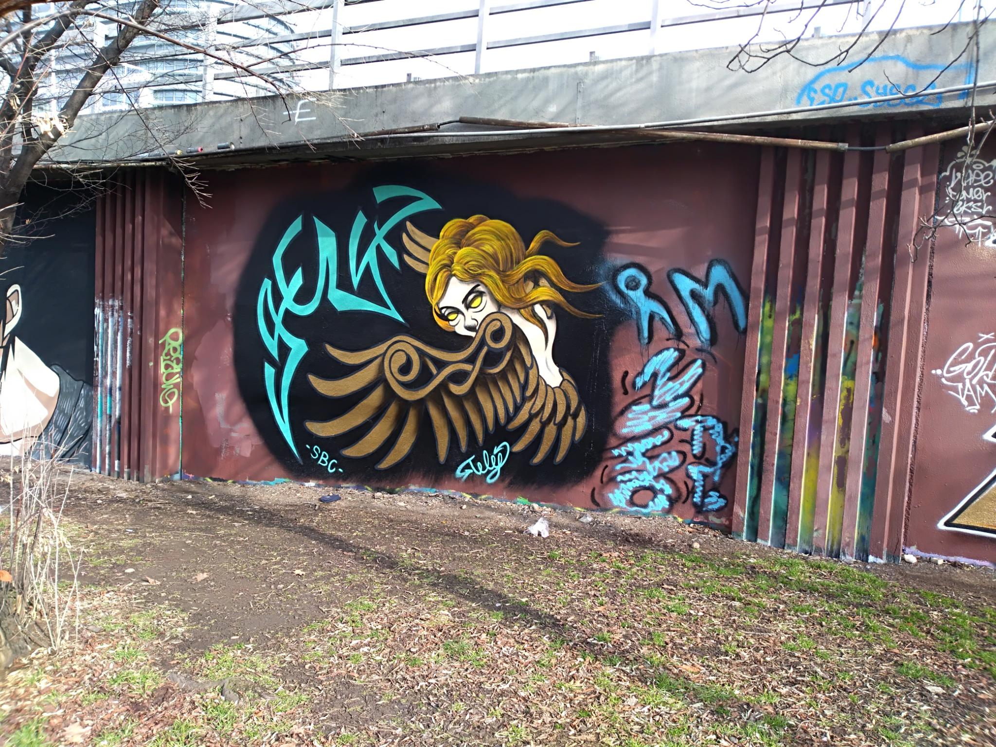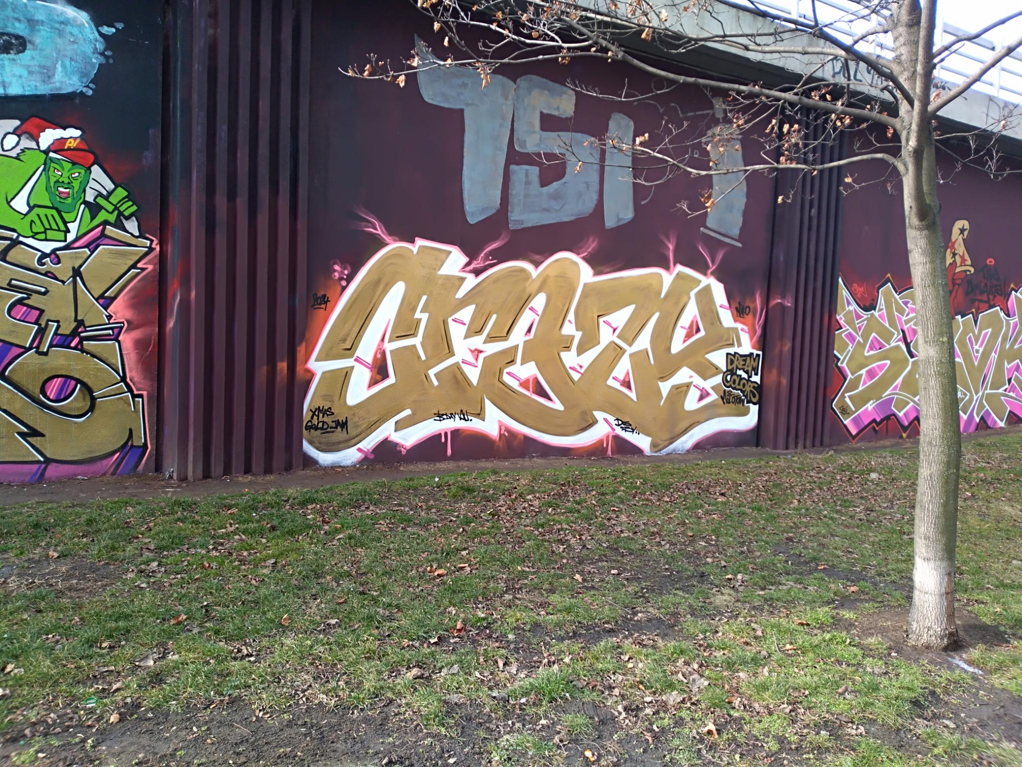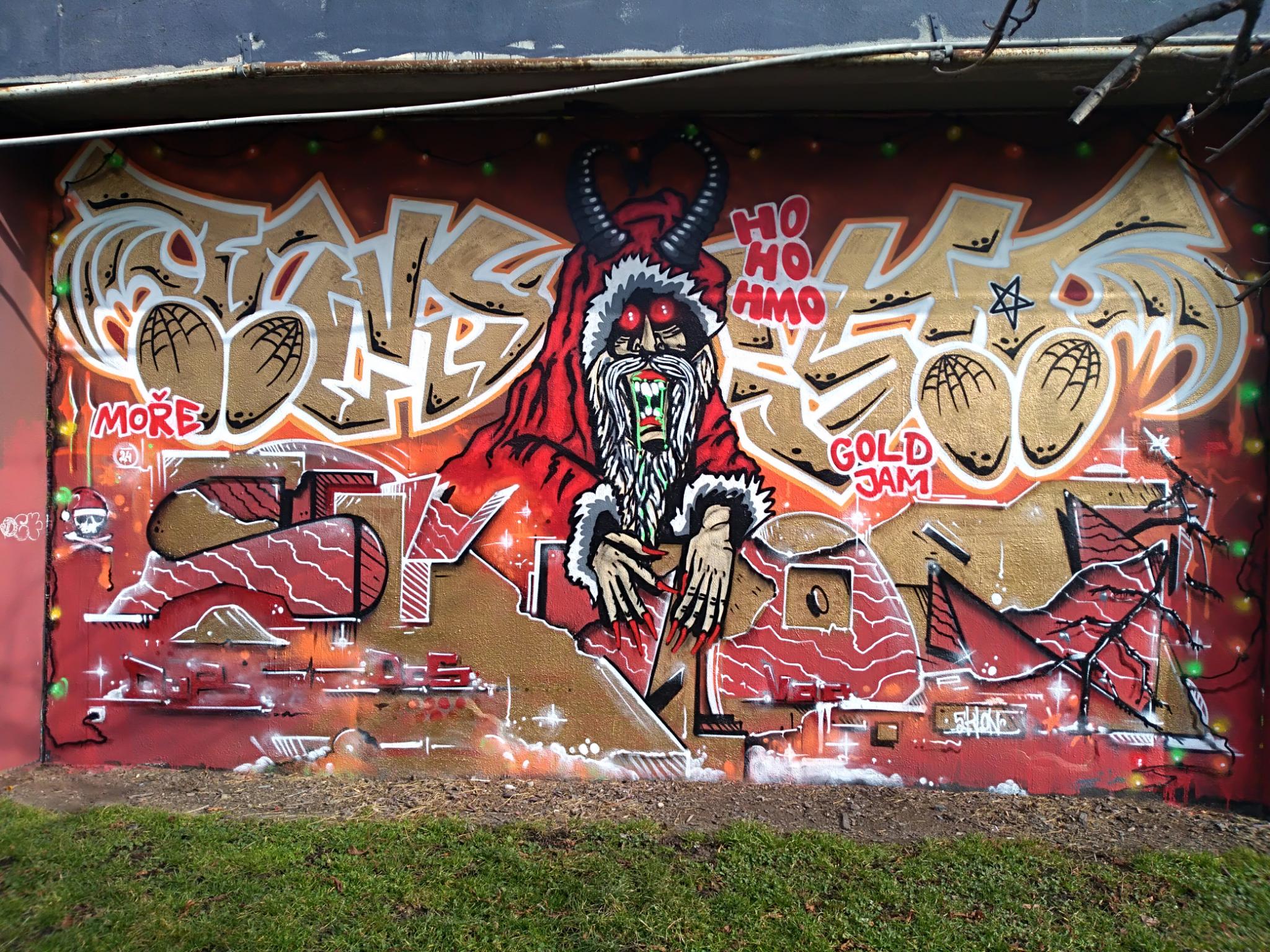 The Těšnov Hall of Fame is located in the Florenc district along the park of the same name and on the bridge to Wilsonova Street. It is a spacious area with several walls and bridge pillars, doing art here is allowed and legal. You can always find people painting, there are spray sessions and graffiti jams. Every year the great UNYFEST takes place around the area with numerous urban artists and a fantastic line-up of various musicians from the hip hop scene. Some of the pieces are also included in the following photo collection, but also many more graffiti besides the event, as the hall is often frequented. Also the fabulous DOS CREW uses this spray space for their anniversaries. Check out as well the pages for the V Cípu Spray Walls and for Streetart and Murals throughout the city.
