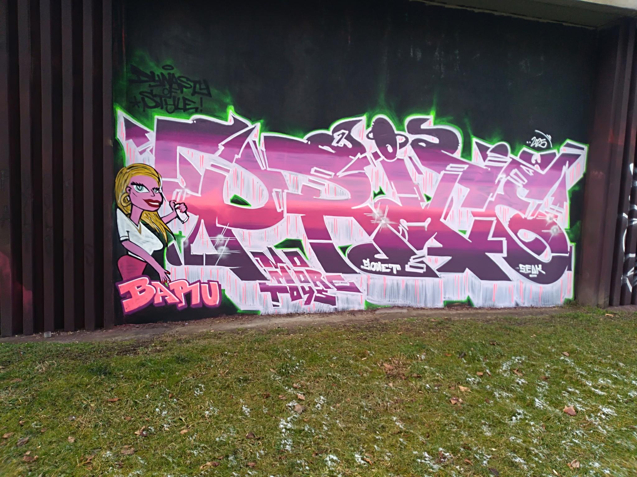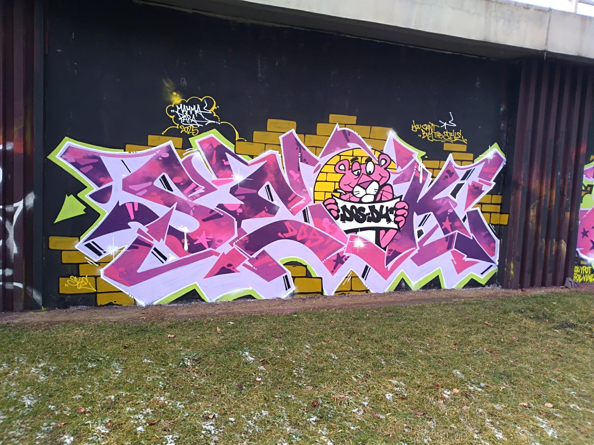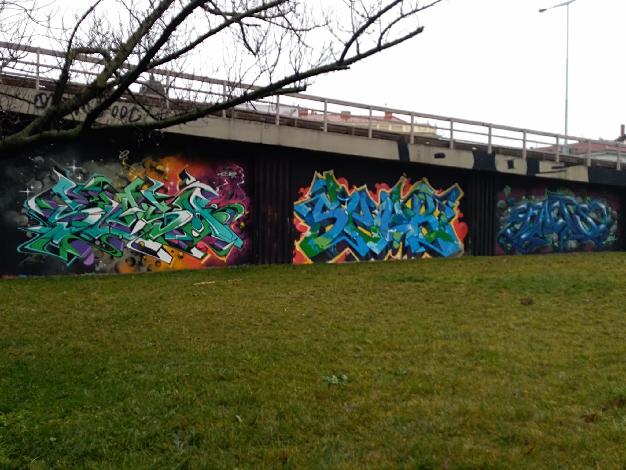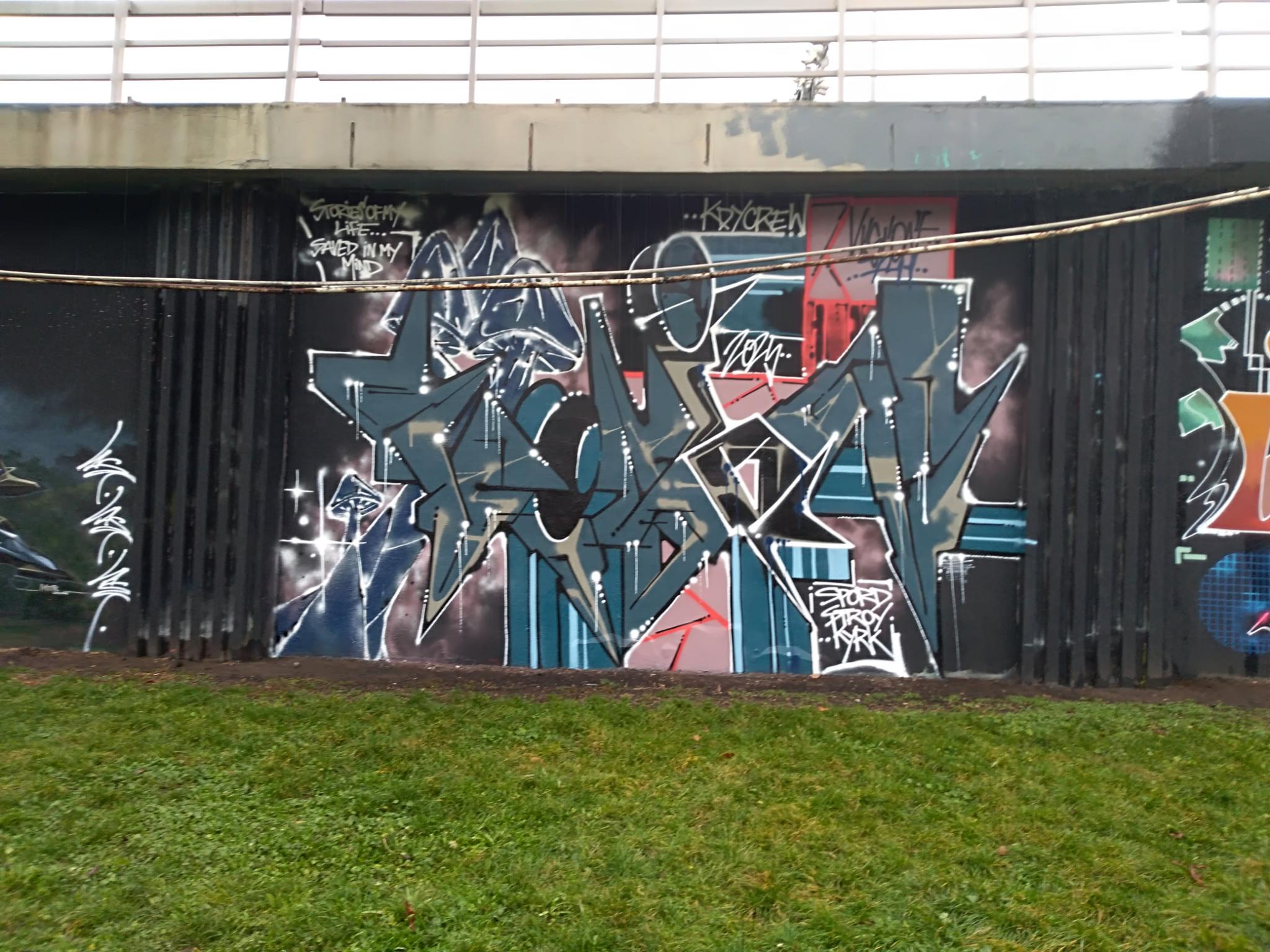 The Těšnov Hall of Fame is located in the Florenc district along the park of the same name and on the bridge to Wilsonova Street. It is a spacious area with several walls and bridge pillars, doing art here is allowed and legal. You can always find people painting, there are spray sessions and graffiti jams. Every year the great UNYFEST takes place around the area with numerous urban artists and a fantastic line-up of various musicians from the hip hop scene. Some of the pieces are also included in the following photo collection, but also many more graffiti besides the event, as the hall is often frequented. Also the fabulous DOS CREW uses this spray space for their anniversaries. Check out as well the pages for the V Cípu Spray Walls and for Streetart and Murals throughout the city.