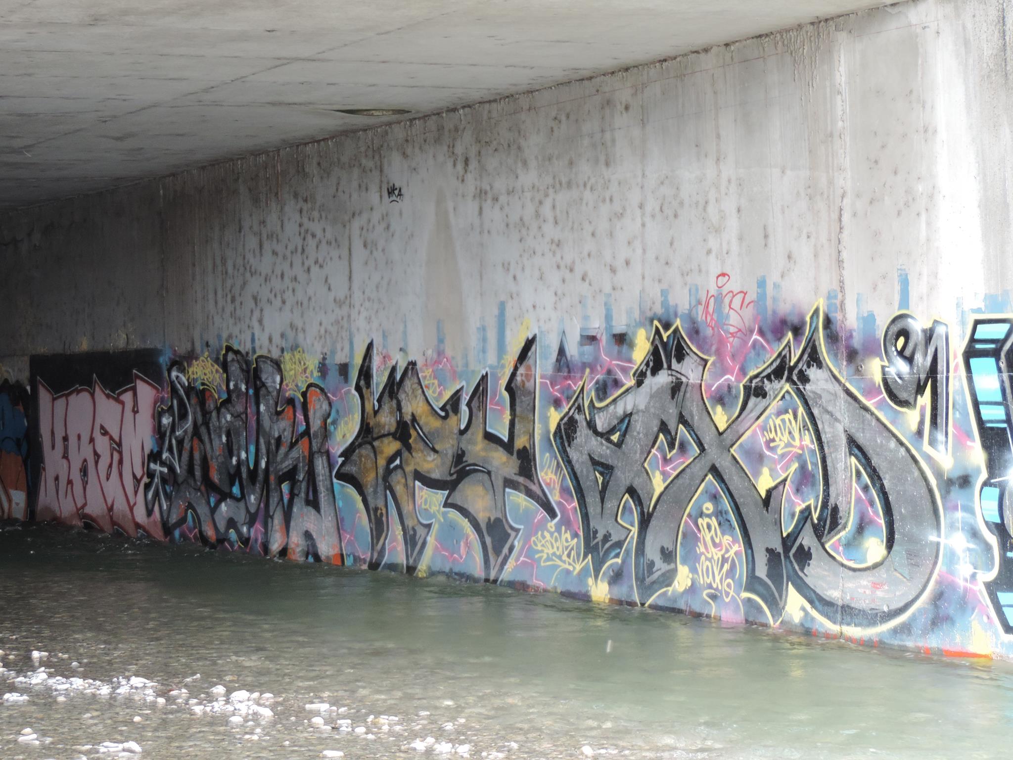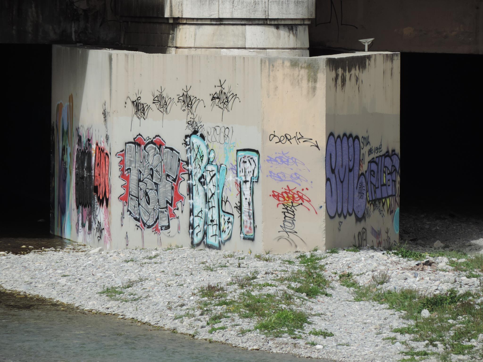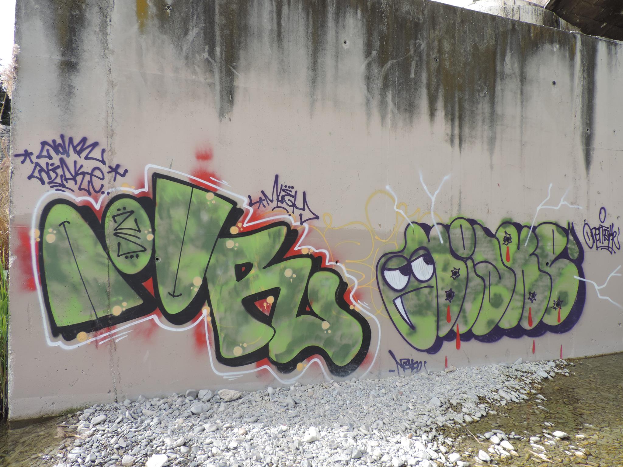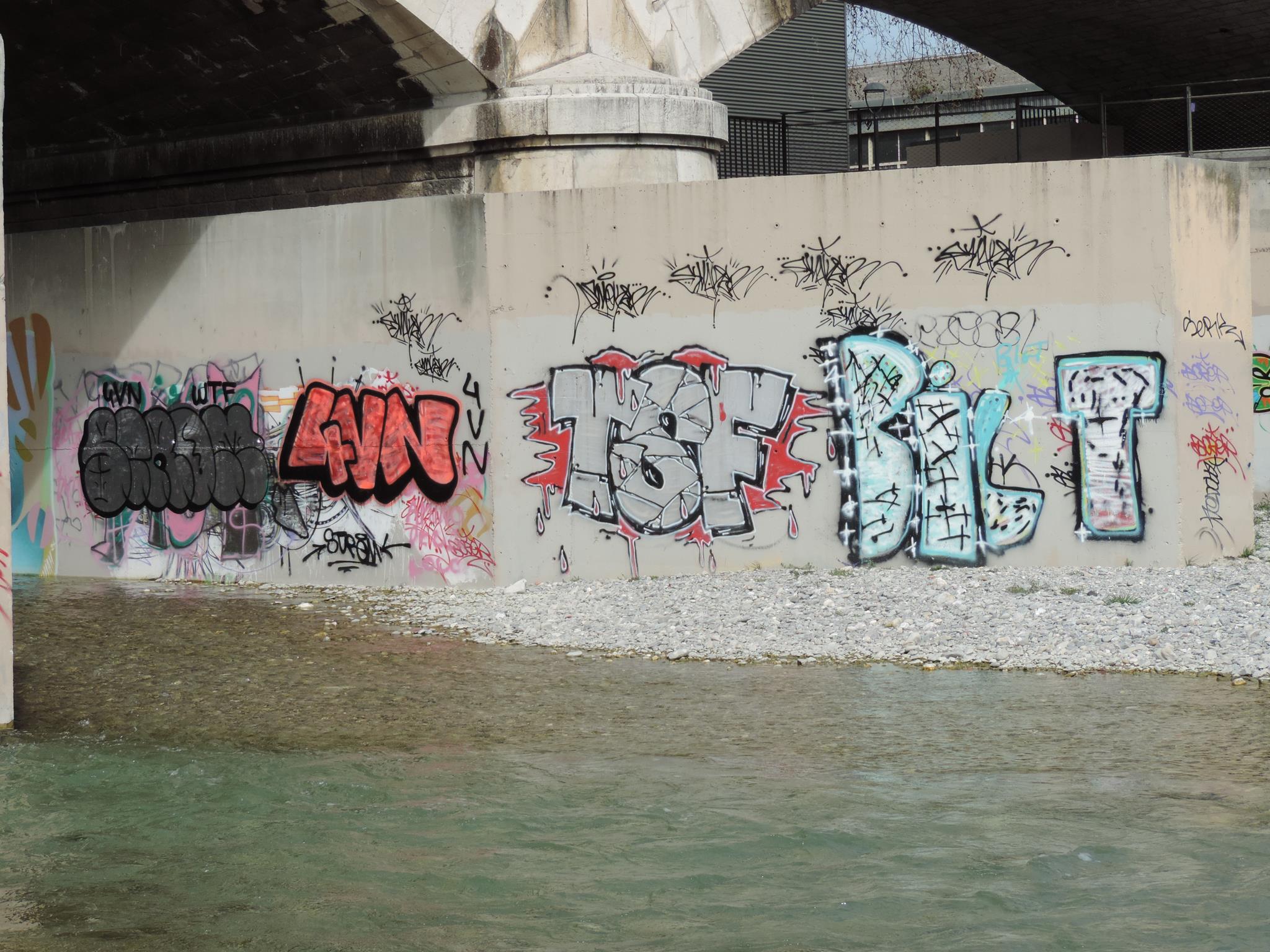 Below the south side bridge over the river Paillon at Place des Abattoirs is a graffiti hot spot, which can be painted at low tide or viewed from the outside at high tide. To the north, the canalized river runs underground through the city and the secondary school Lycée Guillaume Apollinaire is located above it. The graffiti pieces extend through the entire tunnel to the exit on the other side, you can see it if you walk around. The works on the south side of the tunnel exit are also visible from walkways along the canal, and there are openings in between through which you can also get a little closer. If the river is carrying water, then you can only explore more graffiti in the tunnel with rubber boots, but there is probably a lot more underneath. If you have any more photos of this place, send them to info@vagabundler.com and we will add them to this page.