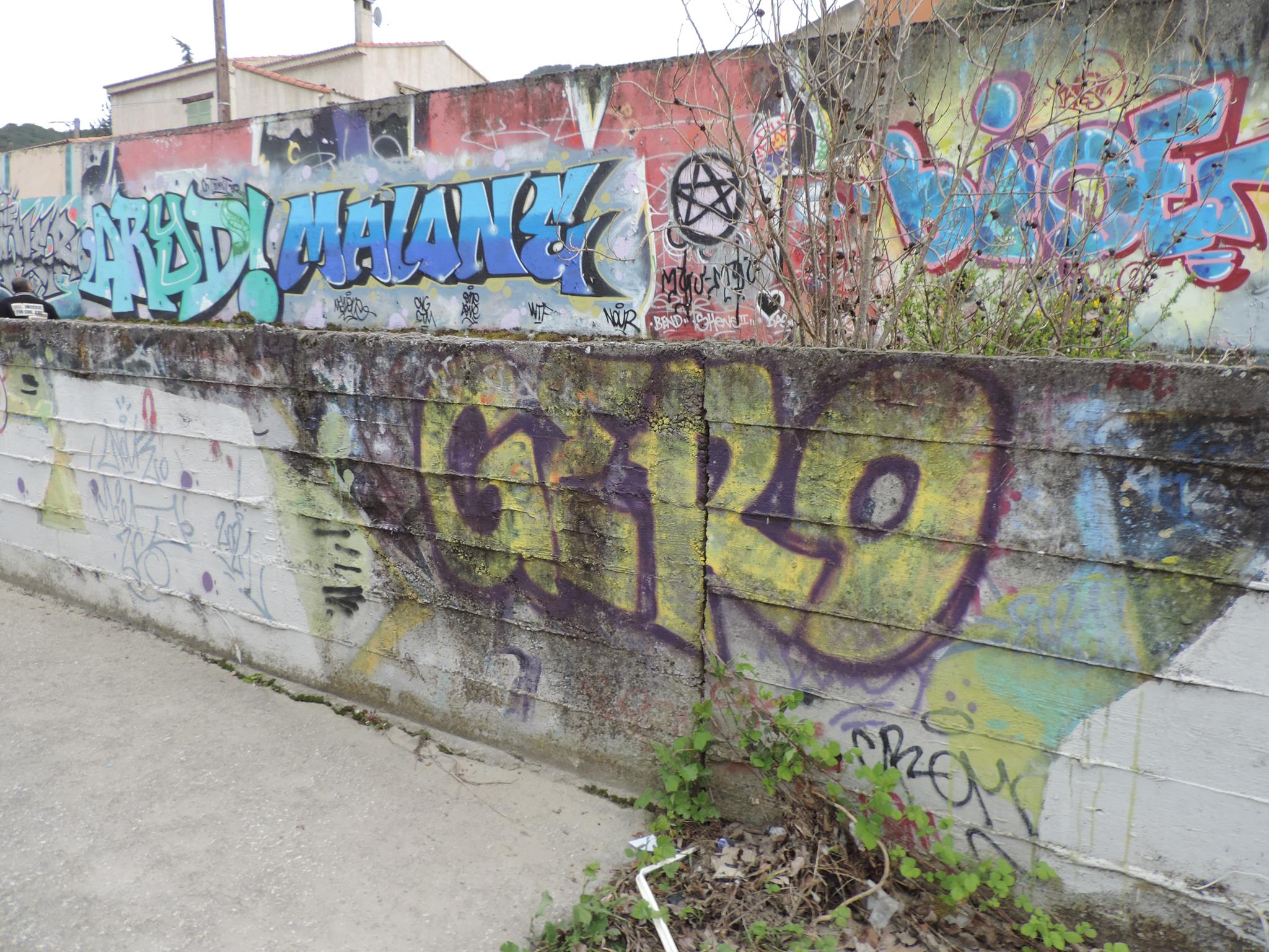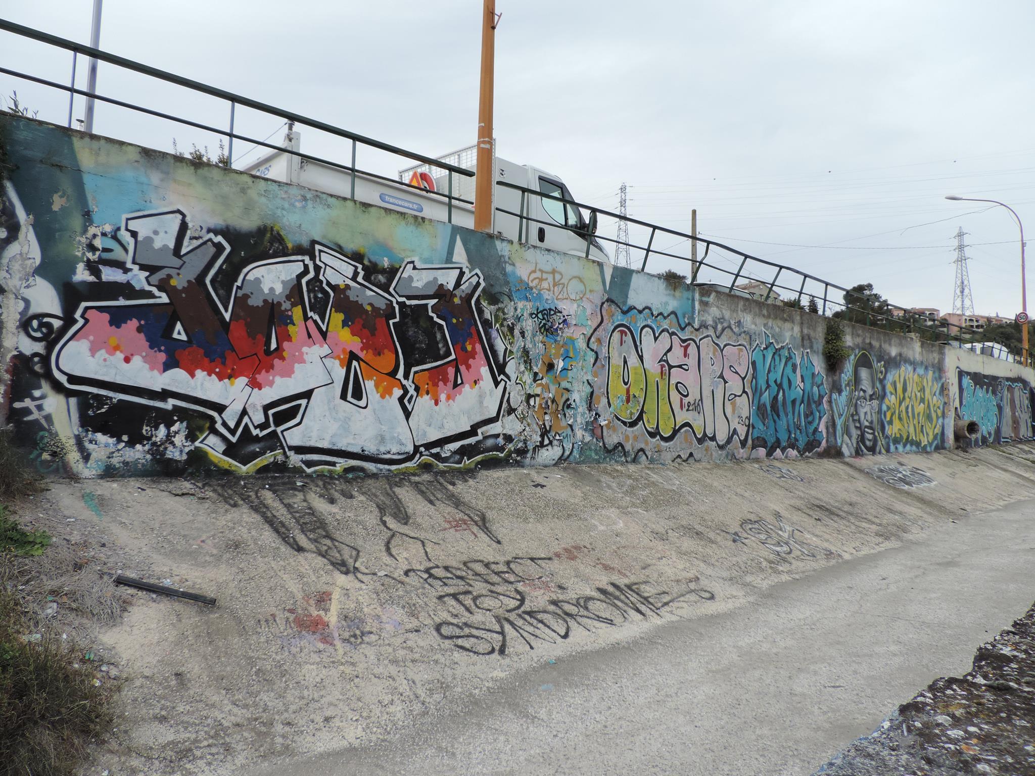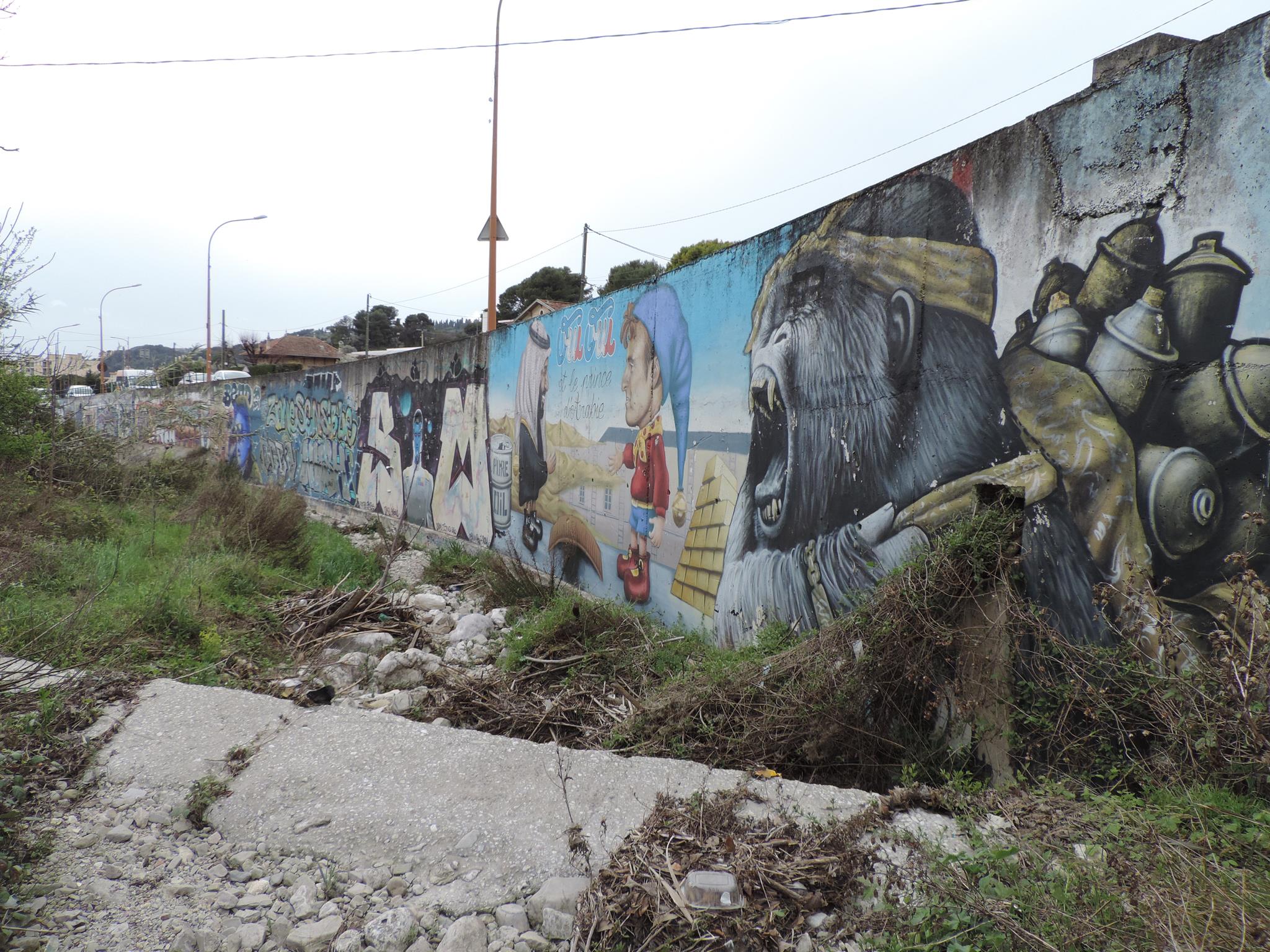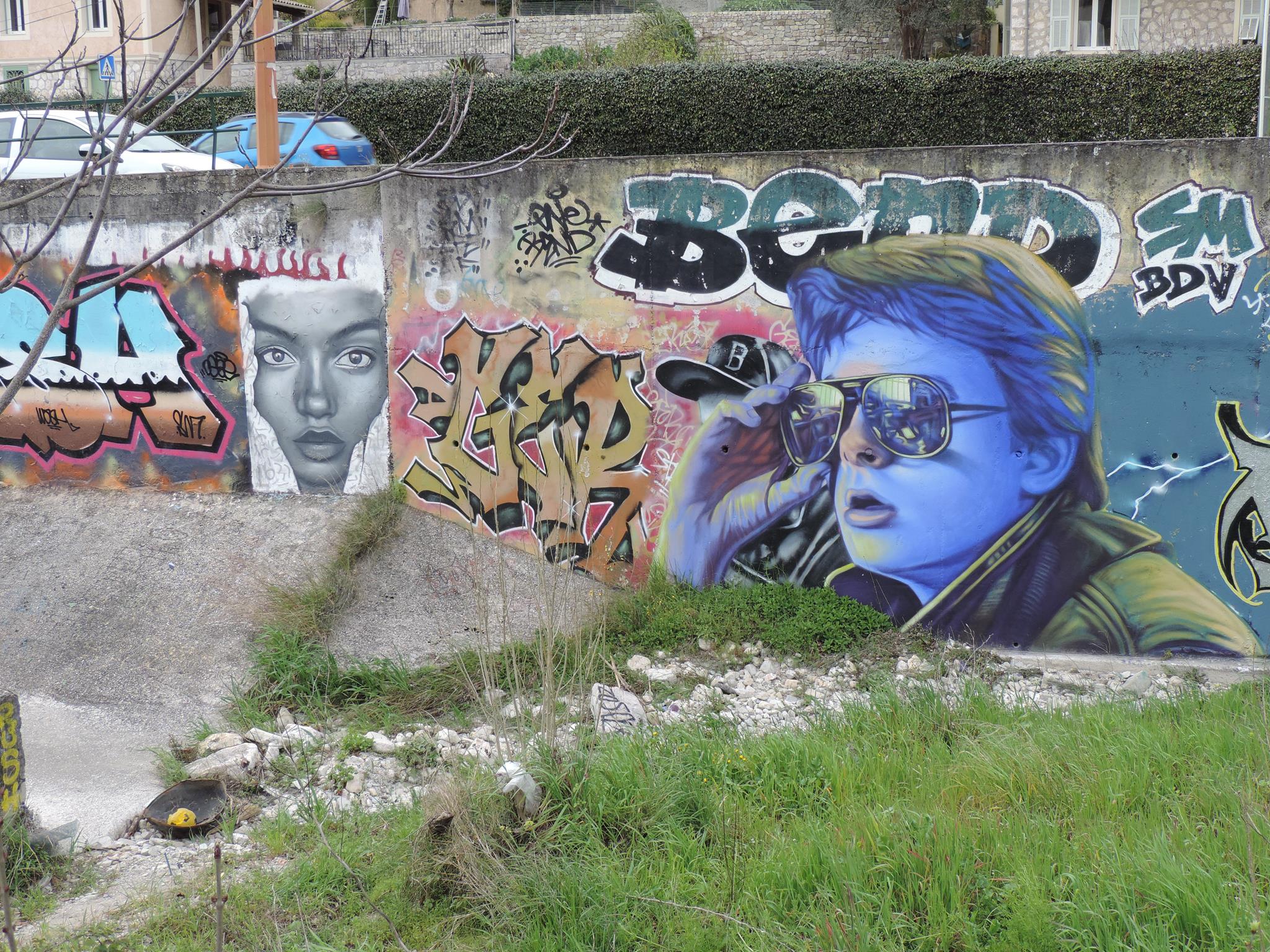 Running parallel between Boulevard François Suárez and Impasse Fuon Santa is the canal of the Vallon de Laghet river, which in some months carries very little or no water. The concrete channeled riverbed provides the perfect surface for graffiti and urban art and the Fuon Santa Hall of Fame has been created here over time with several really good pieces. It stretches from the bridge on Boulevard Fuon Santa in the west on both canal wall sides to the bridge at the Negron bus stop on the west part. A smaller, continuous wall in the middle of the canal, about 1 meter high, has also been sprayed. Further along the river it runs underground, and further upstream there are no concrete walls. This section is where the Vallon de Laghet goes below the town of La Trinité. It is accessible from the outside and shows a fantastic spray paradise! We have a collection of the works here; if you have any photos of this spot, send them to info@vagabundler.com and we will add them to this page.