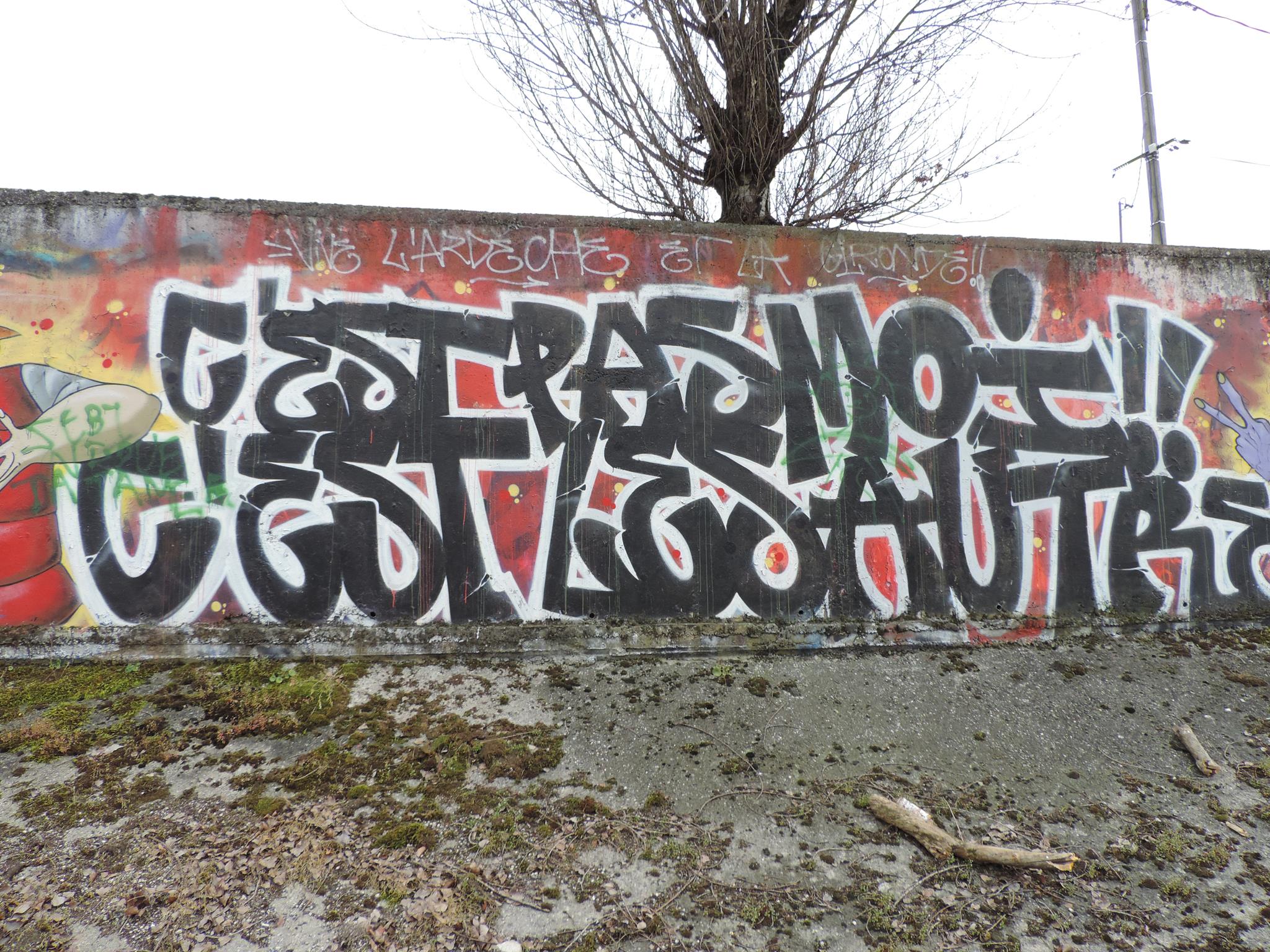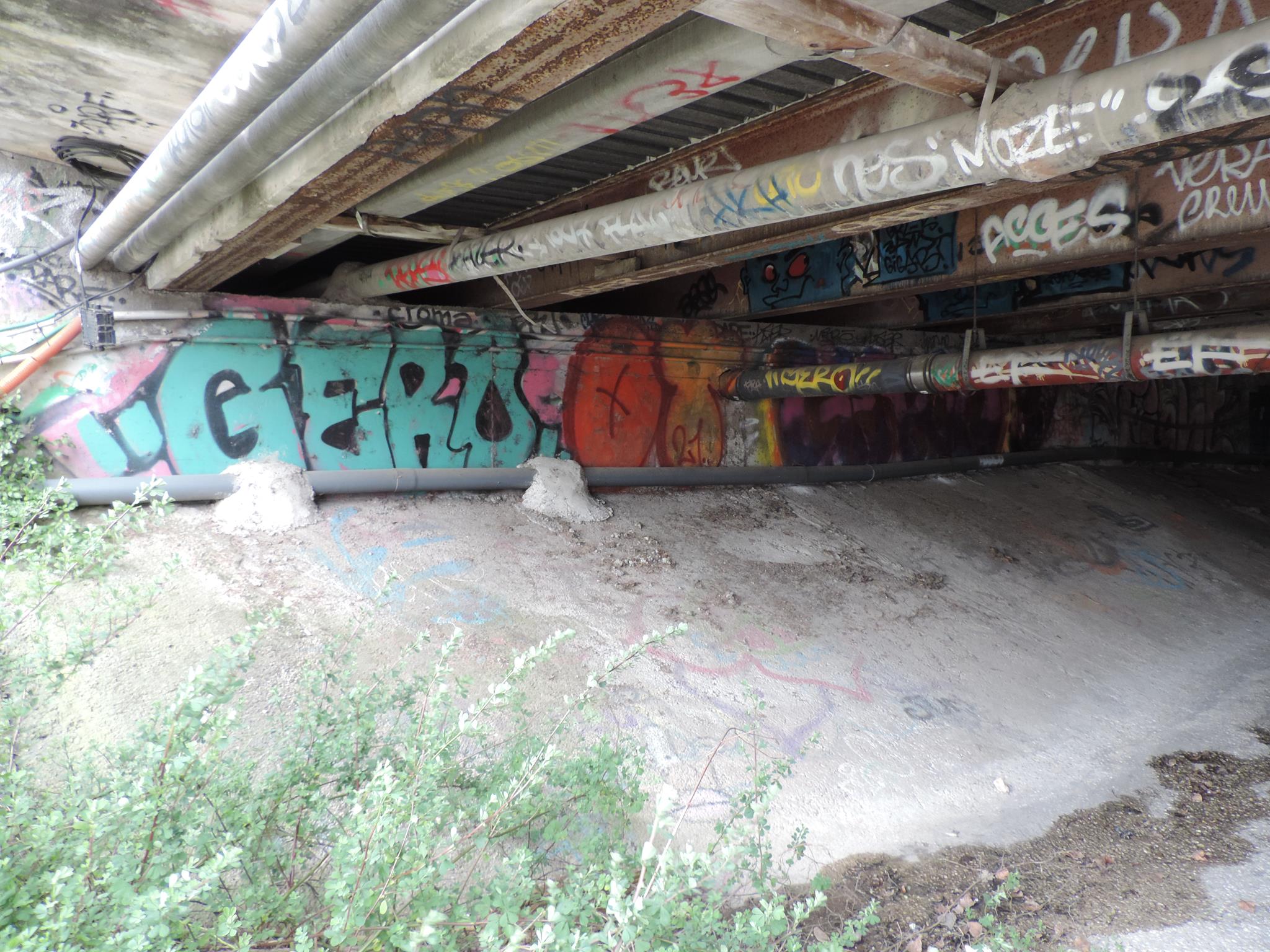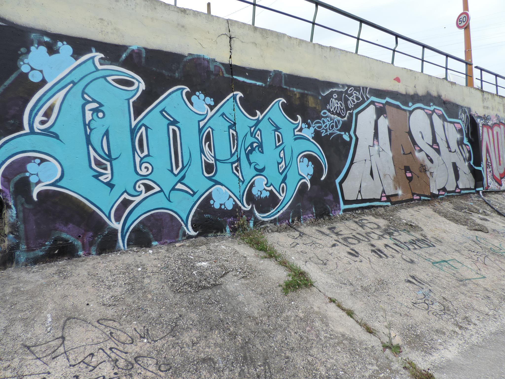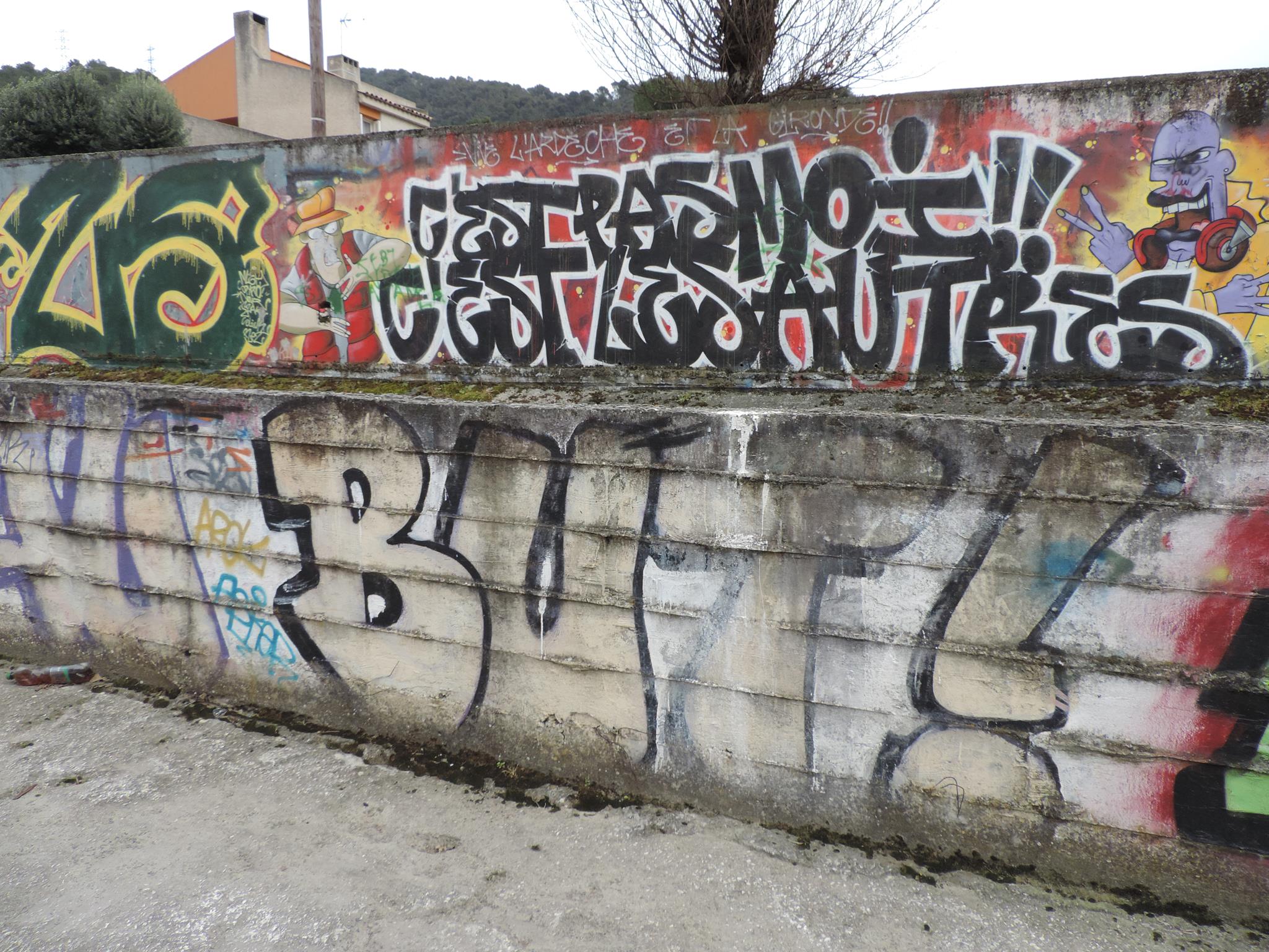 Running parallel between Boulevard François Suárez and Impasse Fuon Santa is the canal of the Vallon de Laghet river, which in some months carries very little or no water. The concrete channeled riverbed provides the perfect surface for graffiti and urban art and the Fuon Santa Hall of Fame has been created here over time with several really good pieces. It stretches from the bridge on Boulevard Fuon Santa in the west on both canal wall sides to the bridge at the Negron bus stop on the west part. A smaller, continuous wall in the middle of the canal, about 1 meter high, has also been sprayed. Further along the river it runs underground, and further upstream there are no concrete walls. This section is where the Vallon de Laghet goes below the town of La Trinité. It is accessible from the outside and shows a fantastic spray paradise! We have a collection of the works here; if you have any photos of this spot, send them to info@vagabundler.com and we will add them to this page.