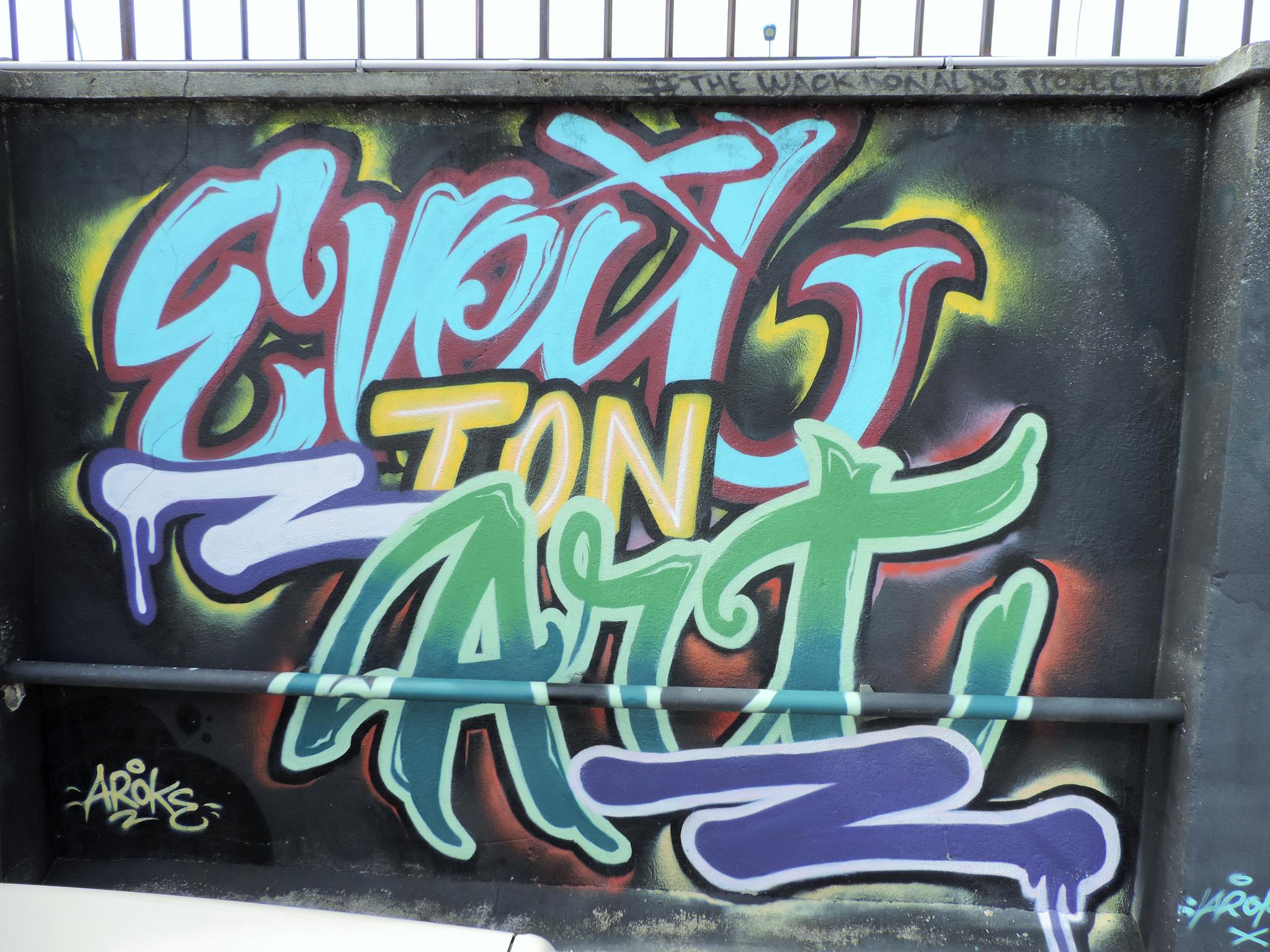 The graffiti above and on the left are from TALIS and the skull in the middle was made by ARTMOR1