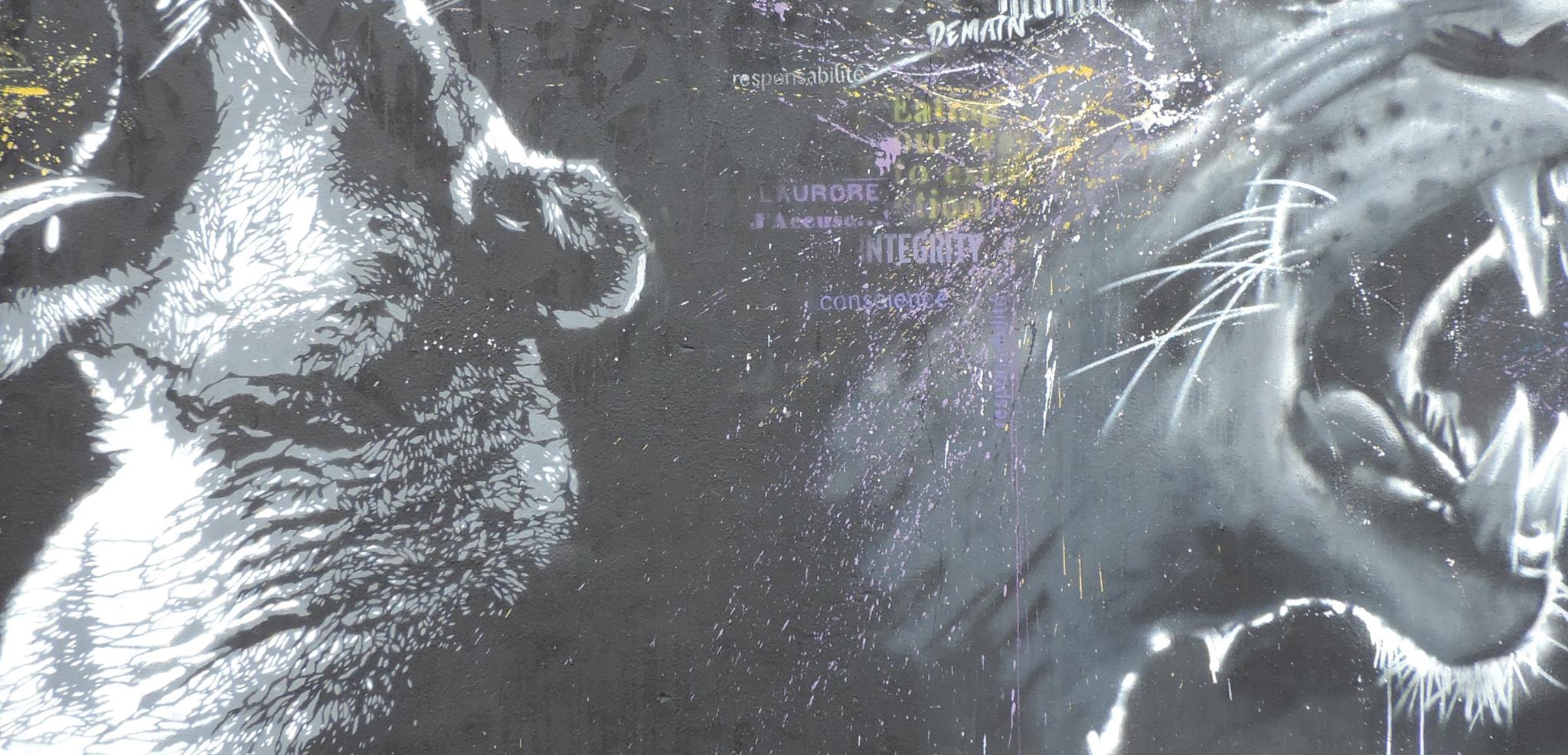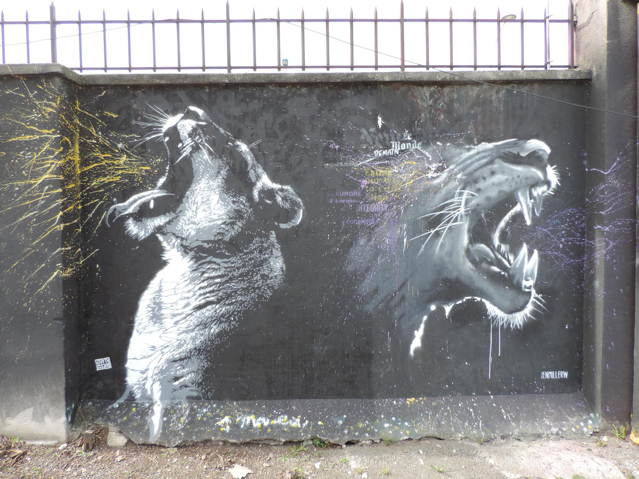 This great artwork of two screaming predotary cats was made in a collaboration together with ARTMOR1. He did the lion on the left and JENNIFER MILLER made the lion on the right.