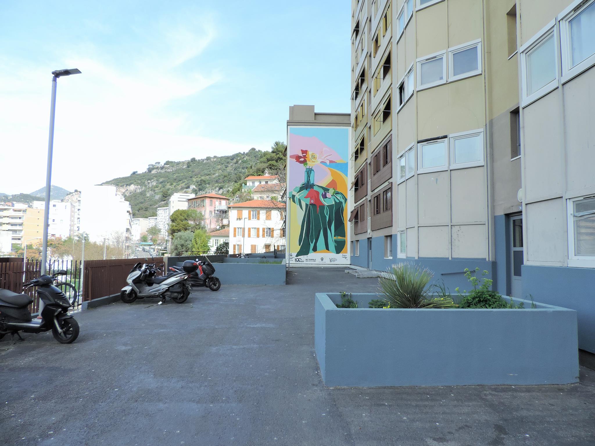 As part of the Côte d’Azur Habitat Centennial in 2024, a series of six monumental murals honoring the iconic revolution figure of Marianne was organized by the WHOLE STREET association. Here we have the mural by BRIAN CADDY, check out as well the other murals via the Mariannes main page.