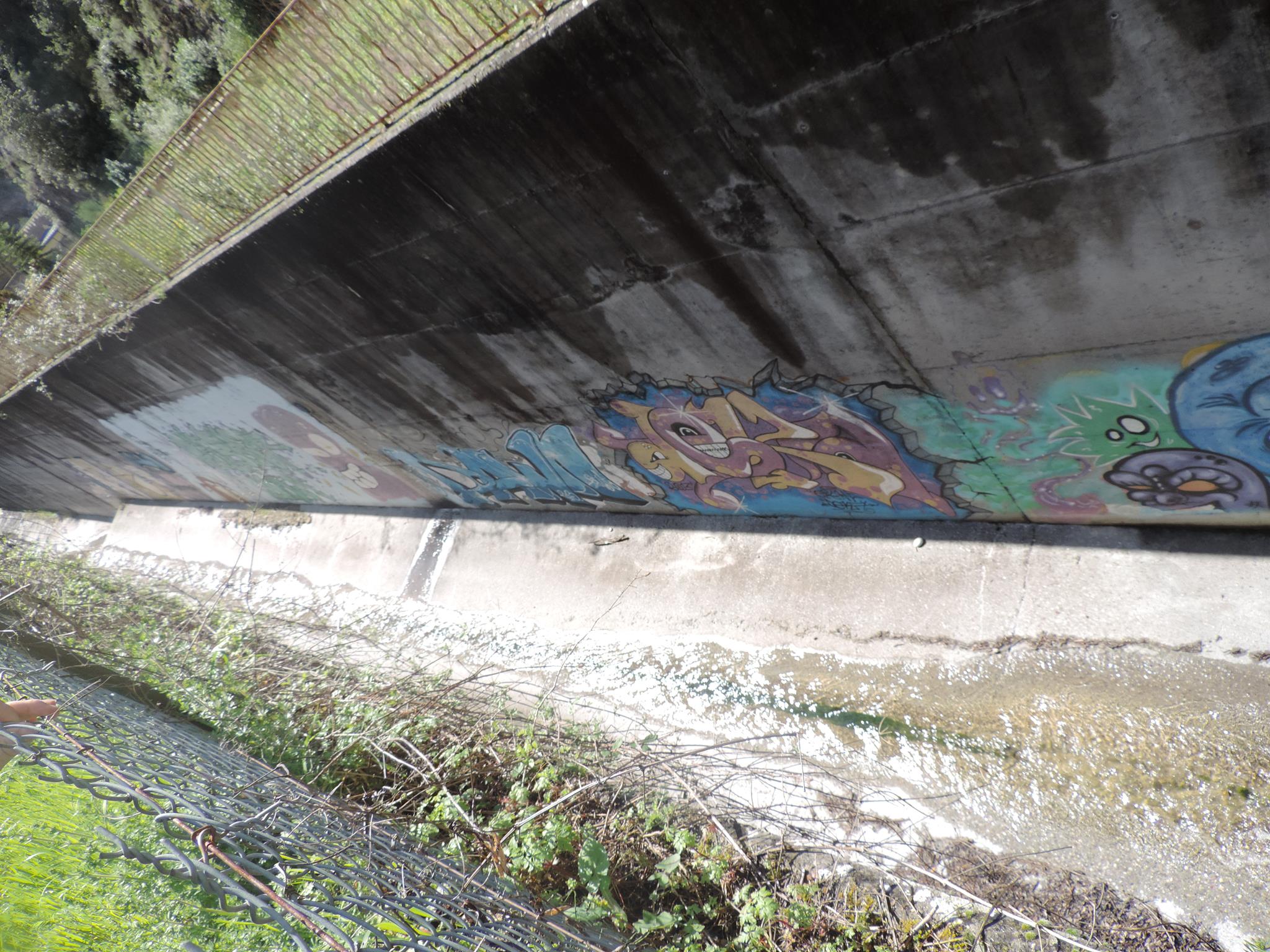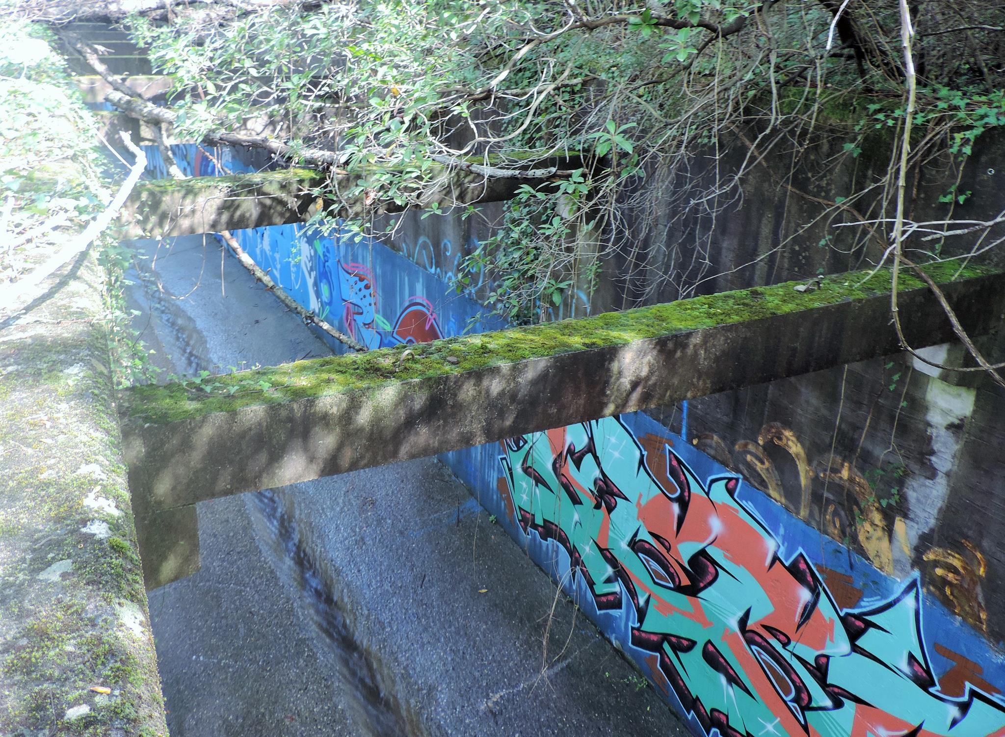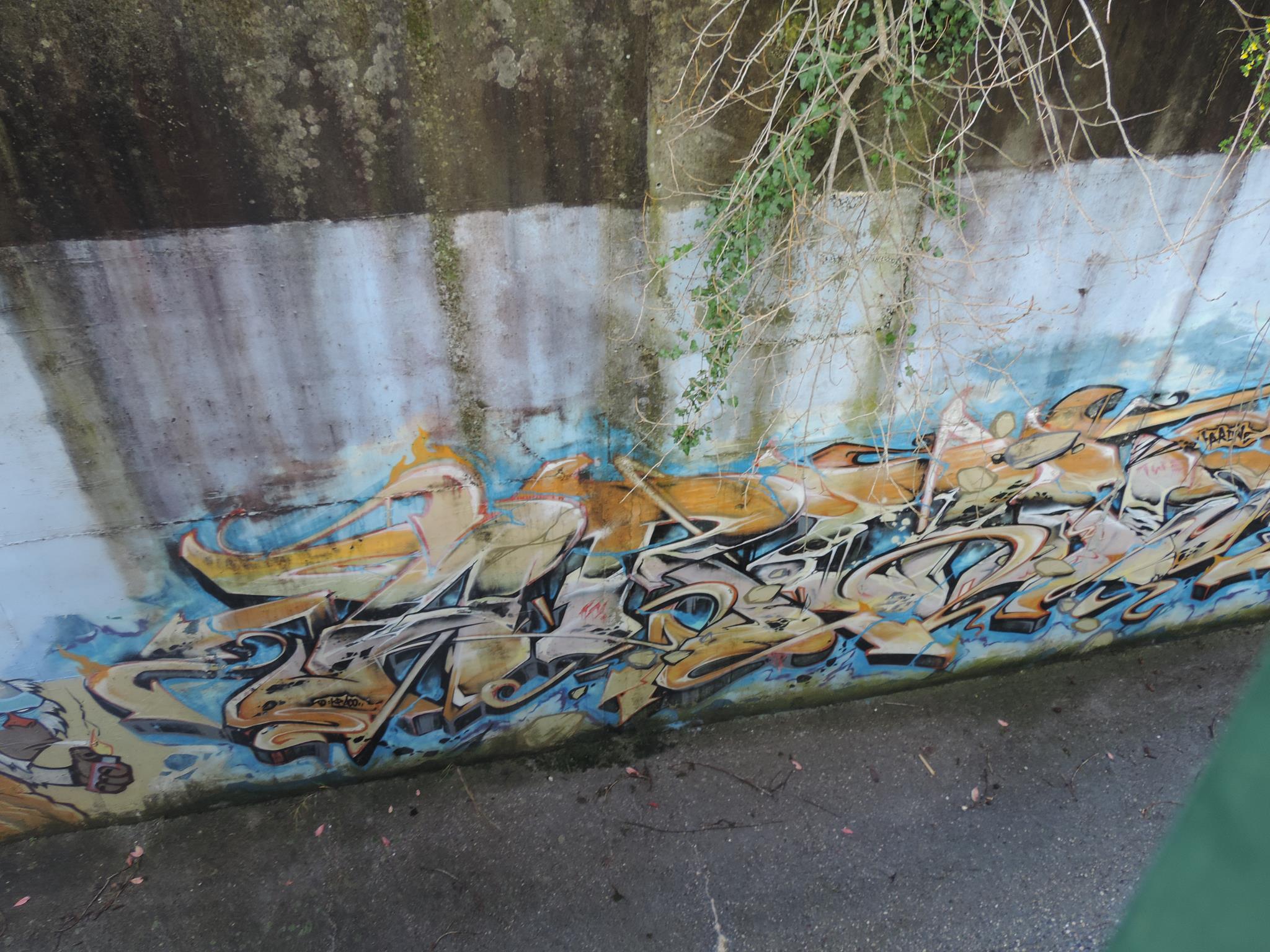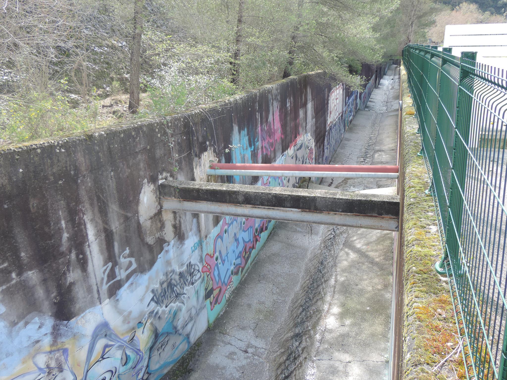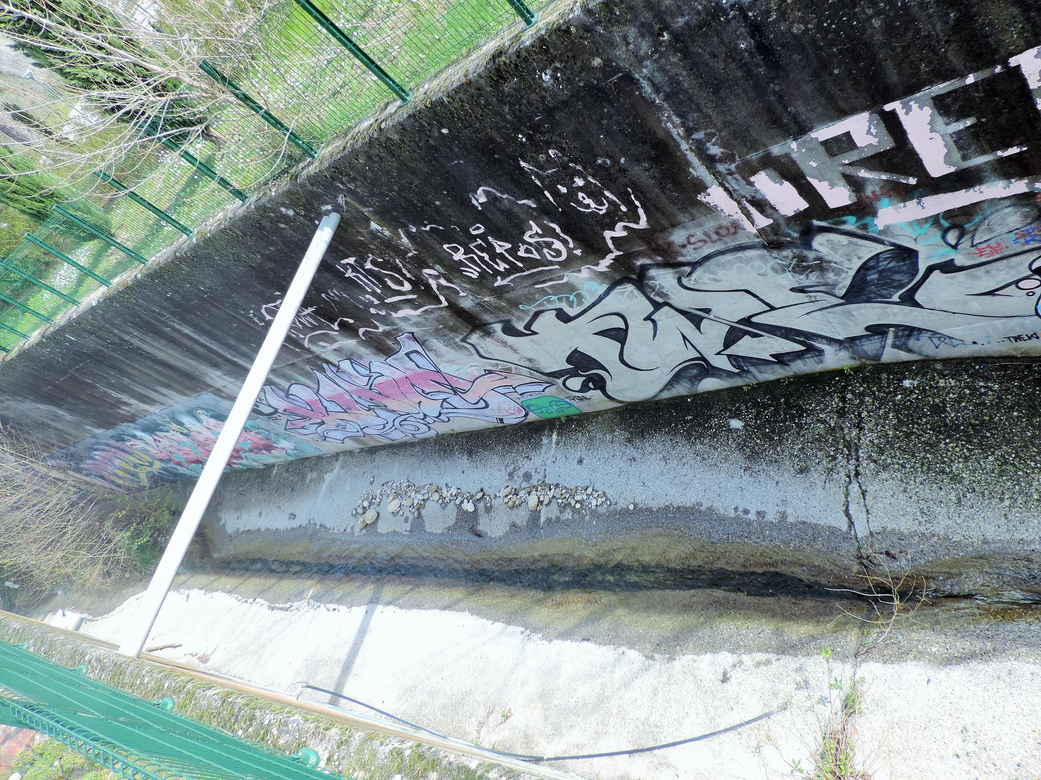 In the north of Nice in the municipality of Castagniers, between the Vallon de Massac and the Vallon de Roguez, lies the city’s necropolis with its cemetery and cremation site. The water flows from the mountain towards the foot of the Var river via the two Vallons and above the Necropolis area the inflow is channeled into a concreted canal. This can carry a lot of water at peak times, but often it is simply empty. So of water, but not of color. Because the walls are filled with great graffiti which have accumulated over many years. It is definitely a historic urban art place and off the beaten track, not easy to reach and not easy to photograph. Or you can go down into the canal, but you should bring a little more time for the complete walk from top to bottom. Here we have a collection of graffiti from the canal, it’s just a small selection. If you have your own photos of this spot, send them to info@vagabundler.com and we will add them to this page.