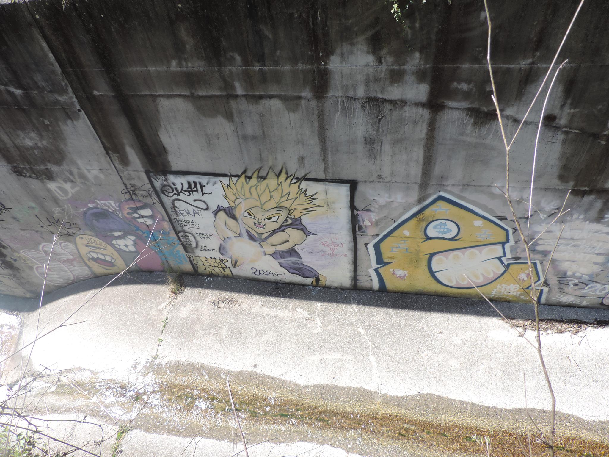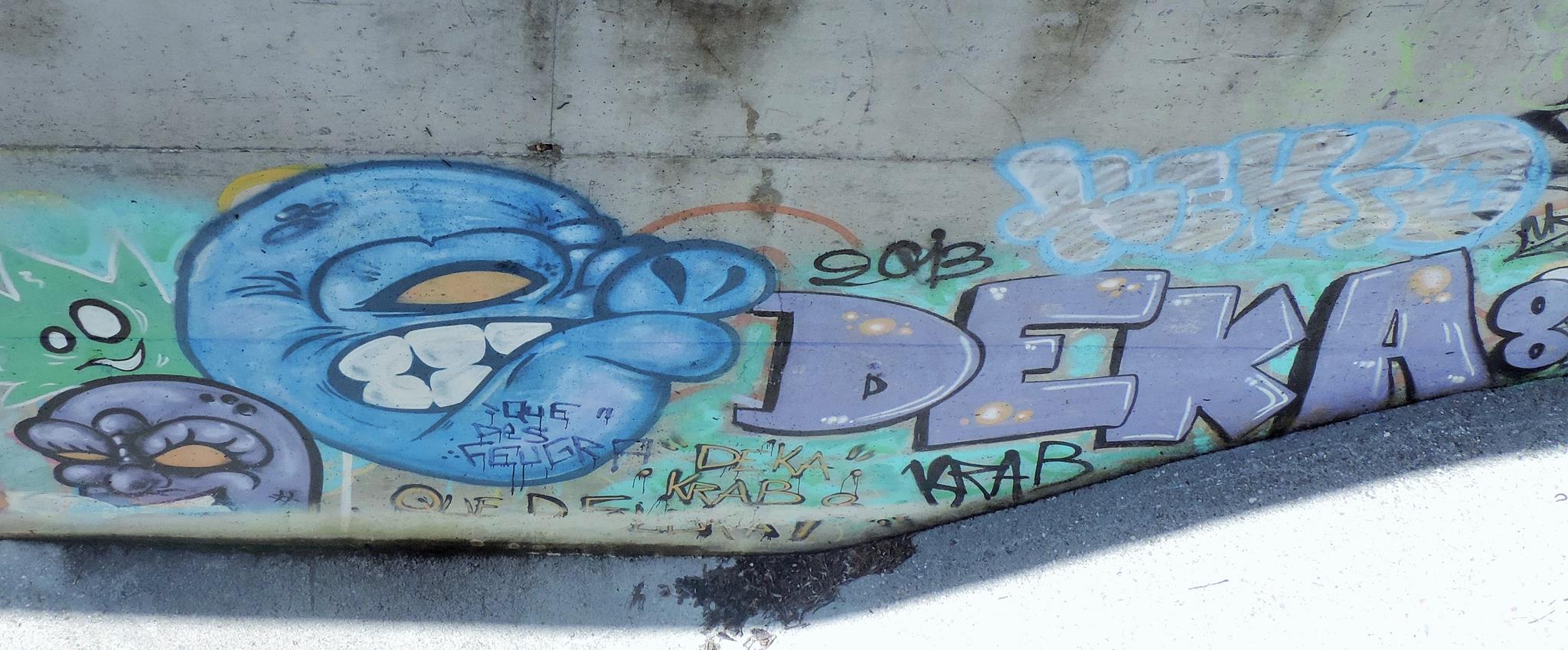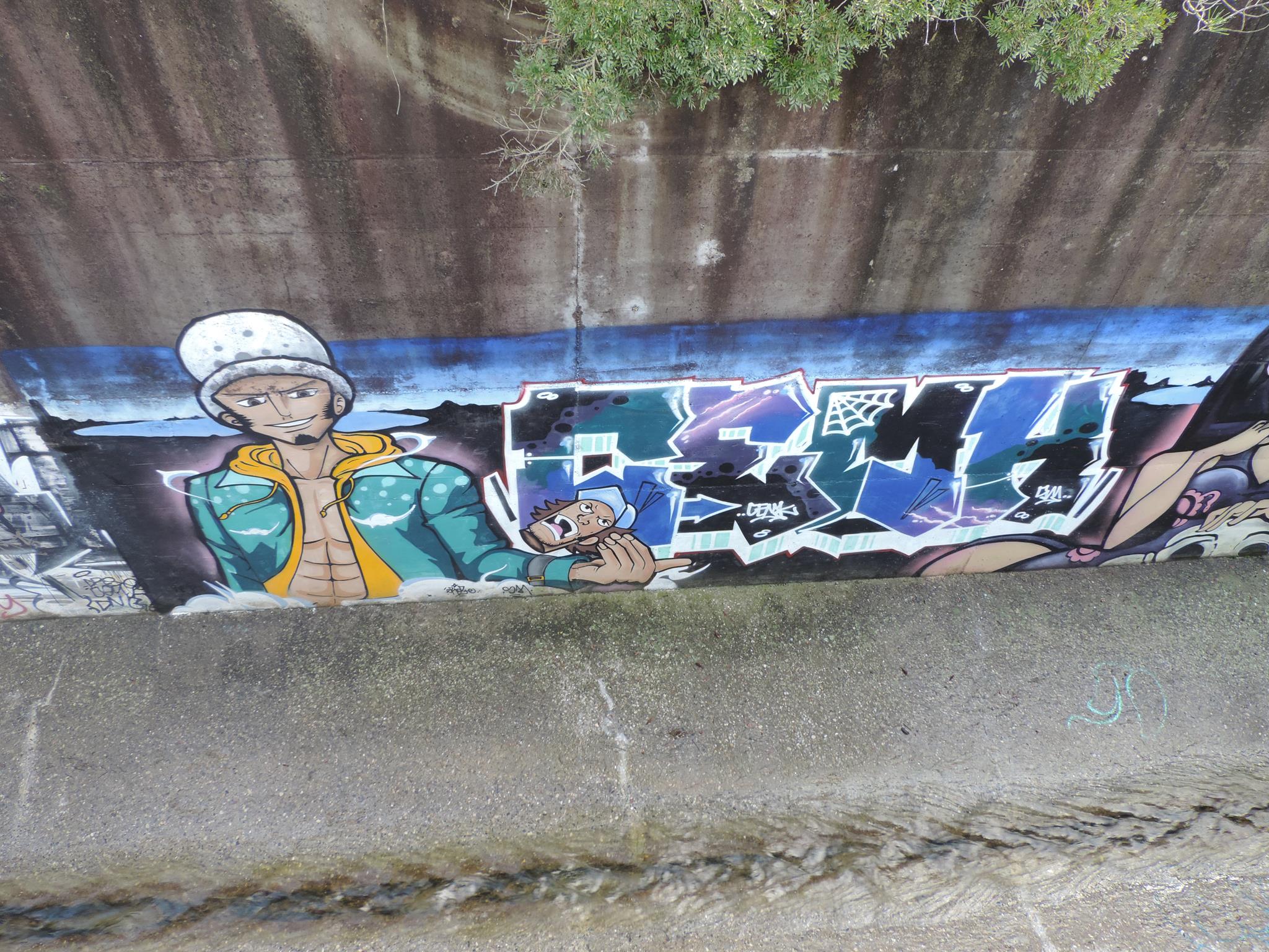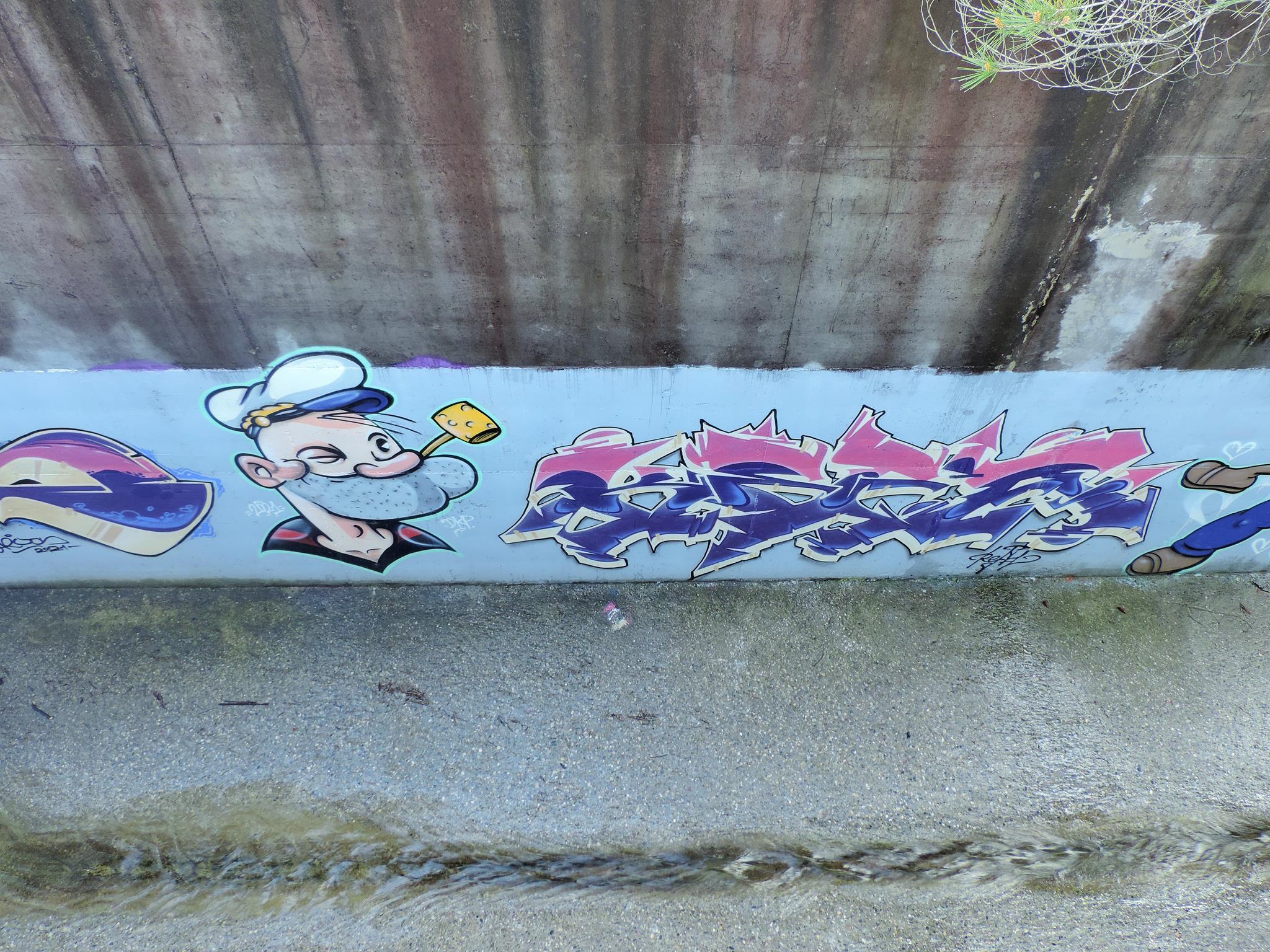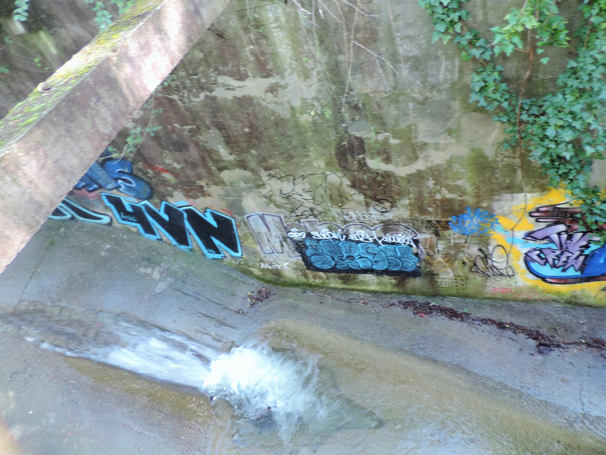 In the north of Nice in the municipality of Castagniers, between the Vallon de Massac and the Vallon de Roguez, lies the city’s necropolis with its cemetery and cremation site. The water flows from the mountain towards the foot of the Var river via the two Vallons and above the Necropolis area the inflow is channeled into a concreted canal. This can carry a lot of water at peak times, but often it is simply empty. So of water, but not of color. Because the walls are filled with great graffiti which have accumulated over many years. It is definitely a historic urban art place and off the beaten track, not easy to reach and not easy to photograph. Or you can go down into the canal, but you should bring a little more time for the complete walk from top to bottom. Here we have a collection of graffiti from the canal, it’s just a small selection. If you have your own photos of this spot, send them to info@vagabundler.com and we will add them to this page.