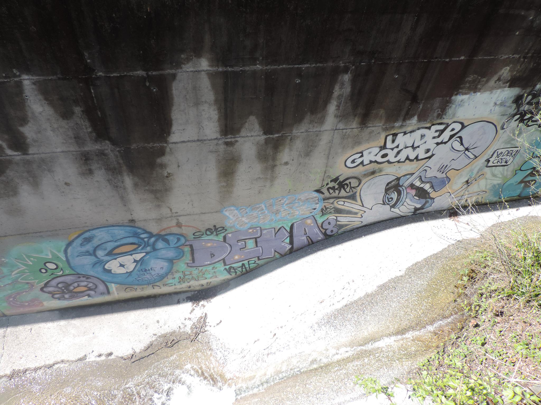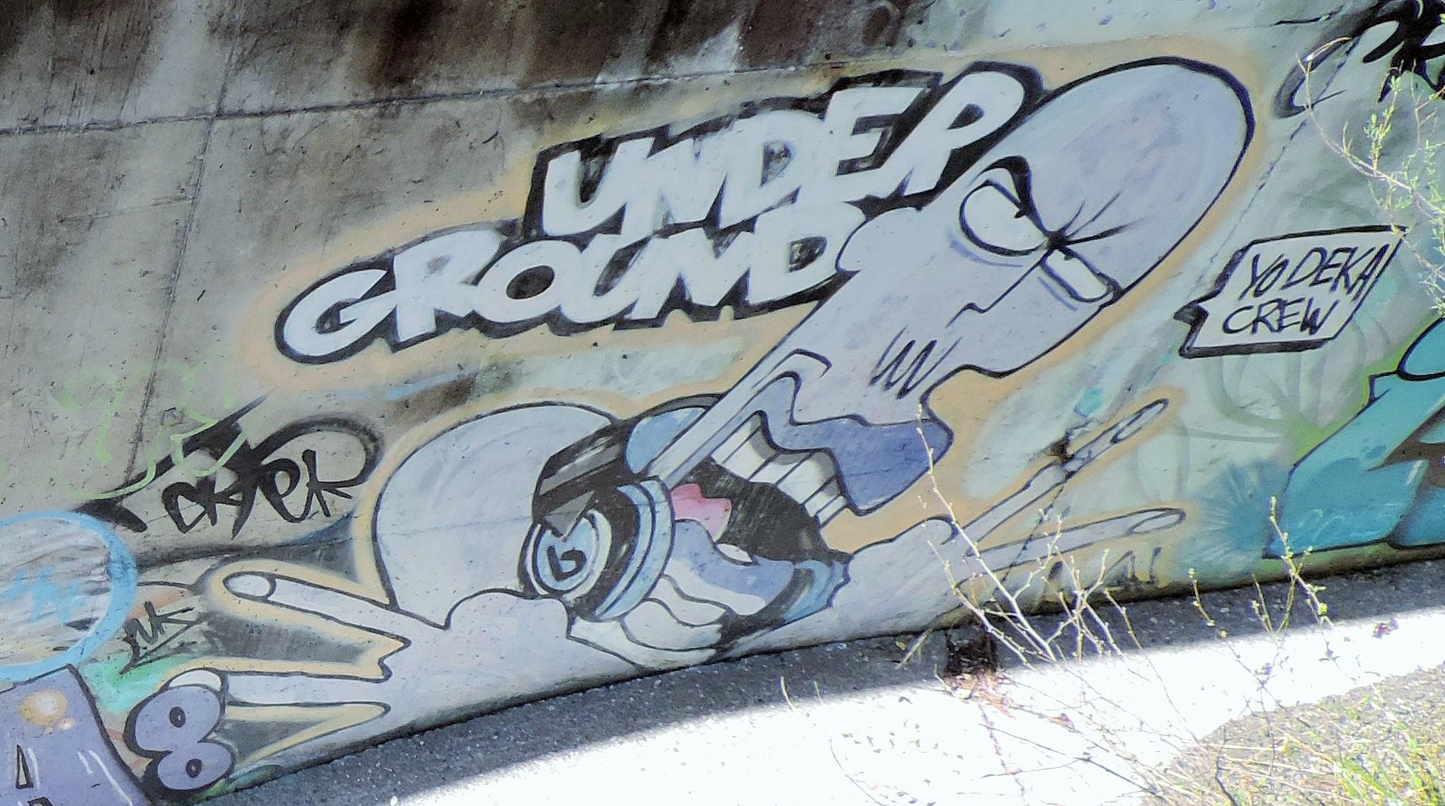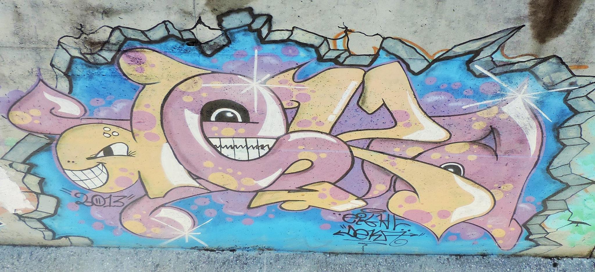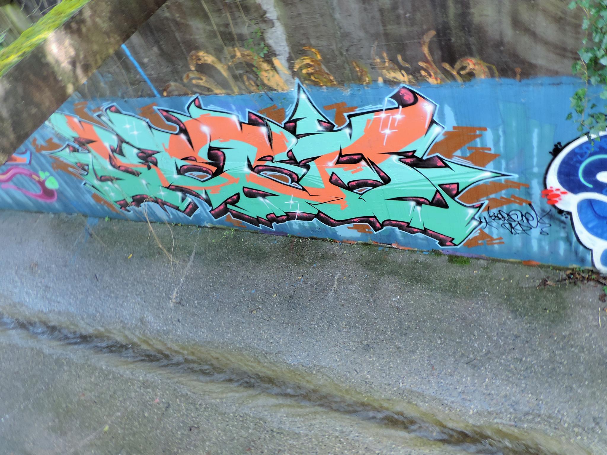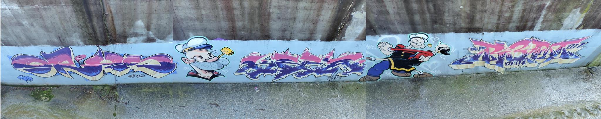 In the north of Nice in the municipality of Castagniers, between the Vallon de Massac and the Vallon de Roguez, lies the city’s necropolis with its cemetery and cremation site. The water flows from the mountain towards the foot of the Var river via the two Vallons and above the Necropolis area the inflow is channeled into a concreted canal. This can carry a lot of water at peak times, but often it is simply empty. So of water, but not of color. Because the walls are filled with great graffiti which have accumulated over many years. It is definitely a historic urban art place and off the beaten track, not easy to reach and not easy to photograph. Or you can go down into the canal, but you should bring a little more time for the complete walk from top to bottom. Here we have a collection of graffiti from the canal, it’s just a small selection. If you have your own photos of this spot, send them to info@vagabundler.com and we will add them to this page.