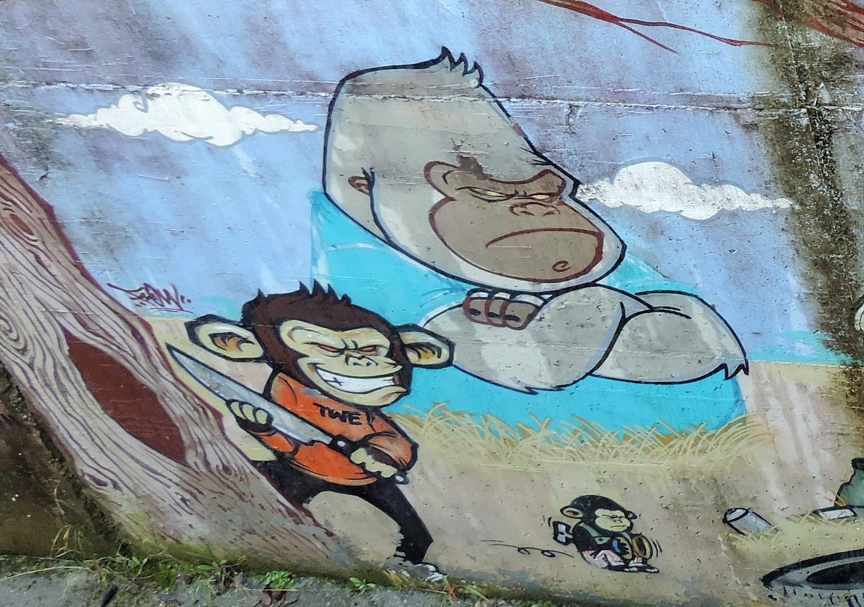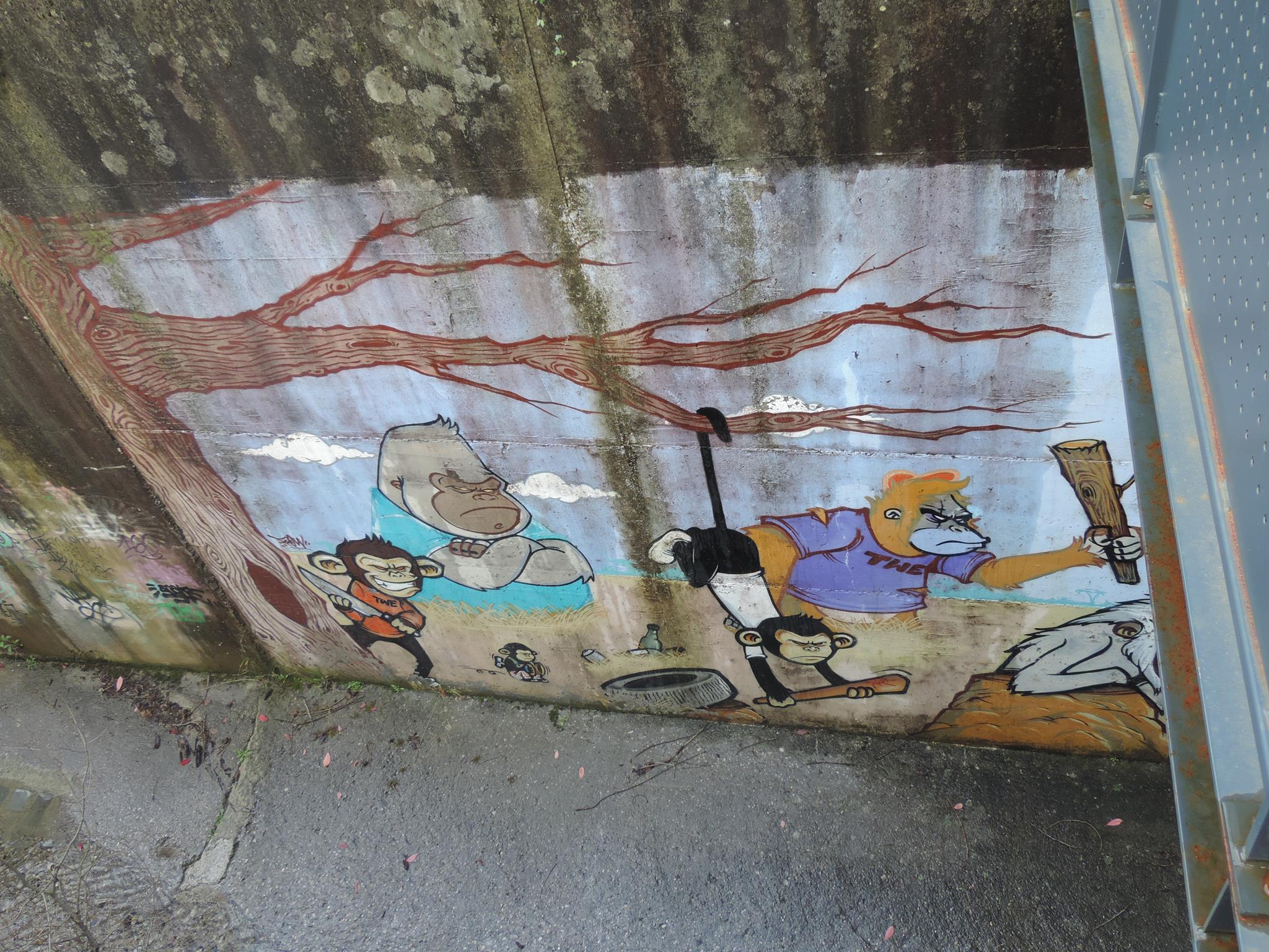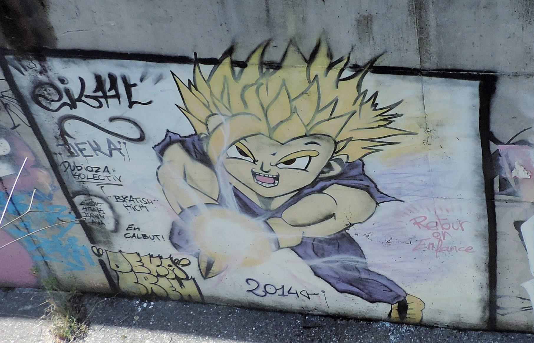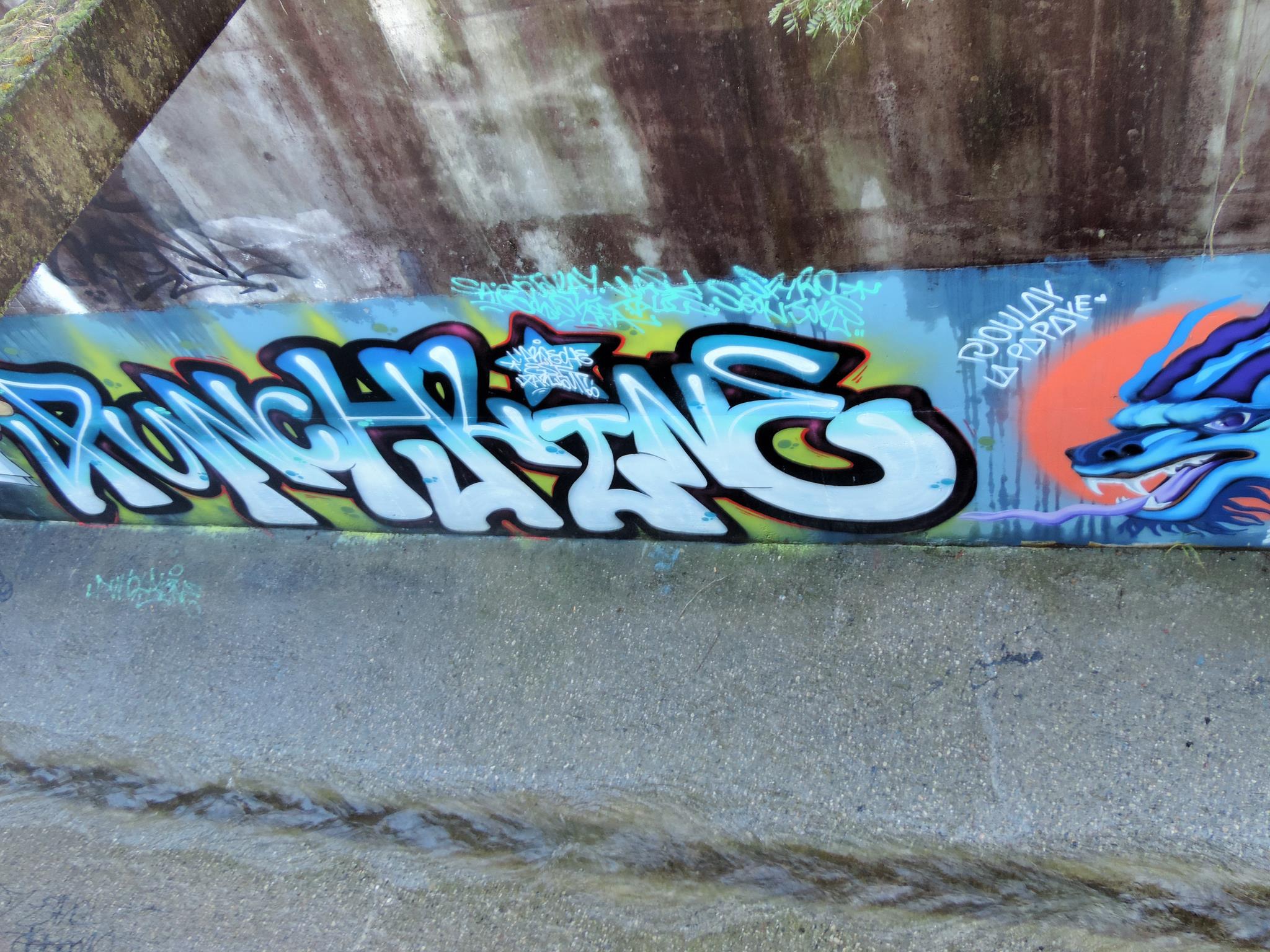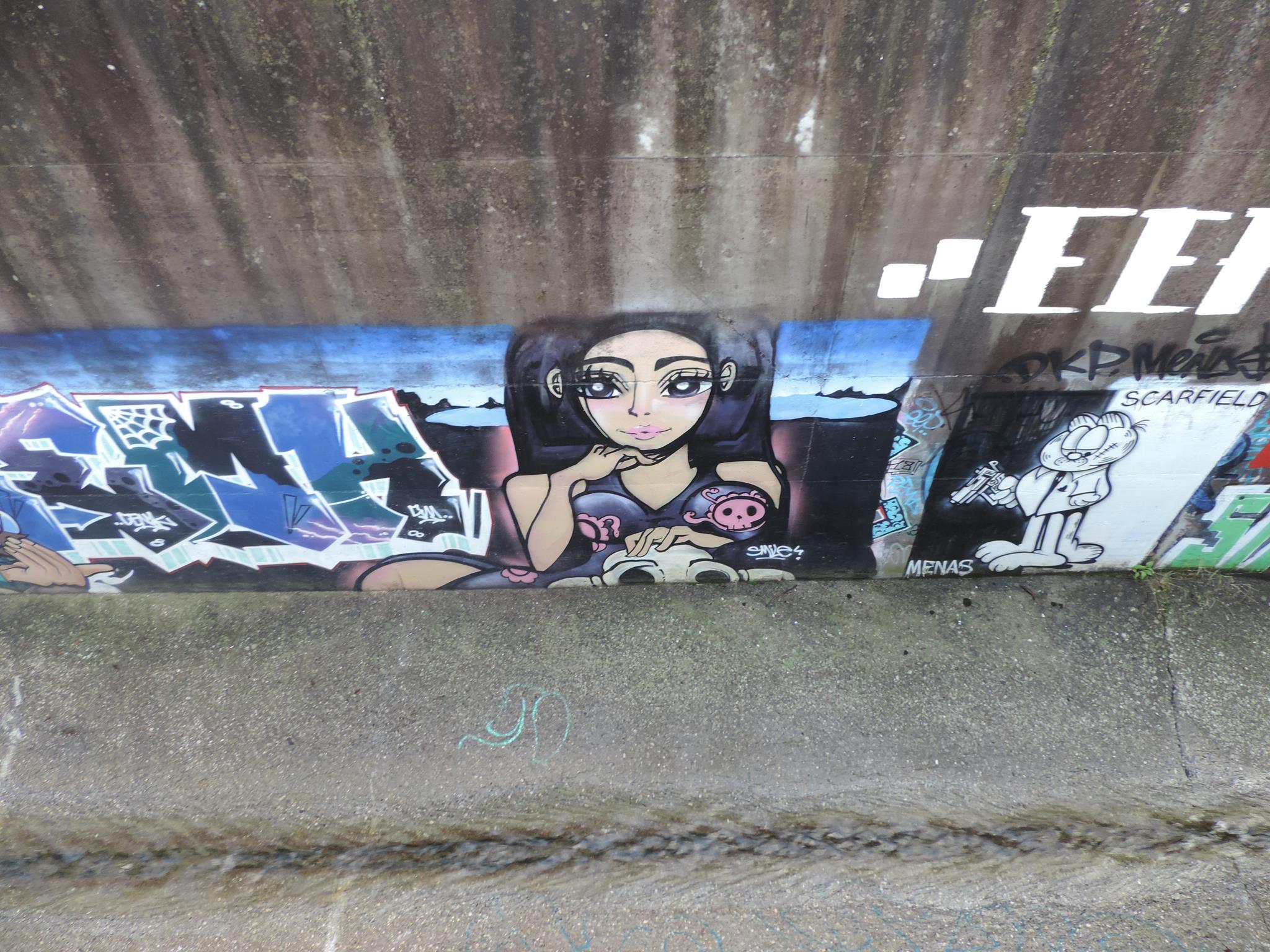 In the north of Nice in the municipality of Castagniers, between the Vallon de Massac and the Vallon de Roguez, lies the city’s necropolis with its cemetery and cremation site. The water flows from the mountain towards the foot of the Var river via the two Vallons and above the Necropolis area the inflow is channeled into a concreted canal. This can carry a lot of water at peak times, but often it is simply empty. So of water, but not of color. Because the walls are filled with great graffiti which have accumulated over many years. It is definitely a historic urban art place and off the beaten track, not easy to reach and not easy to photograph. Or you can go down into the canal, but you should bring a little more time for the complete walk from top to bottom. Here we have a collection of graffiti from the canal, it’s just a small selection. If you have your own photos of this spot, send them to info@vagabundler.com and we will add them to this page.