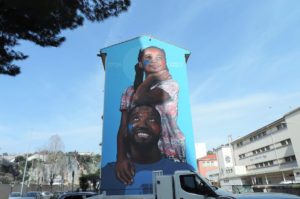 As part of the Côte d’Azur Habitat Centennial in 2024, a series of six monumental murals honoring the iconic revolution figure of Marianne was organized by the WHOLE STREET association with five of its collective artists. This project was carried out in partnership with the Nice Côte d’Azur Metropolis, the City of Nice, and Côte d’Azur Habitat, which launched a call for expressions of interest (CEI) to improve residents‘ living conditions and promote culture and creativity accesible for all. This CEI was addressed to professional teams, project leaders, with shared values: liberty, equality, fraternity, solidarity, citizenship, environmental protection, democracy, and secularism. Ultimately, the WHOLE STREET won with its project „Les nouvelles Mariannes“. The association was able to create giant urban artworks on several residences in the historic neighborhoods of Côte d’Azur Habitat.
