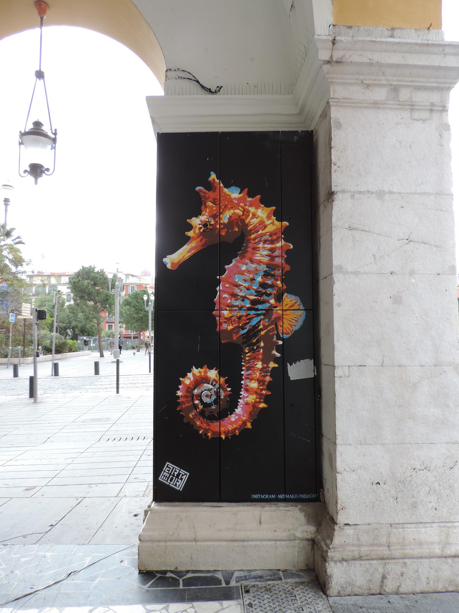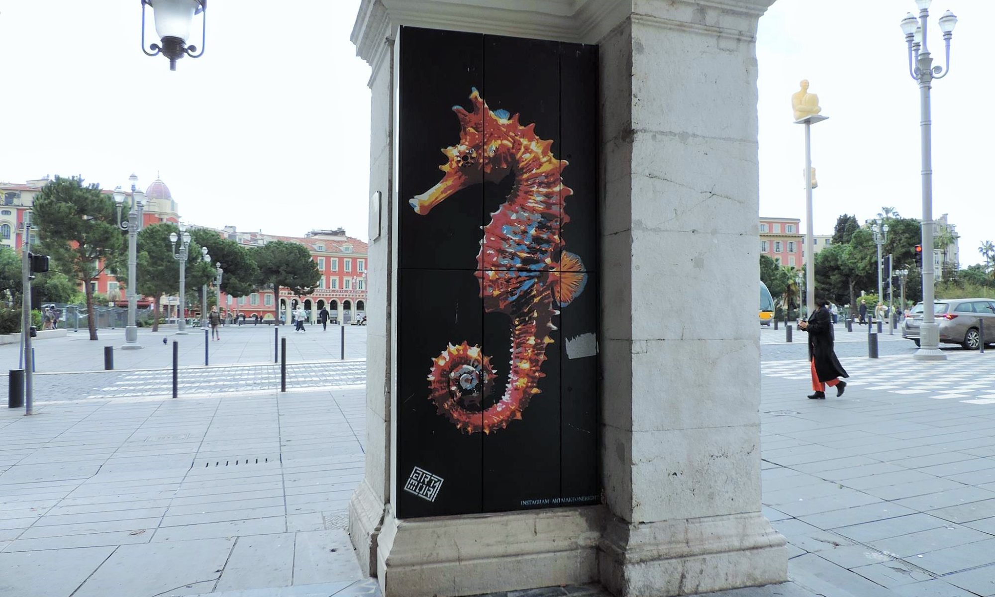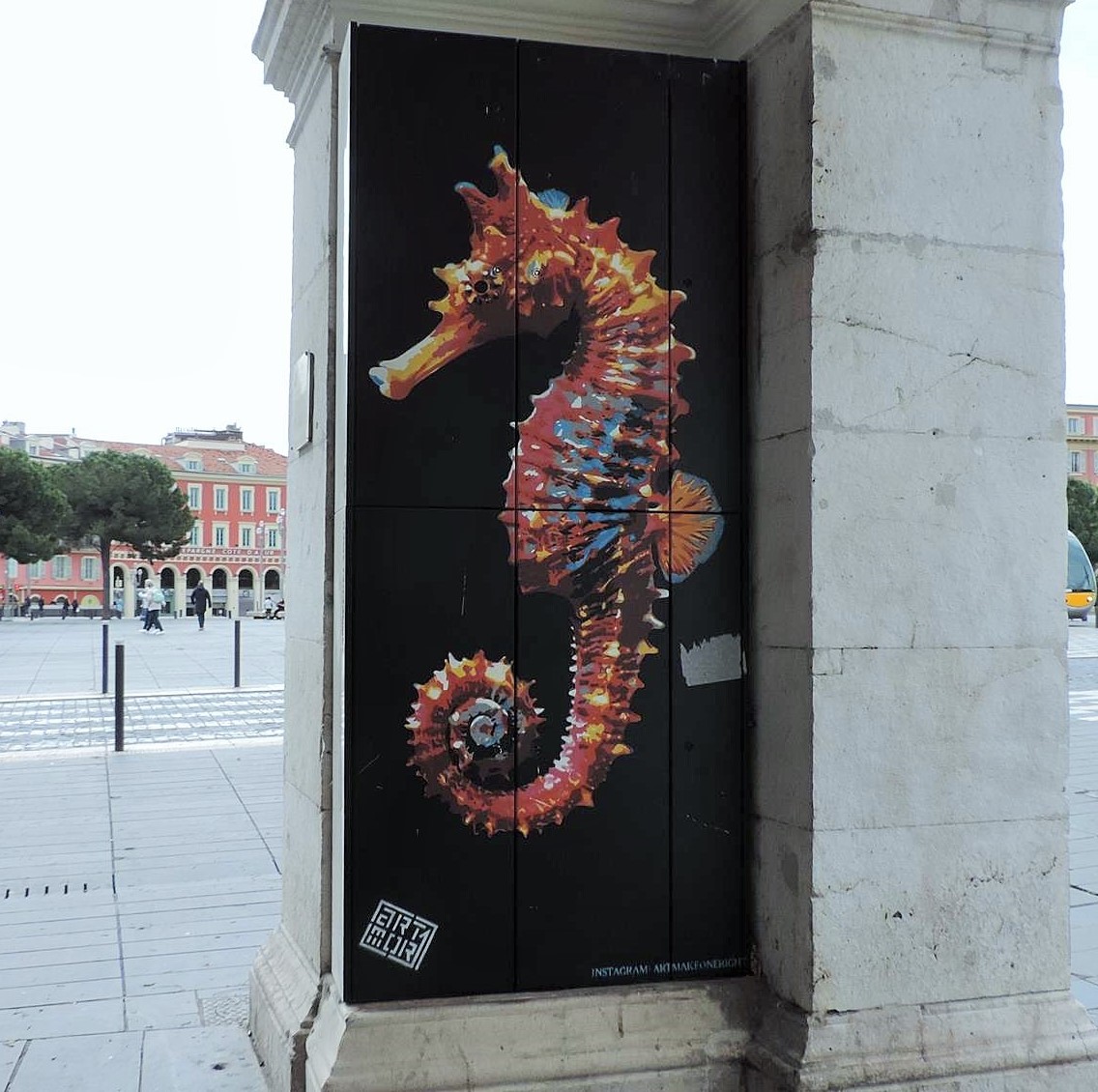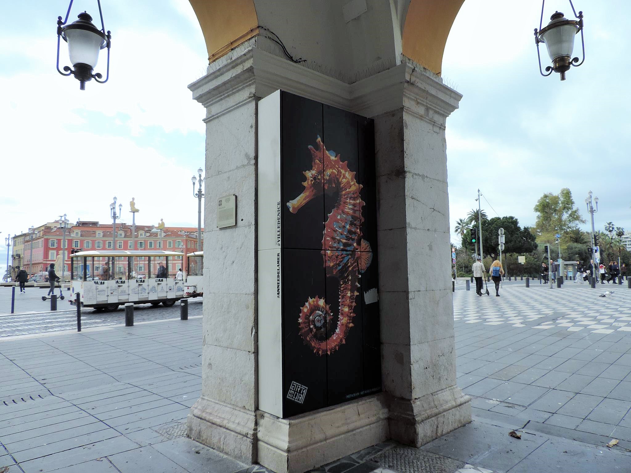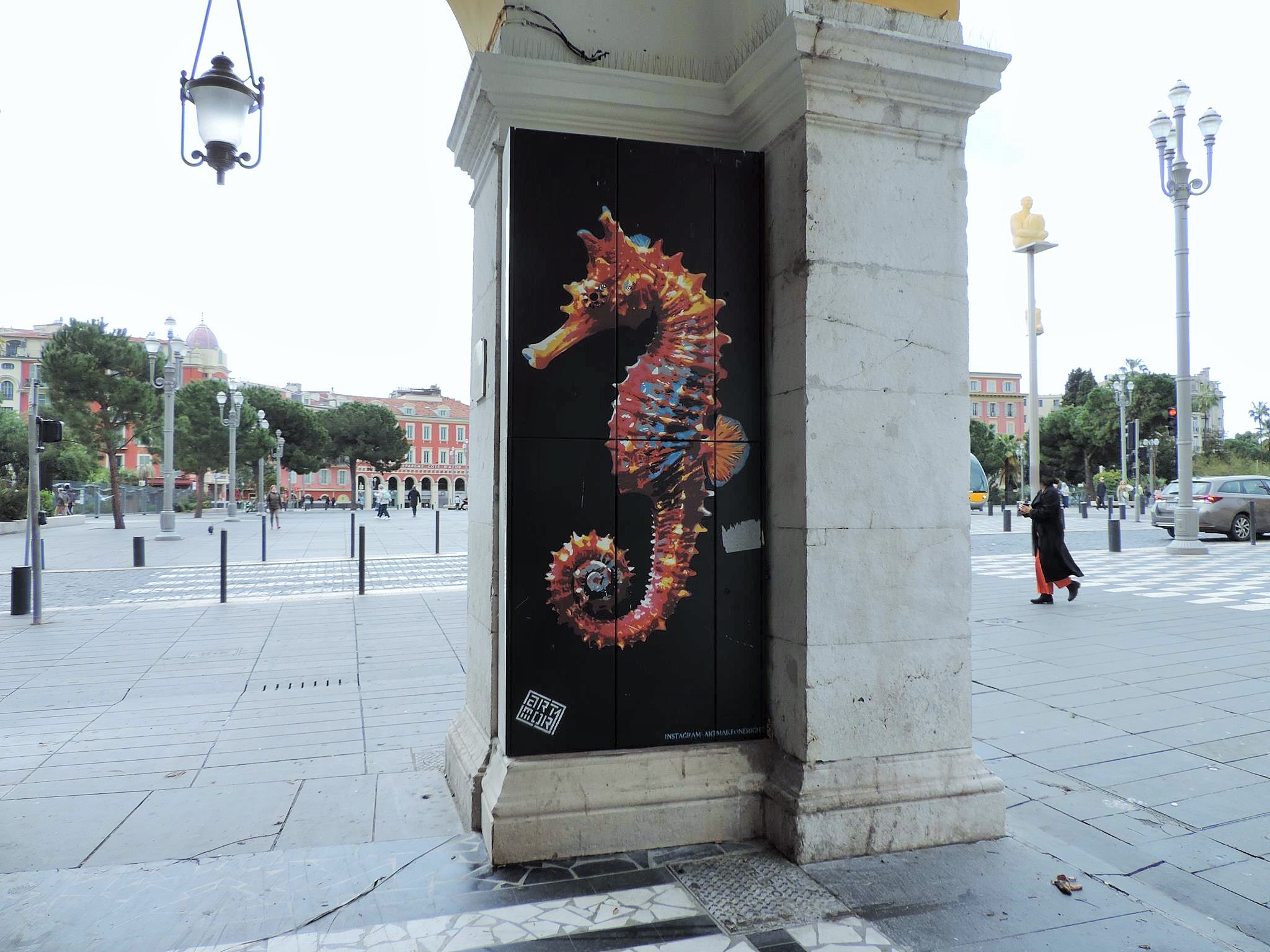 FRANCE: Streetart Nice – Jean Médecin – Place Masséna 13 – Ocean Electricity Series – The Seahorse – ARTMOR1