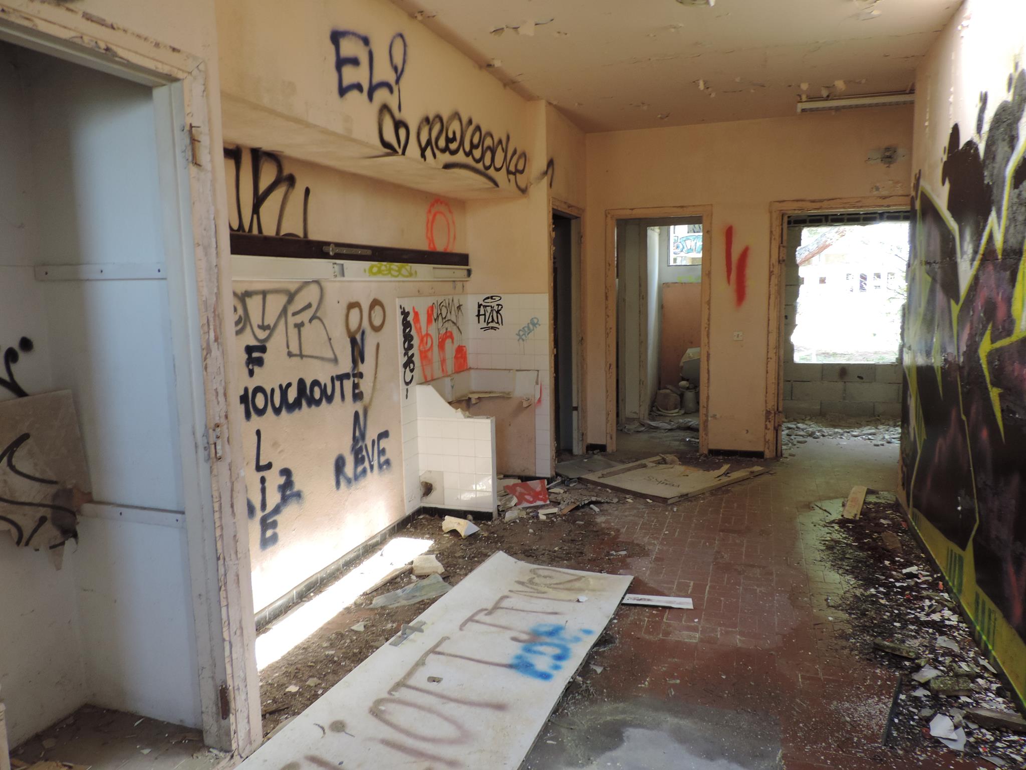 Here are the photos of the rehabilitation center from the middle buildings. Also take a look at the pages for the northern buildings, for the southern buildings and for the works on the outside walls around the compound with heaps of more photos.