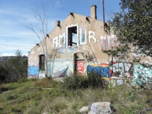 The Tête de Chien is a 550 meter high promontory near the small town of La Turbie which offers a spectacular view over Monaco and the French Riviera with the Côte d’Azur. The summit is also home to the Fort Masséna from the 18th century, which is well worth a visit if you are interested in history. But for graffiti and urban art fans, the old barracks next to it are much more exciting. The „Ruines de la Garnison de la Tête de Chien“ were once a military outpost and comprise three dilapidated buildings that are now being overgrown by nature. The walls of this lost place are filled with great graffiti, characters and abstract paintings. An interesting mix of historical architecture, mountain nature and stunning panoramic outlook. We have a lot of photos from this place and have therefore divided them into three subpages according to the buildings. If you also have photos of this spot, send them to info@vagabundler.com and we will add them to this archive.