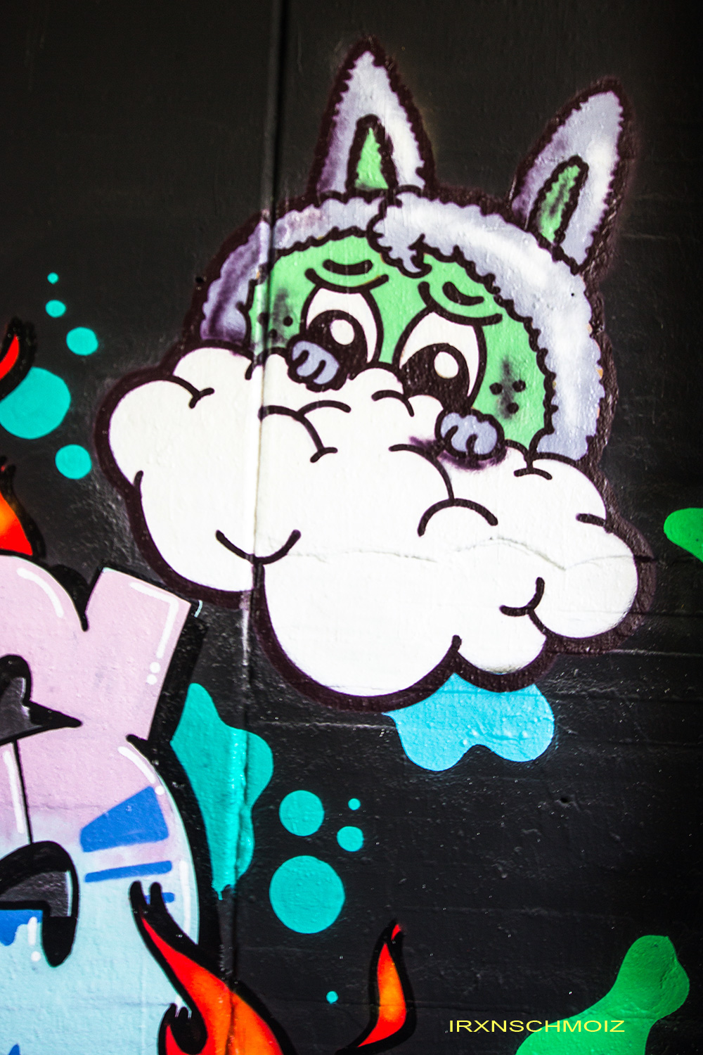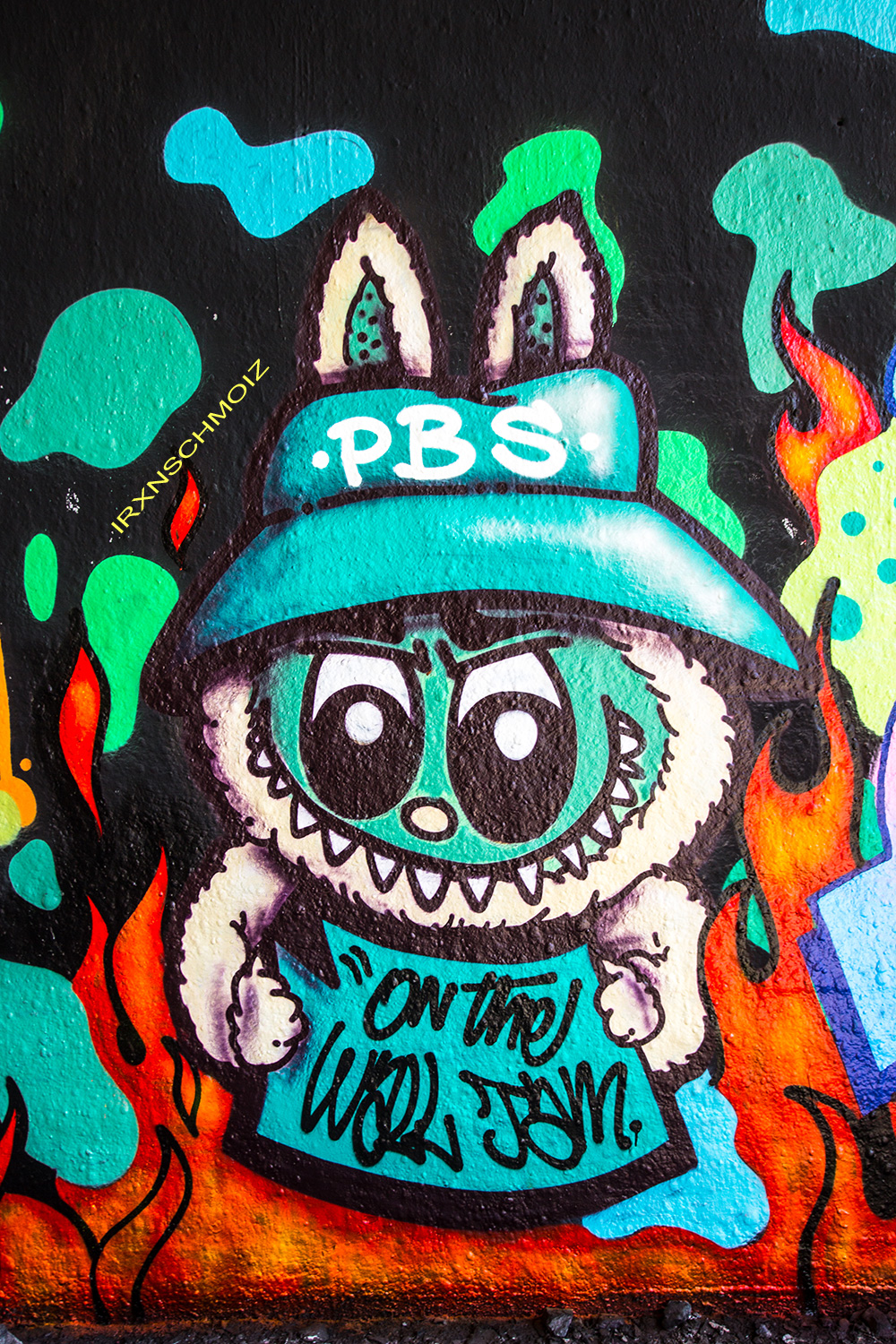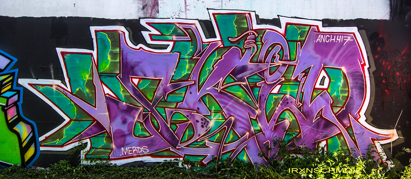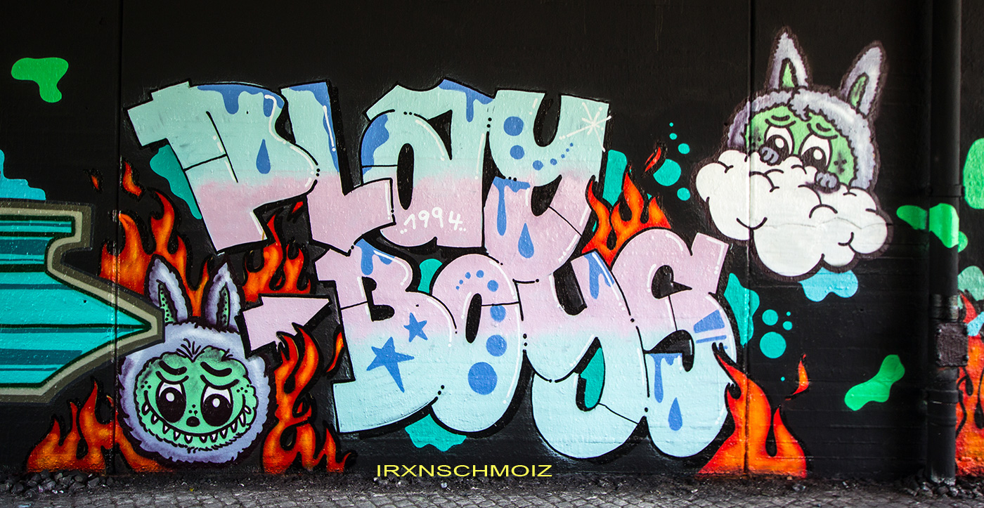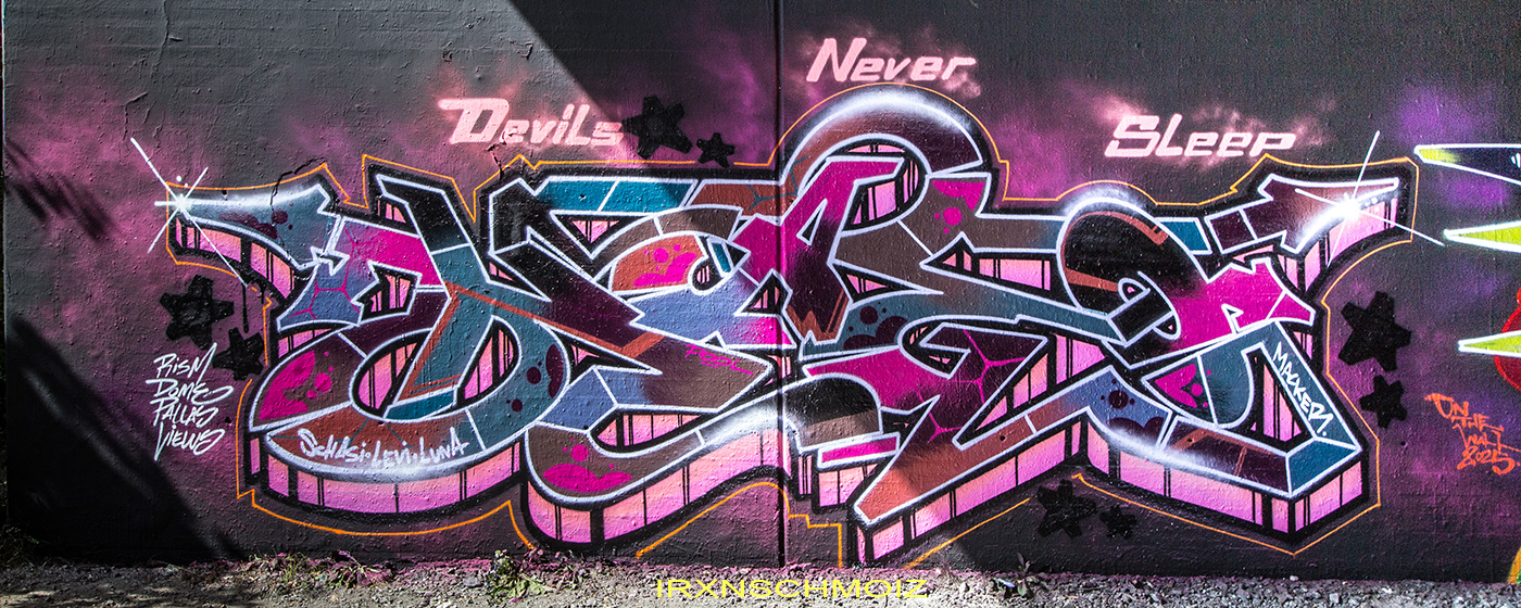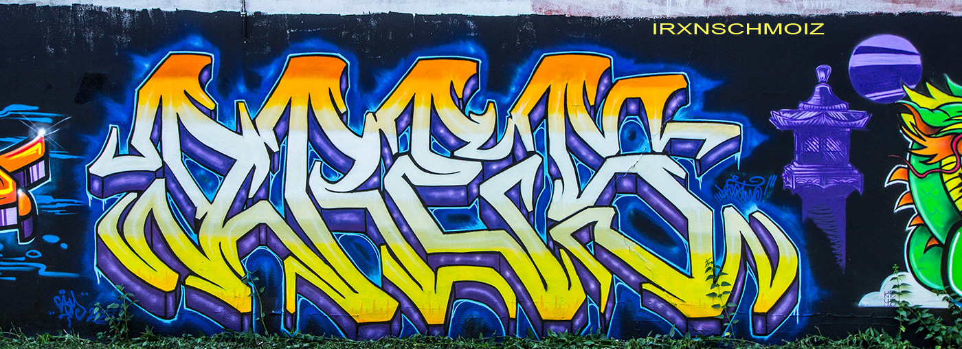 In the Westliches Ringgebiet district at the Westbahnhofstrasse below the bridge of Münchenstrasse and the surrounding walls, there is a fantastic Hall of Fame in a class of its own. The hall consists of two opposing bridge plinths with smooth formwork concrete and an approx. 100 m long unplastered wall as an extension of one of the plinths. The area under the bridge was developed by the city as a small event location with tiered seating platforms for watching and lingering, as well a bicycle path crosses the middle. The quality of the pieces is usually above average. The spot often surprises with unconventional styles in fresh colors in masterly execution and is certainly – next to the Ihme Hall and Glocksee Hall in Hannover – one of the best in Lower Saxony, but is topped by the Hall at the Skatepark, which is only a few minutes‘ walk away! The hall can be reached by streetcar line 5 from Braunschweig main station in around 20 minutes and a further 3 minutes on foot from the „Am Jödebrunnen“ station. There are two more individual pages for the artworks from the Hola Utopia! festival in 2024 and for murals and streetart around Braunschweig. – Irxnschmoiz