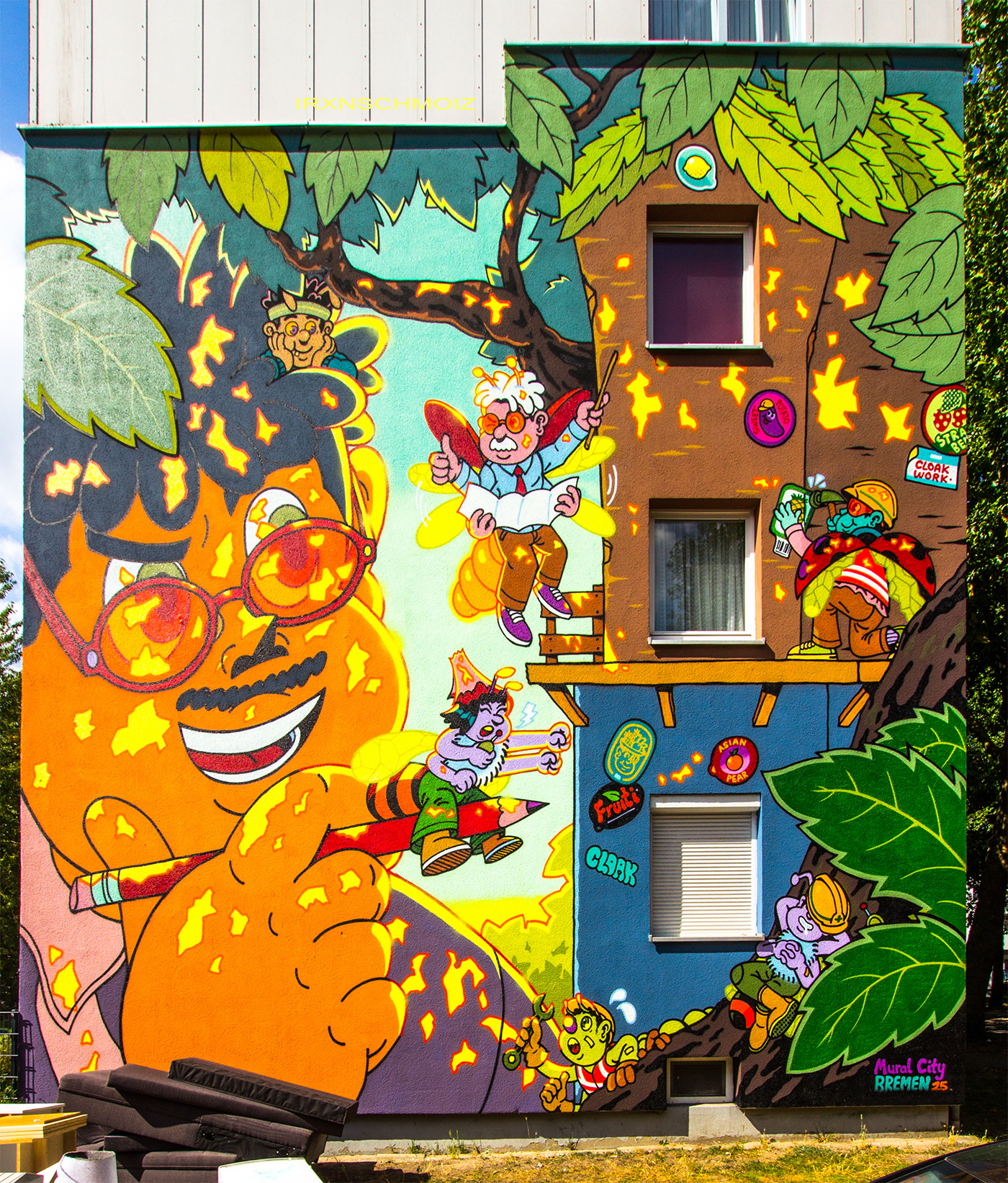 From August 17th till 23rd in 2025, the neighborhood in Bremen’s Gröpelingen district, around Bromberger, Gnesener, and Rostocker Streets, were transformed into an open air gallery during the MURAL CITY urban art festival. The focus was on our planet Earth and the common theme „Beauty of Nature“. Ten international artists designed ten facades with climate-positive colors. There were guided tours and an opening party at the KUNSTKIOSK on Dirschauer Street with good music, treats, and many creative activities for the whole family and anyone who enjoys art and community. This fantastic project was initiated by PETER STÖCKER aka THE CUT and the theam of his art agency LUCKY WALLS, with the support of the culture association KULTUR VOR ORT. Limited prints can also be purchased via the MURAL CITY SHOP and the artists‘ respective subpages, with a part of the proceeds being donated to charity.