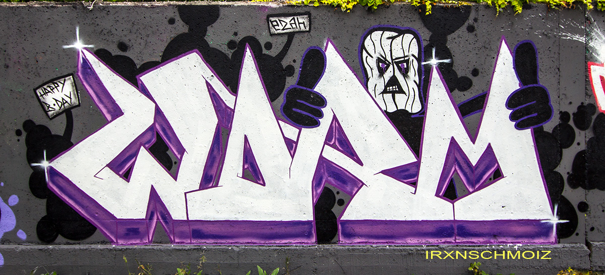 In July 2022, the artist WORM invited a handful of fellow writers to a spray session at the Hall of Fame on Speicherstraße. It was a cozy graffiti jam by the harbor to celebrate his birthday. In this occasion a fantastic wall was created, with each participant painting WORM in their own style. In addition to the writings, there’s also a portrait made by ZINS. The other graffiti from the birthday jam were made by EZAH, MEL, SCARY, GABE, SDK, RIKO and WORM himself. From a few pieces we don’t know the creators, those are sorted to the Unknown Artists page. If you know more, write us to info@vagabundler.com. Also if you have more photos from this spot and want to contribute in the project.