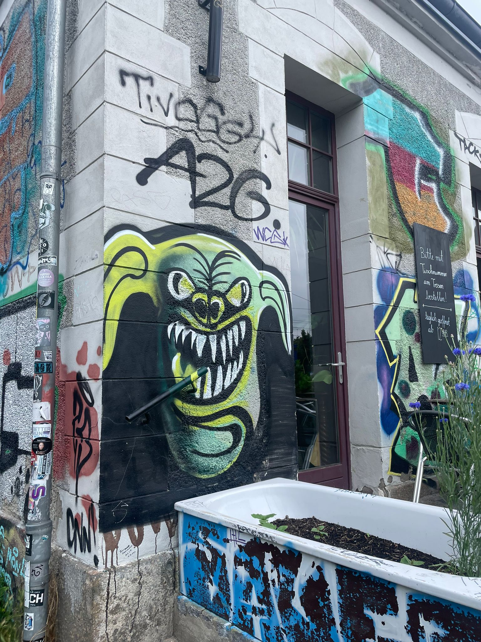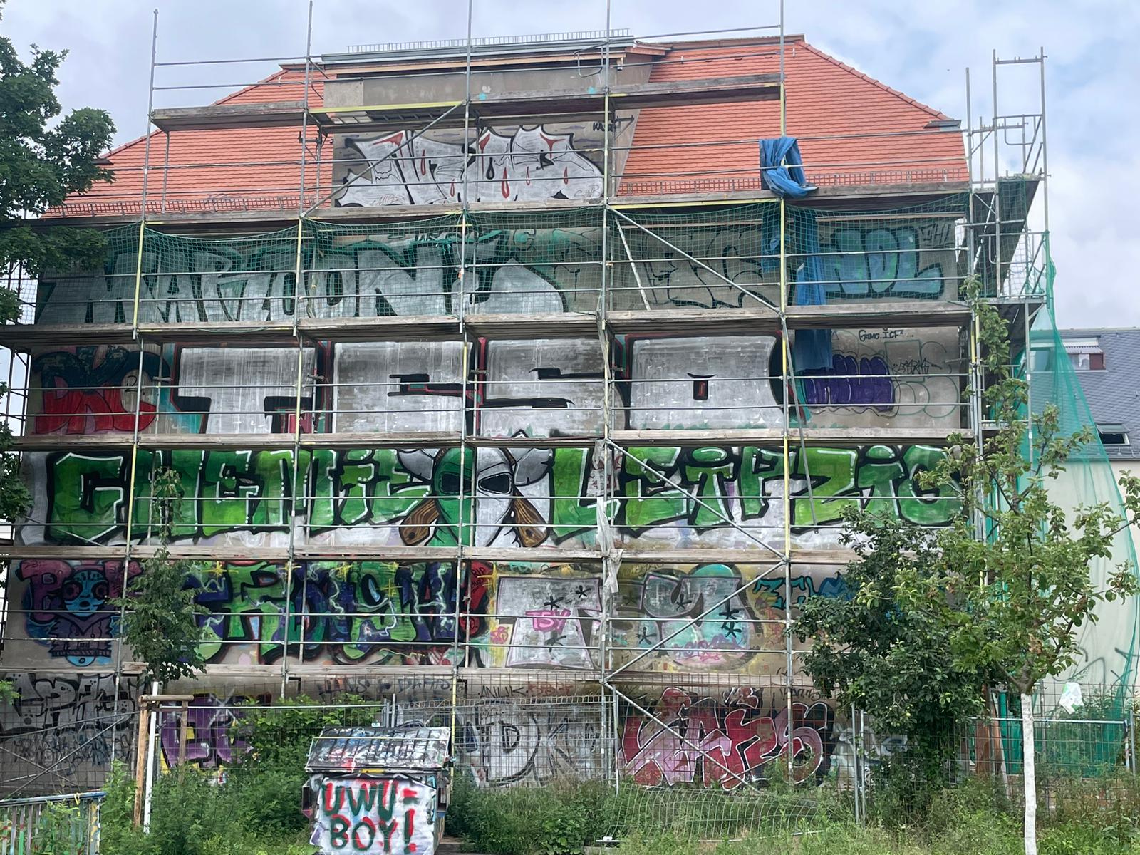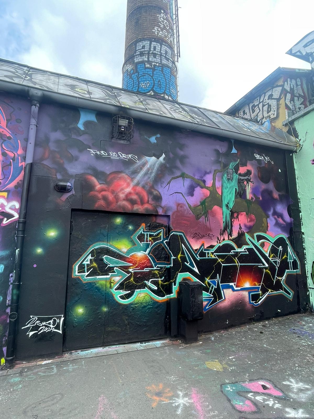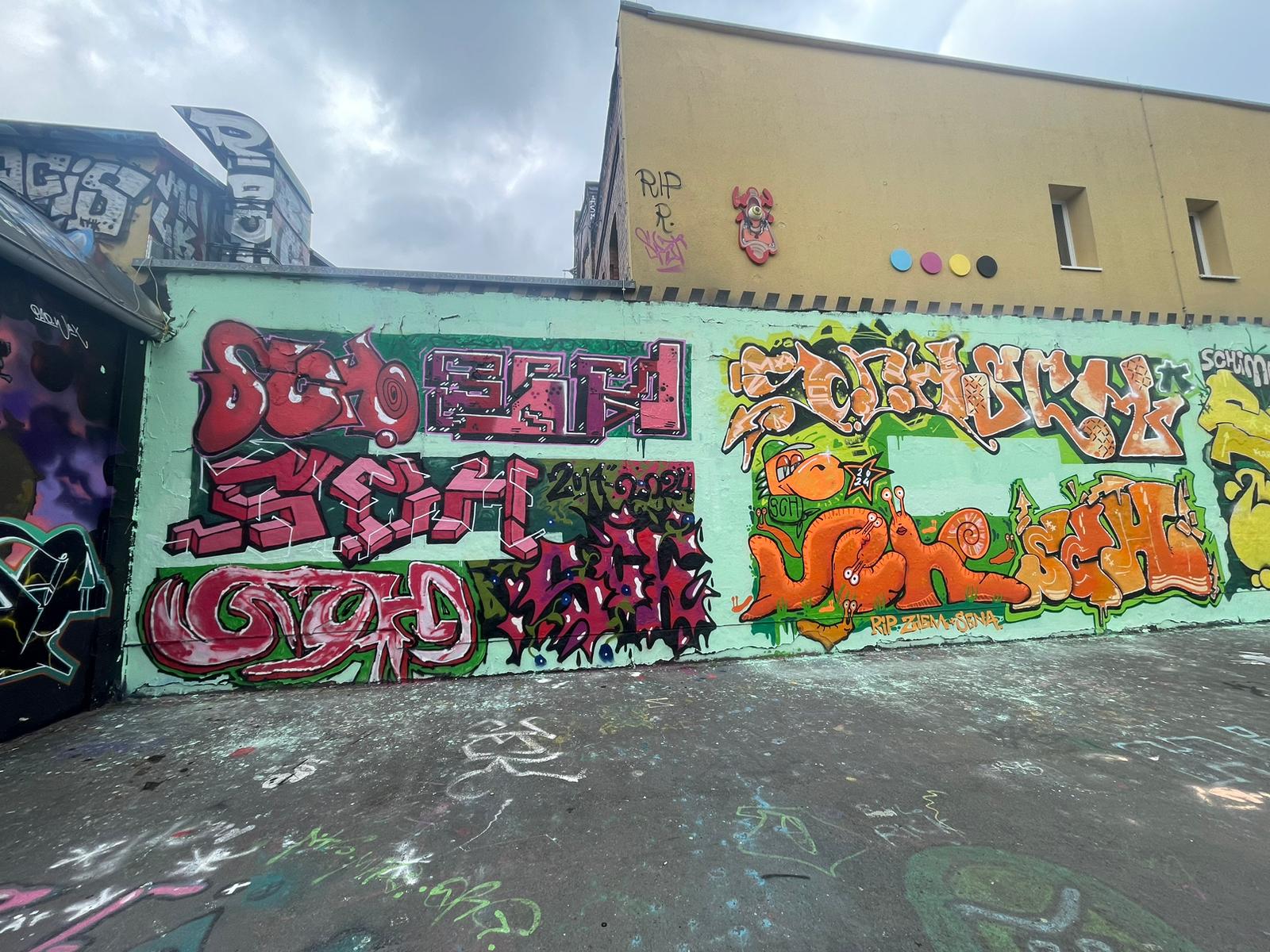 The KULTURFABRIK WERK 2 is a socio-cultural center in Leipzig’s Connewitz district and an important creative hot spot for the local scene. The building complex was built in 1848 as a gas knife factory and changed the operators from the engineering sector several times, until the association „Werk 2 – Kulturfabrik Leipzig“ took over the organization after the industrial work was shut down in 1992. Since then, the former factory site on Kochstraße has been home to workshops for ceramics, glass blowing and graphic printing, the Senior Citizens Computer Club, the „Society for International Understanding„, the Café ConnStanze, the Graffitiverein, the BetterRun Mad Flava Ink Store and several artists‘ studios. Concerts, parties and art events take place here regularly, and the Leipziger Cammerspiele uses it as a venue, as does the annual Wave Gotik Treffen and the Pop Up Musikmesse. In addition, the entire site is a large urban art gallery with countless graffiti and streetart works from large to small. Here is a collection of great pieces around the Werk 2 photographed by RENE GIESE aka SILENT PICTURE COMMANDO.