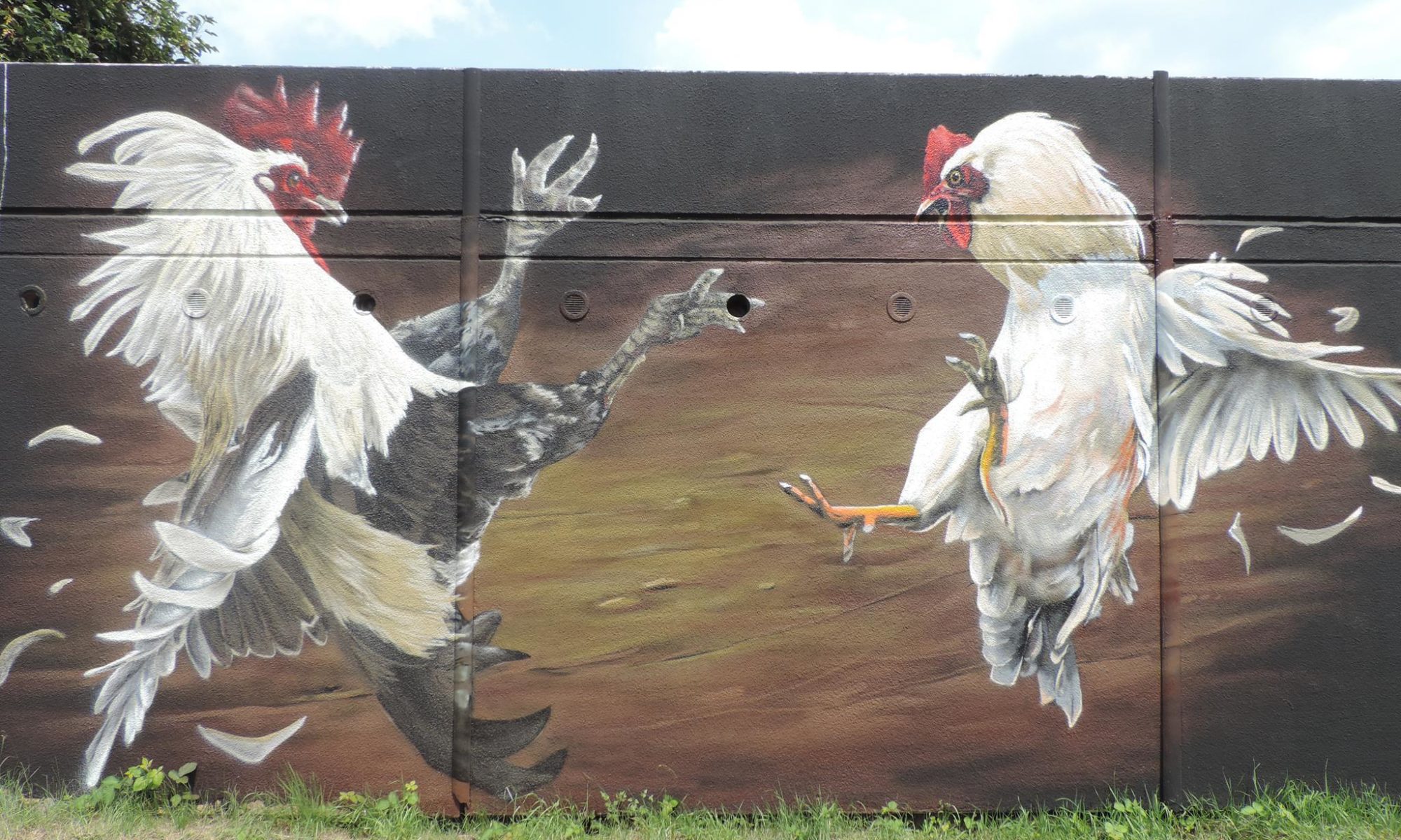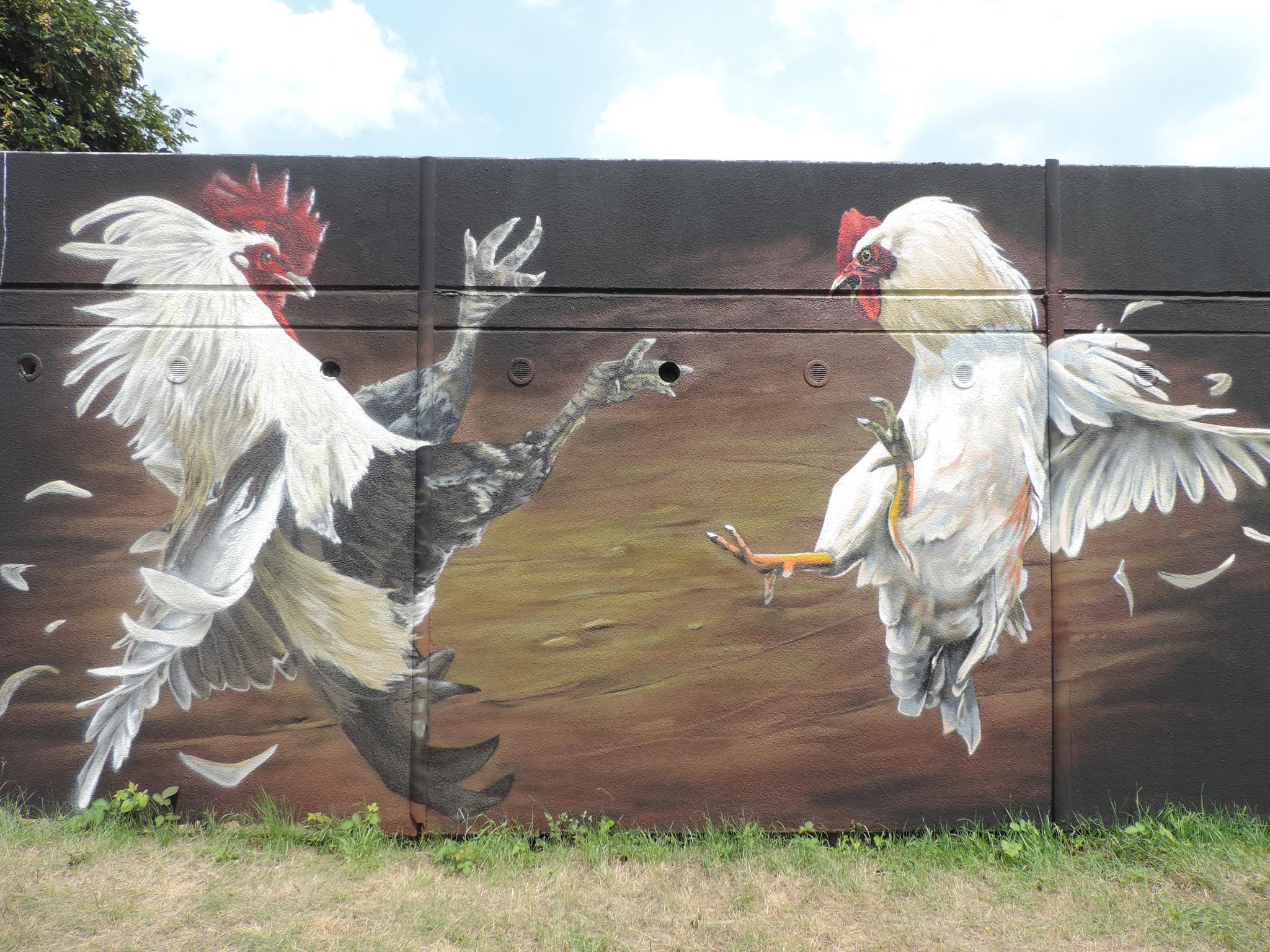 This awesome chicken fight mural was made together with BLAZIN VIBES
