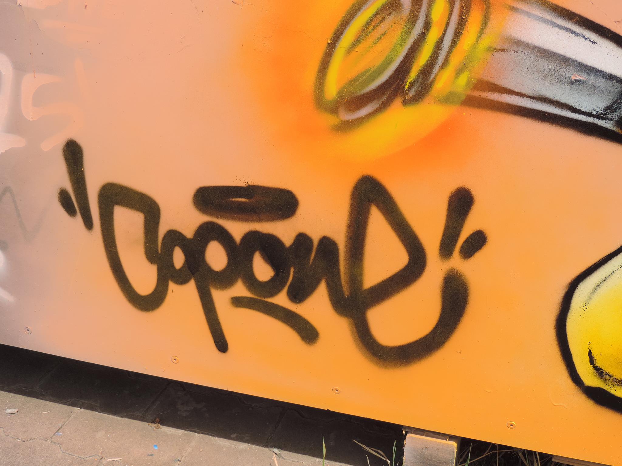 The graffiti on the right are from KAZE, SHADER, ANDREA 639 and DAM ONE