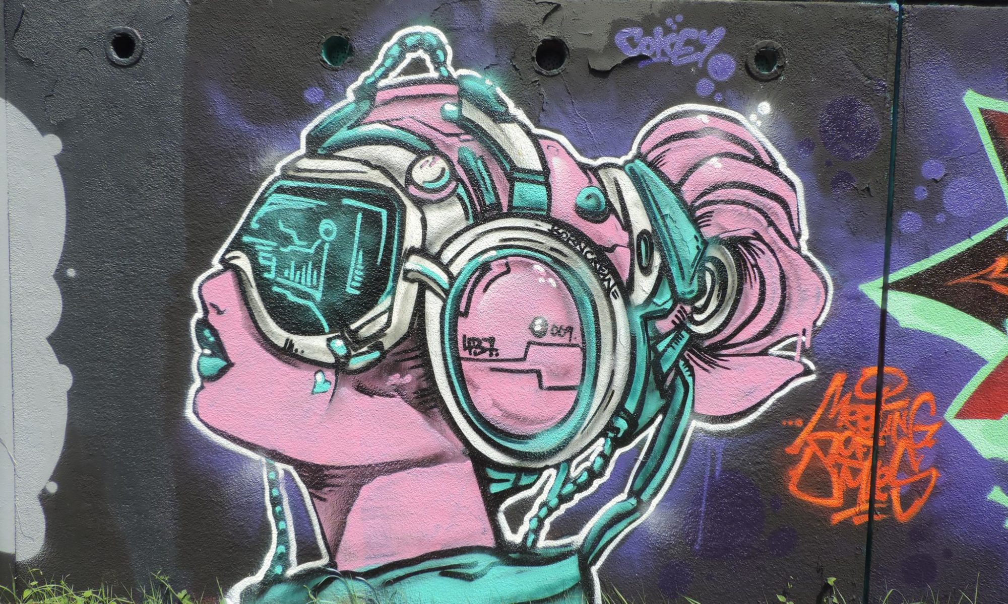 The graffiti on the far left are from members of the crew STICK UP GIRLZ including DIZY, RAFI, SAX and SINAE, followed by an artwork from MIKKIE KORPSE