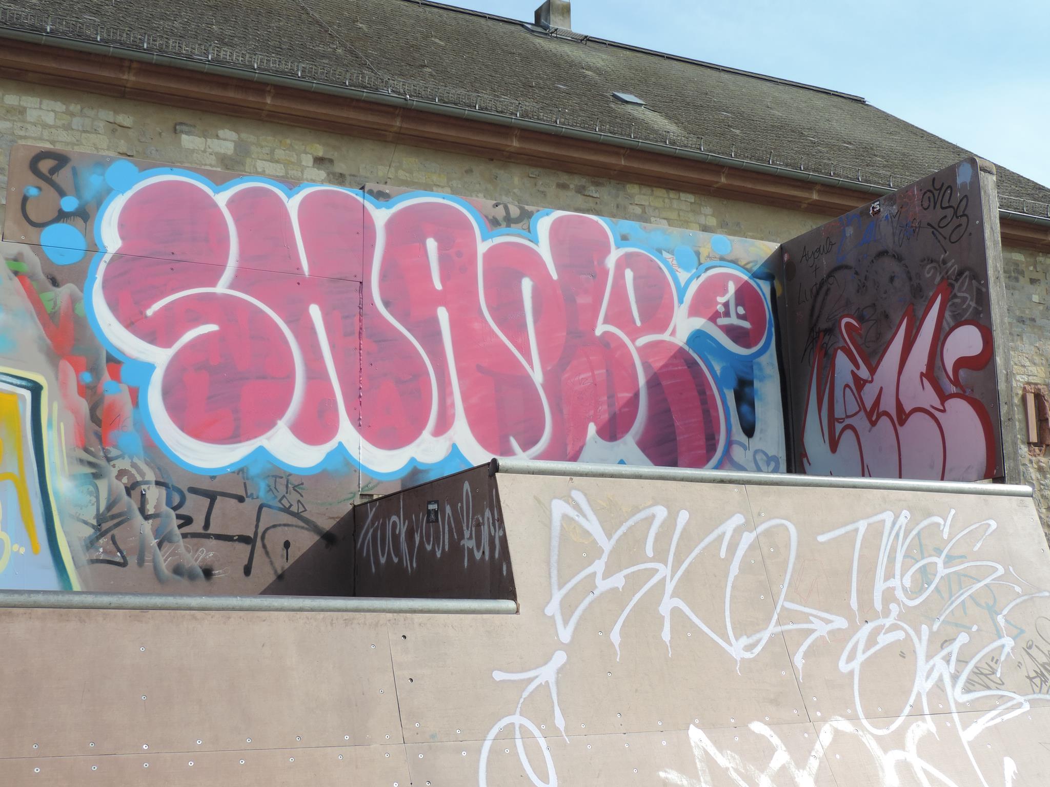 The graffiti on the left are from CARSA, SOBE and SHADER. Below on the ramp there is also a graff from ESKO