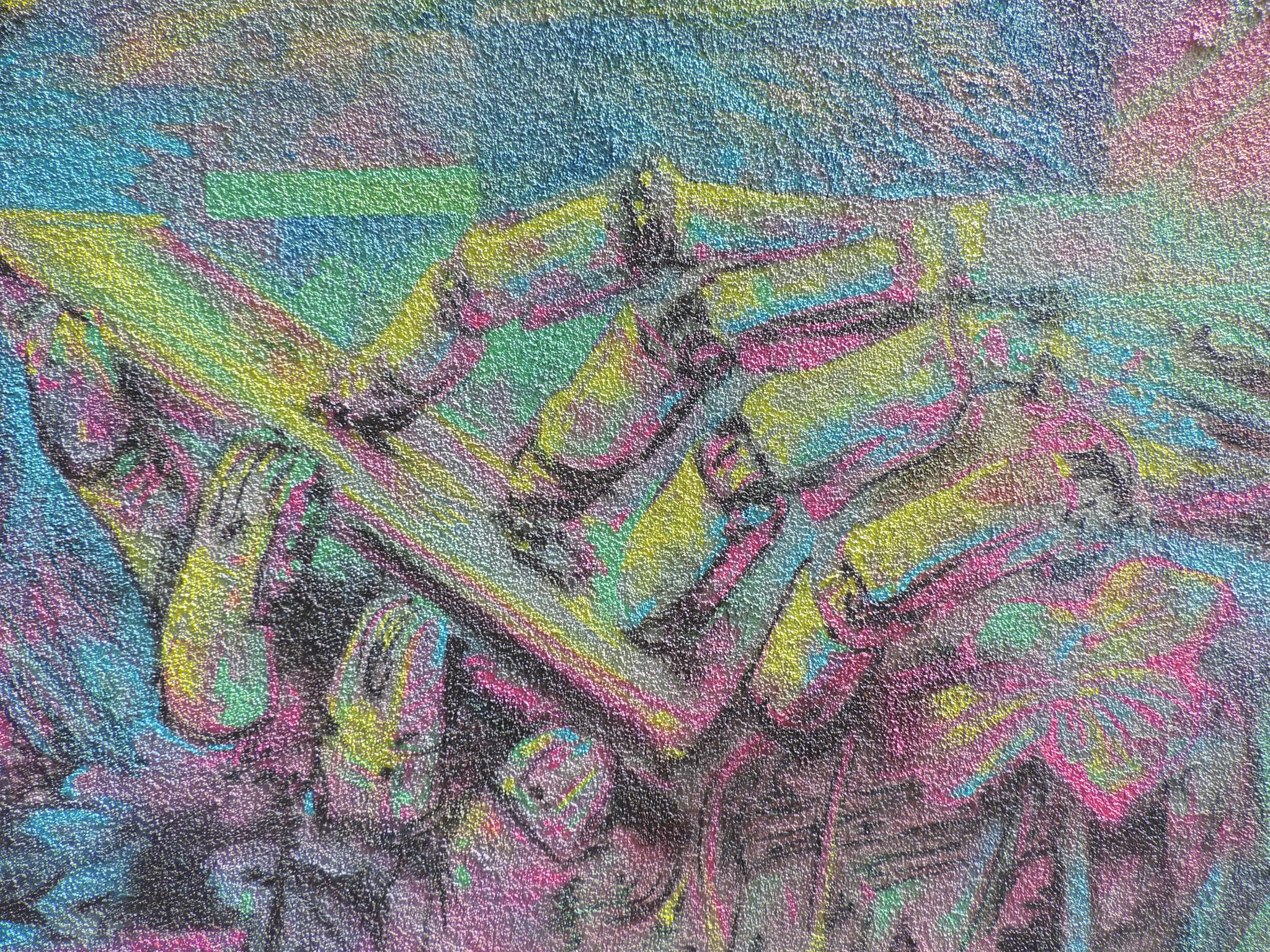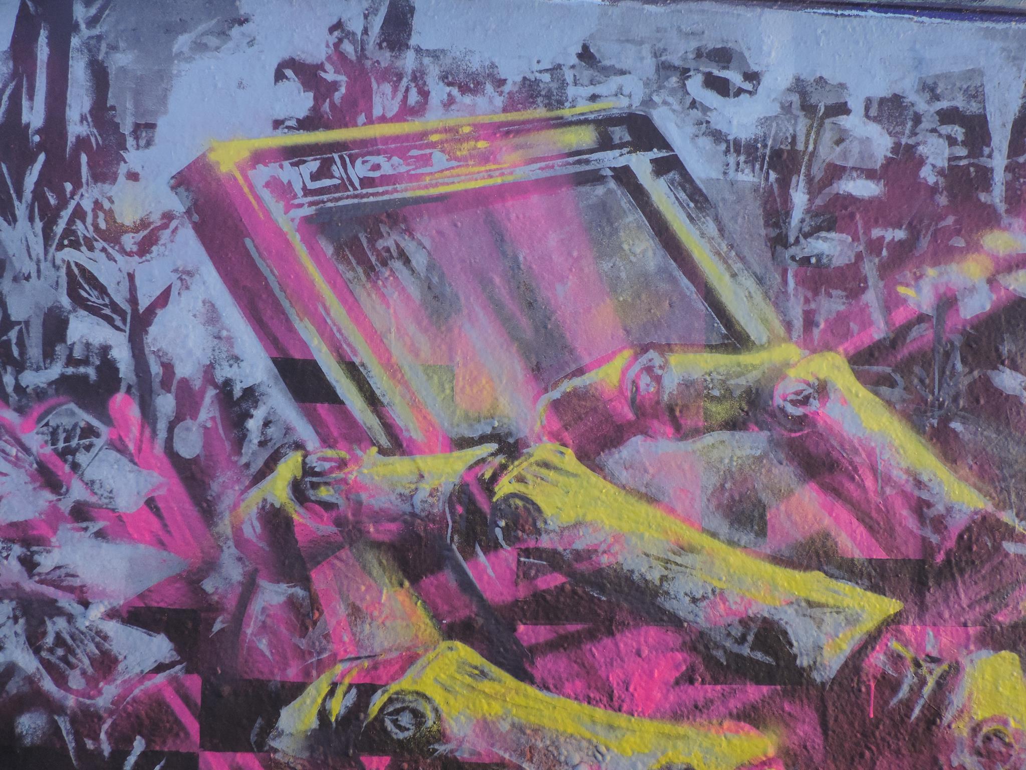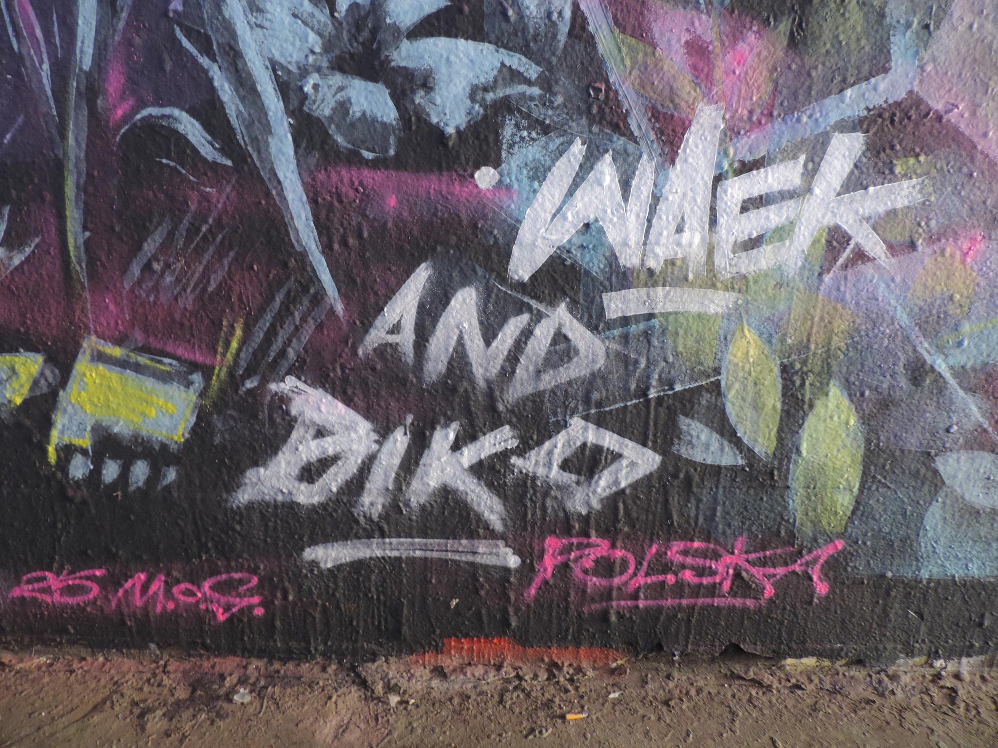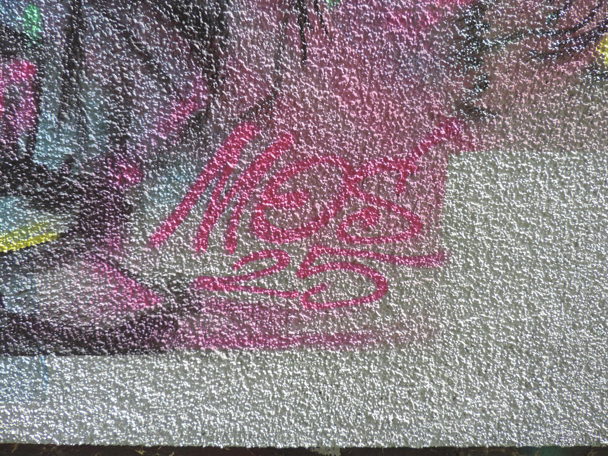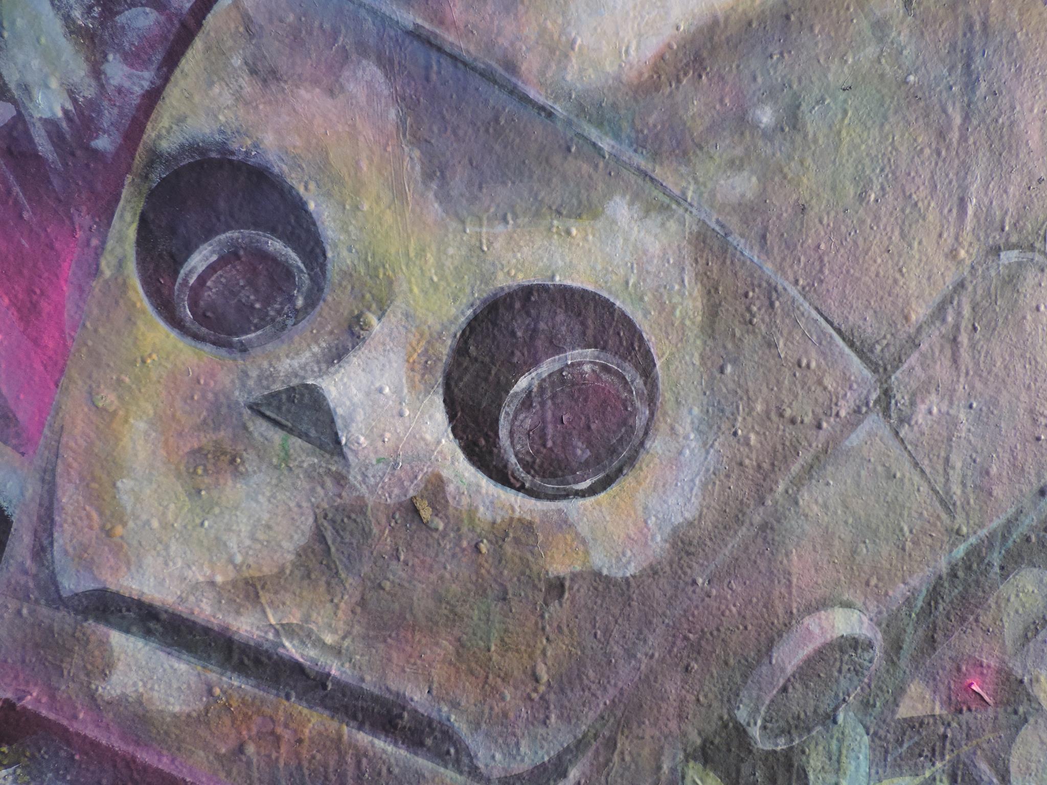 The artists involved in the two entrance walls to the basement on the west side have already painted several other larger works on the main walls. Here, they played around and just put stuff together, creating a fantastic smorgasbord, eaten away and overrun by rats. The walls on the underpass entrance to the left and right were created in a wonderful chaotic rat theme by BIKO, COMPOST, DELEON, ESOBE, SOBE and WEAK.