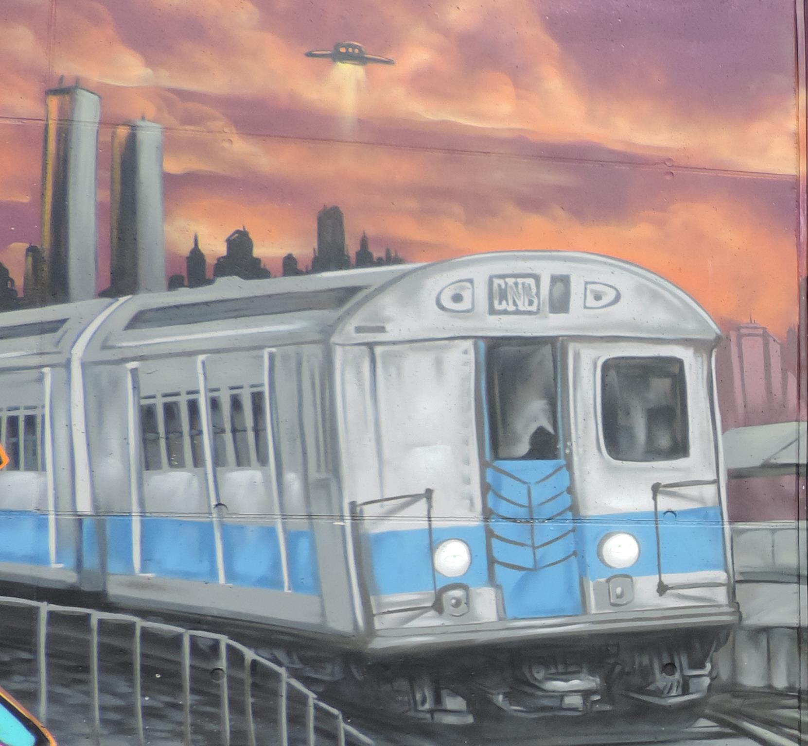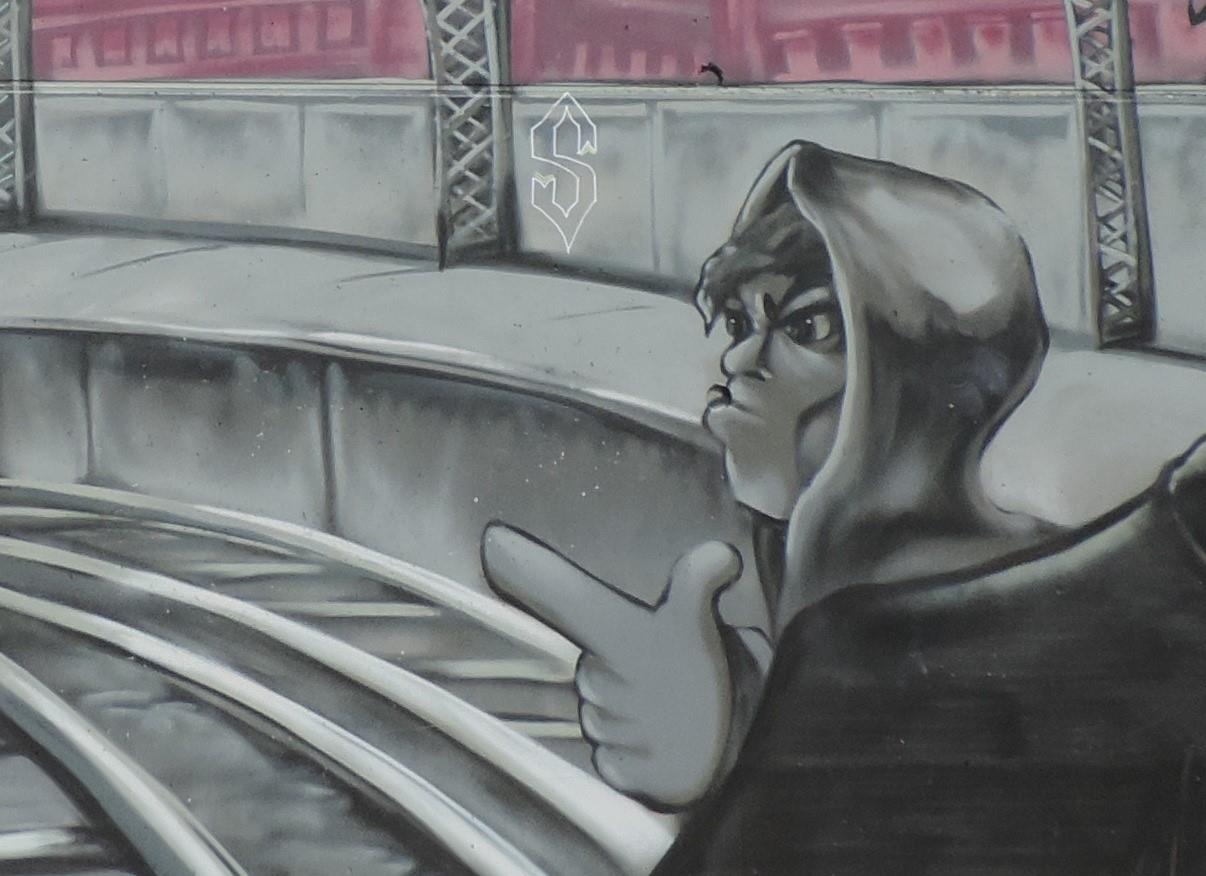 This wall is part of the great CNB & Friends collaboration concept. Several crew members from CANS N‘ BEERS together with befriended artists created a fantastic hip hop scenery. The artworks were made from left to right by ESOBE, BOMBER, ALIEN, ASEM, RODE, SMOK and YOURS