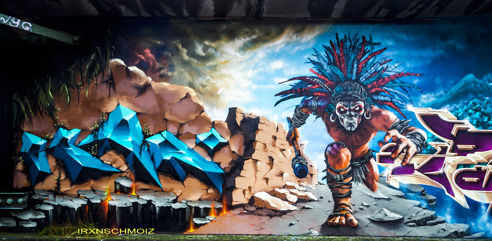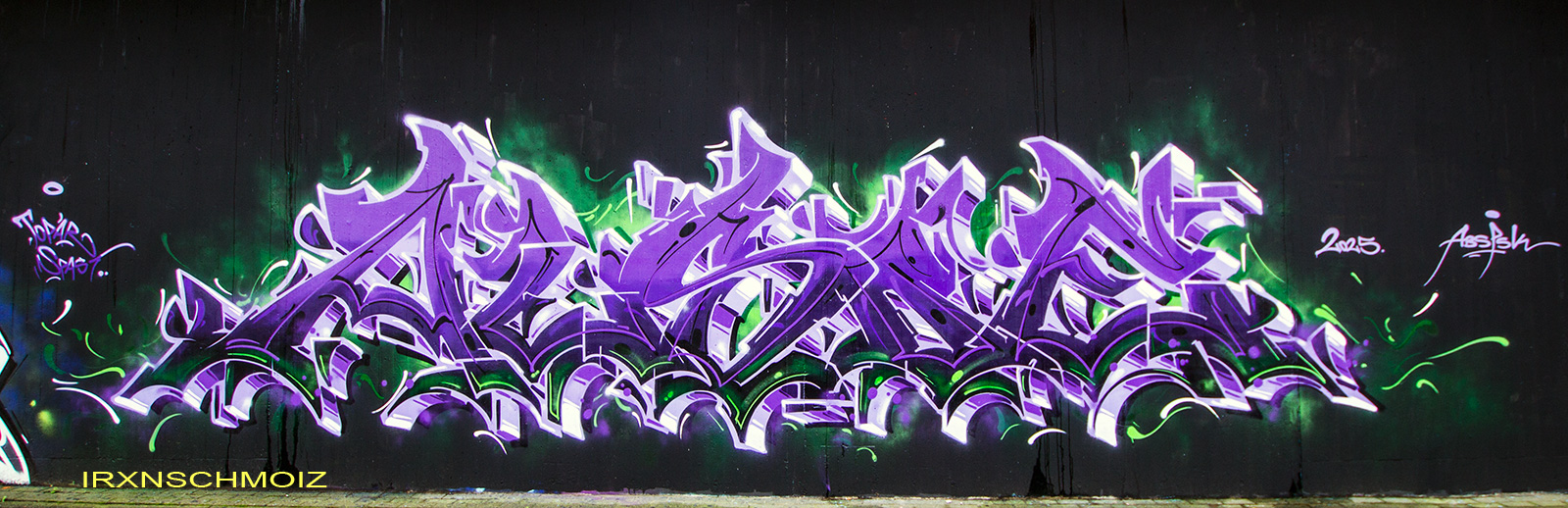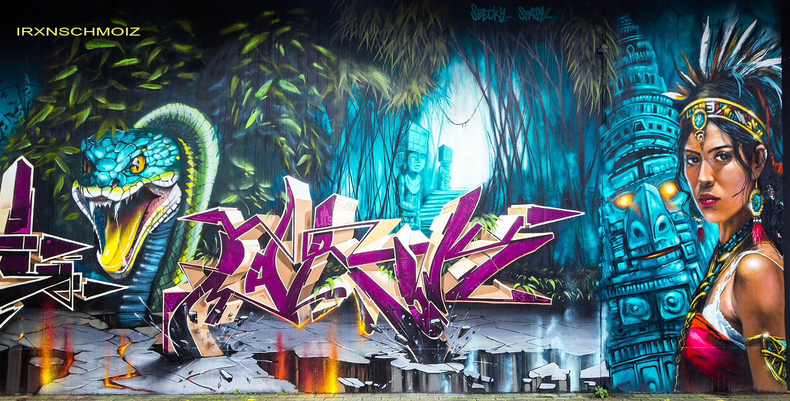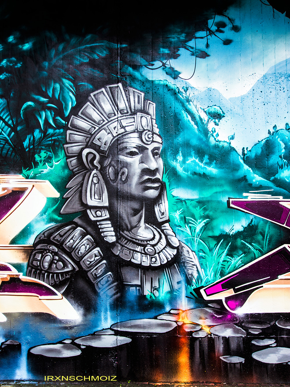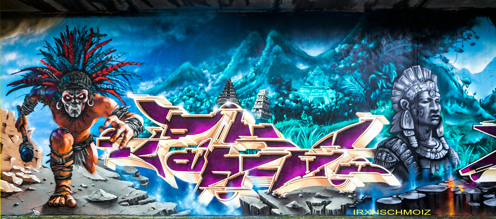 This page features works from the Graffiti Hall of Fame, which is mainly located on the northern wall of the railway embankment facing Donnerschweer Street. There is a legal wall for painting here since 2022, but large-scale collaborative projects are also carried out. For example, in August 2025, the amazing crew TEAM MAD FLAVA created a breathtaking concept wall with an Aztec jungle theme. This masterpiece and other works are of astonishing quality and definitely worth a visit. As well check out the individual pages for the artworks especially from the MEMUR FESTIVAL and for the other artworks throughout the city.