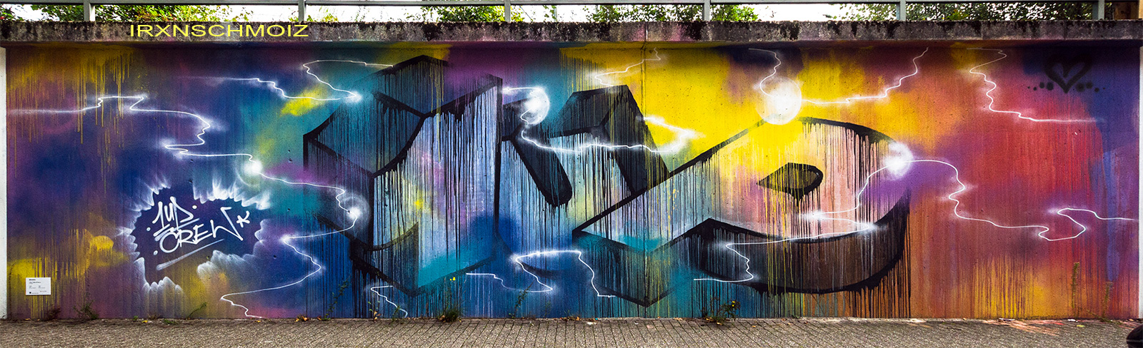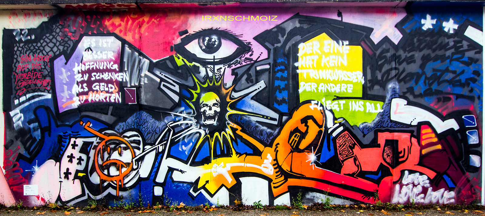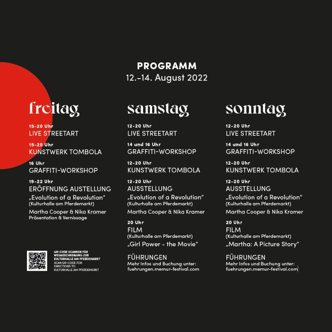 The fantastic MEMUR FESTIVAL took place in Oldenburg on the railway embankment wall along the Bundesbahnweg from August 12th to 14th in 2022. The title is a combination of memorial and mural. More than 30 regional and international artists designed a 280-meter-long wall with magnificent works depicting experiences and impressions of recent years, such as the pandemic, war, conflicts, and other areas of social and political tension. The common denominator of the artworks was thus the experience and reflection of collective memory. On the opposite side, the wall facing the former roundhouse was simultaneously designated the “Wall of Fame”, featuring additional graffiti by sprayers. The art and culture festival was organized by the association INSTITUT FÜR VERKNÜPFUNG with support from the STADTMUSEUM and the PRÄVENTIONSRAT. The event was accompanied by a magnificent photo exhibition „Evolution of a Revolution“ featuring works by legends MARTHA COOPER and NIKA KRAMER. In addition, various workshops were held and the films “Girl Power” and “Martha: A Picture Story” were shown. As well check out the individual pages for the artworks especially at the Pferdemarkt Hall of Fame and for the other artworks throughout the city.