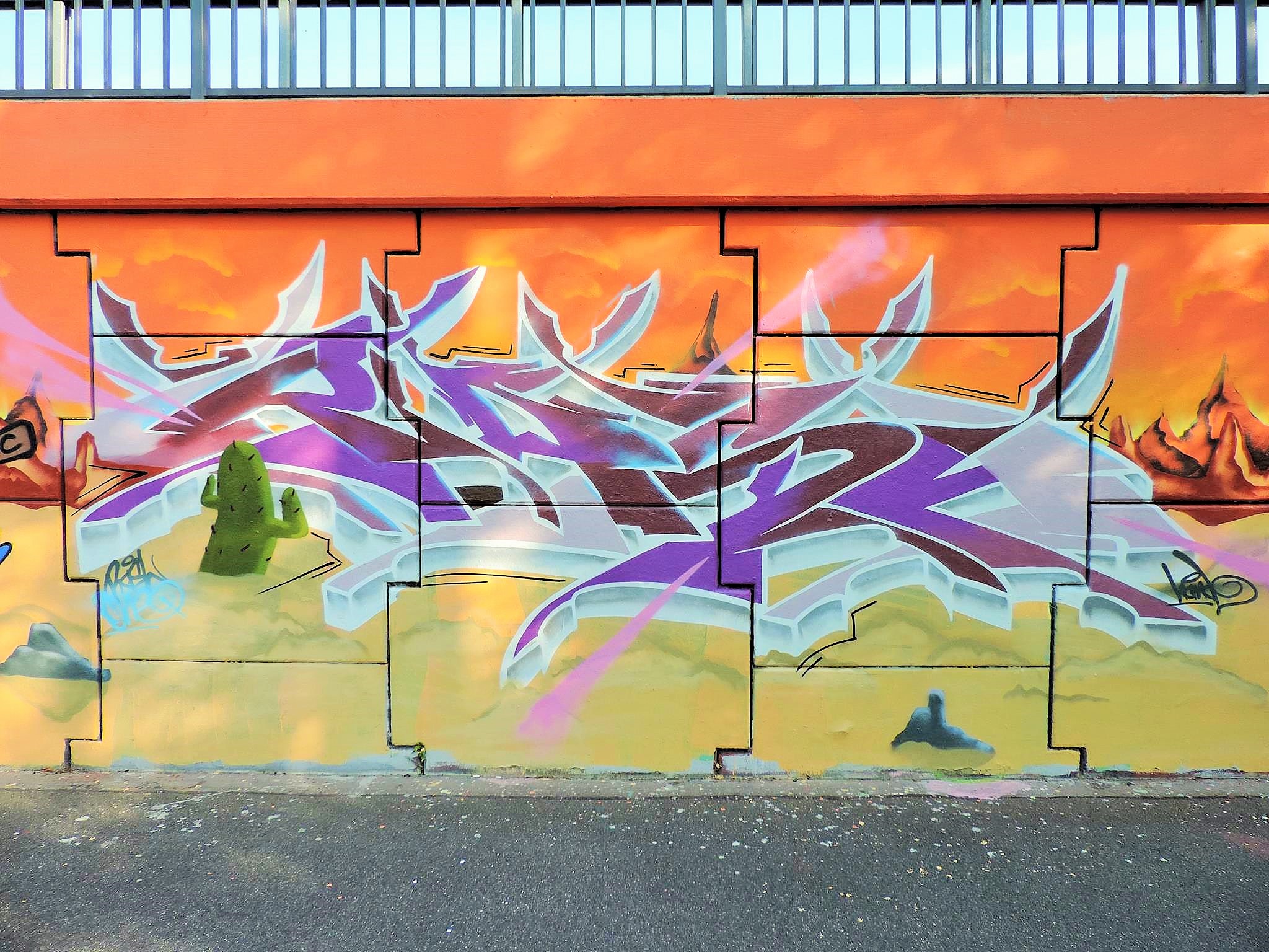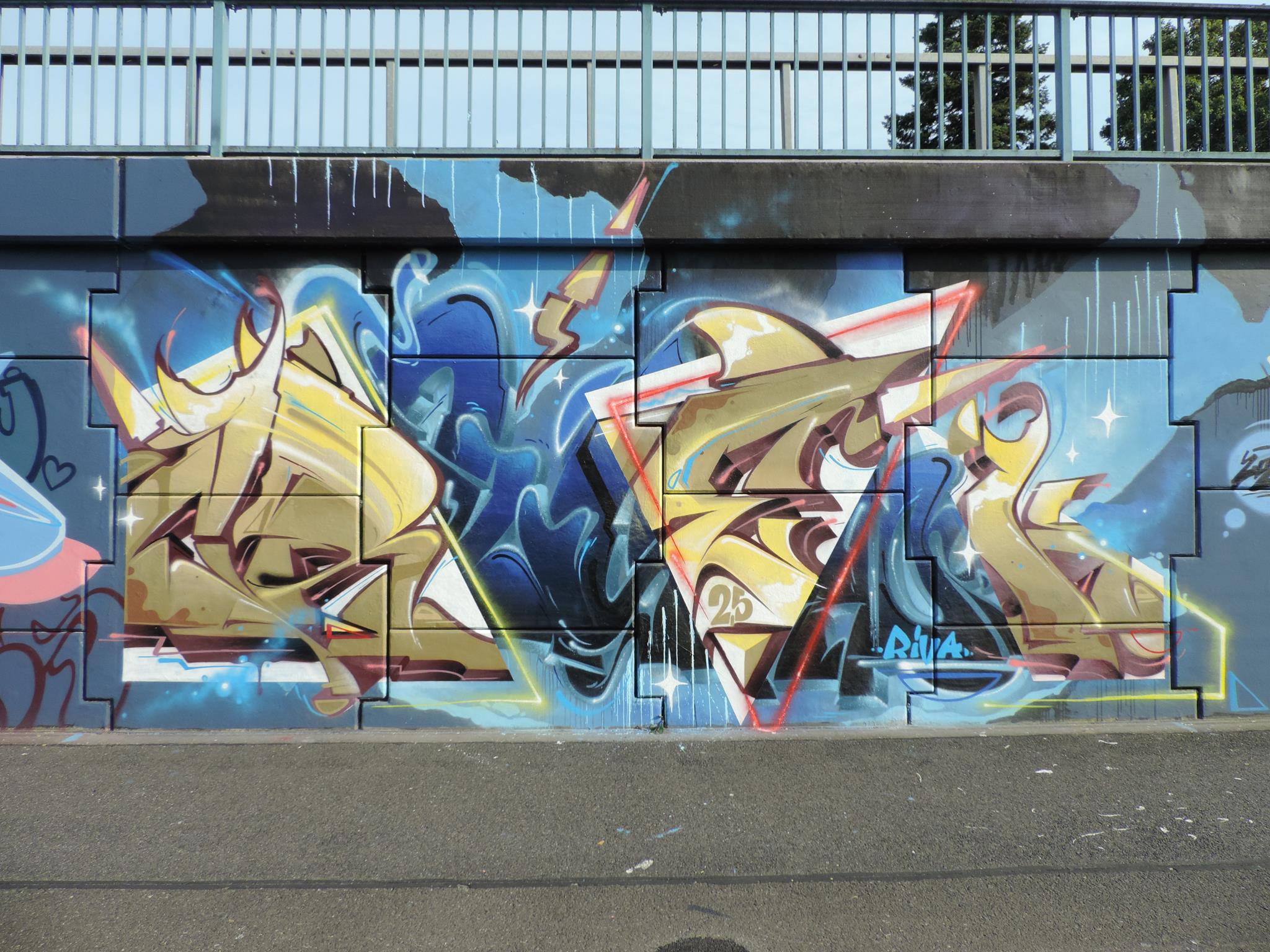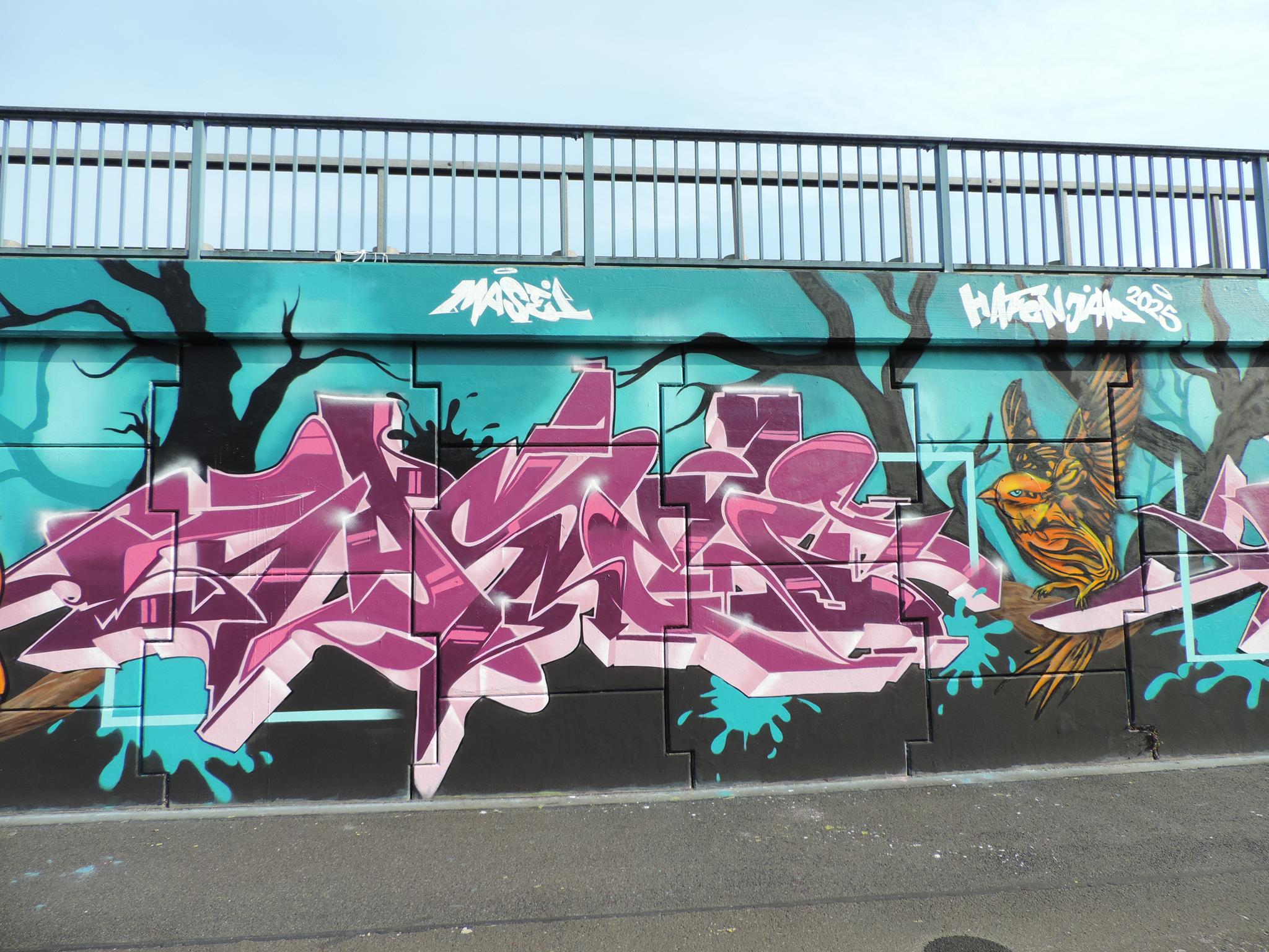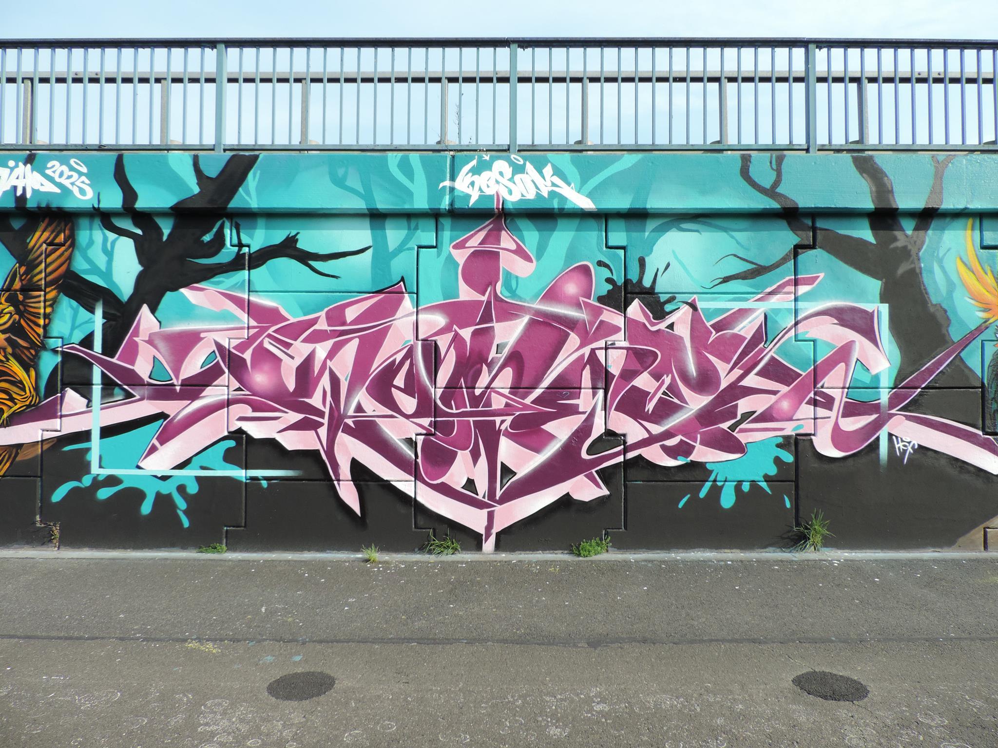 From 25th to 27th of July in 2025, the fantastic HAFEN JAM took place again in Raunheim, with 137 artists expected to attend this year. The long harbor wall with its two underpasses was completely redesigned with magnificent graffiti. The musical lineup was also impressive once again, featuring great hip hop MCs and DJs. Almost 15 years ago, MIAMI NEIß and MASEI ONE launched the first event. In 2019, DJ SAPIKO came on board and TEAM ANTIGRAU was founded, which has been organizing the legendary event annually ever since. Meanwhile it has grown into a huge festival, and you can find in the following an extensive documentation on this year’s Jam, as well pages to the previous years and also an archive with all artists. If you understand German, you can listen to the interview with TEAM ANTIGRAU about the history of this magnificent spectacle and their many other projects. An English translation will follow soon.