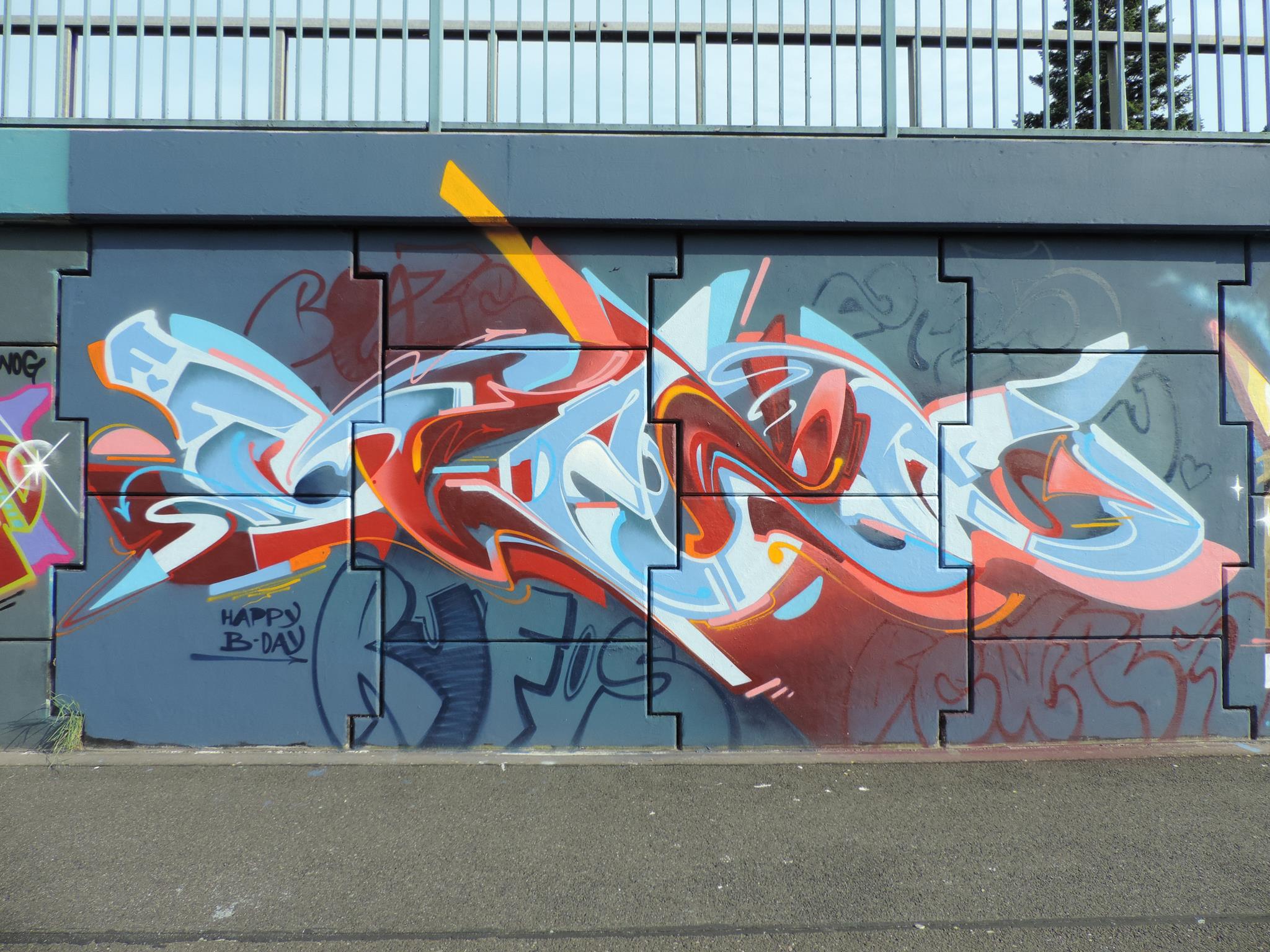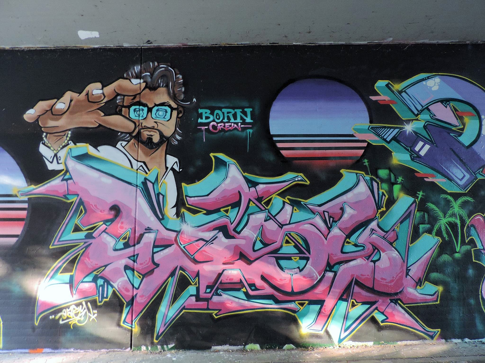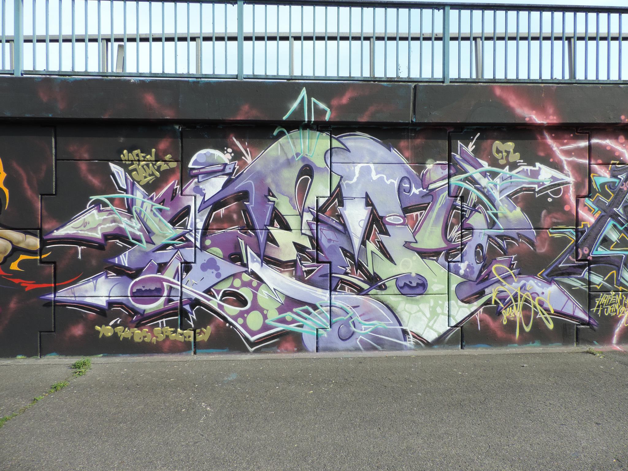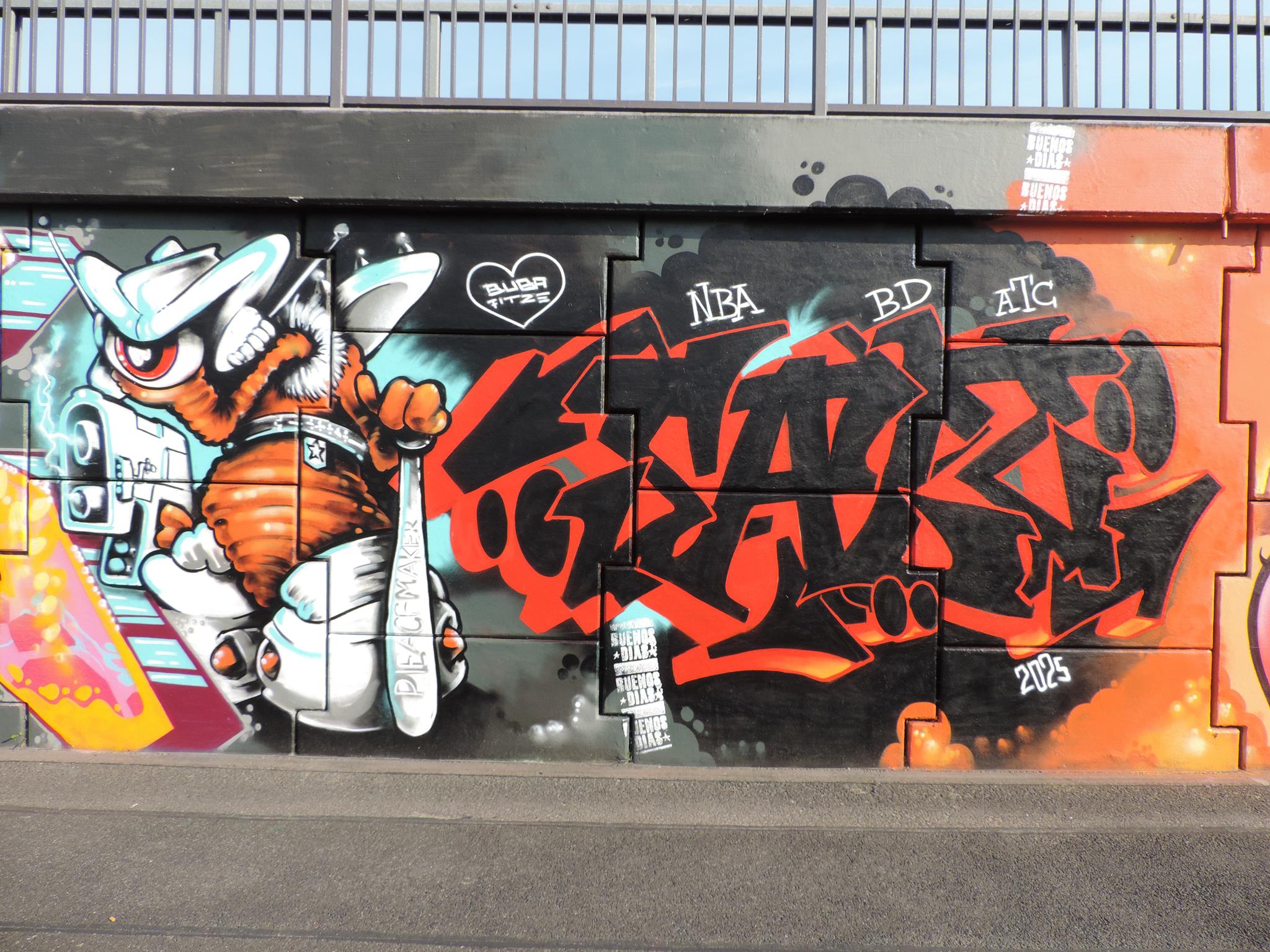 From 25th to 27th of July in 2025, the fantastic HAFEN JAM took place again in Raunheim, with 137 artists expected to attend this year. The long harbor wall with its two underpasses was completely redesigned with magnificent graffiti. The musical lineup was also impressive once again, featuring great hip hop MCs and DJs. Almost 15 years ago, MIAMI NEIß and MASEI ONE launched the first event. In 2019, DJ SAPIKO came on board and TEAM ANTIGRAU was founded, which has been organizing the legendary event annually ever since. Meanwhile it has grown into a huge festival, and you can find in the following an extensive documentation on this year’s Jam, as well pages to the previous years and also an archive with all artists. If you understand German, you can listen to the interview with TEAM ANTIGRAU about the history of this magnificent spectacle and their many other projects. An English translation will follow soon.