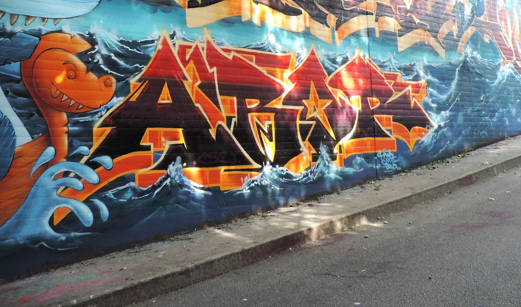 This great concept wall on the whole north wall of the upper bridge shows a maritime theme with sea gods and water creatures. The artworks were created from left to right by ROTS, WHYRE, BUECK, EKSID, ZWERG, ABUR 13, BAZD 86, ANPY, BRICK, ABOR, SHAR and ATMOS