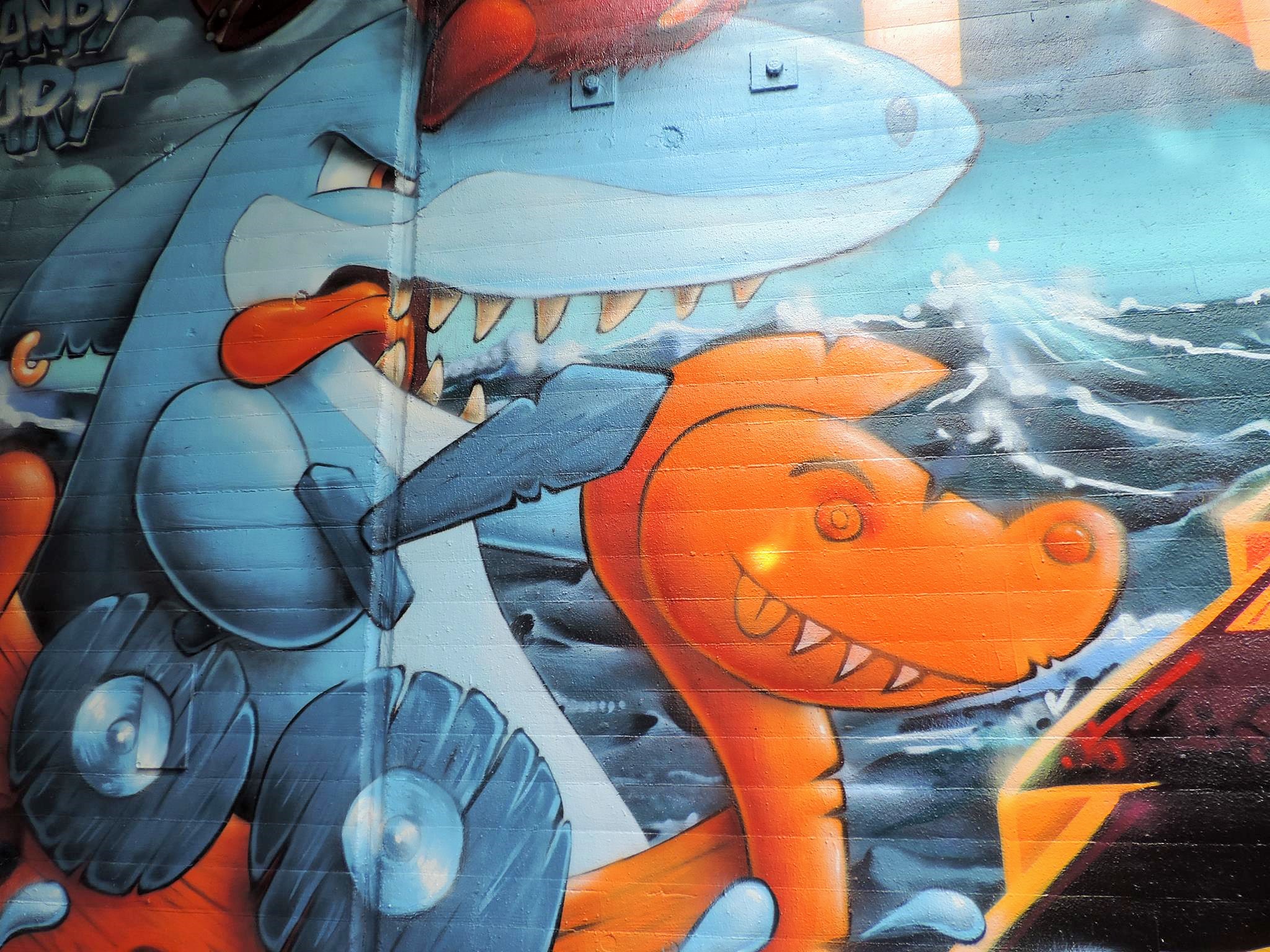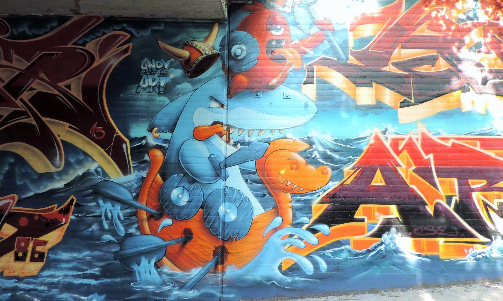 This great concept wall on the whole north wall of the upper bridge shows a maritime theme with sea gods and water creatures. The artworks were created from left to right by ROTS, WHYRE, BUECK, EKSID, ZWERG, ABUR 13, BAZD 86, ANPY, BRICK, ABOR, SHAR and ATMOS
