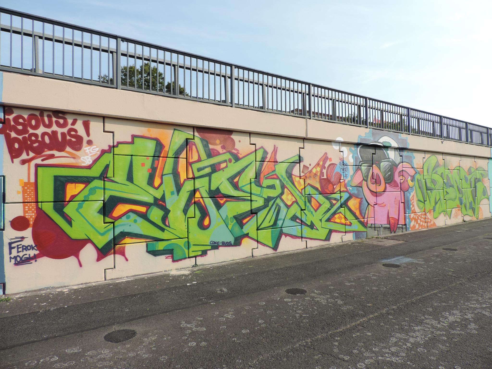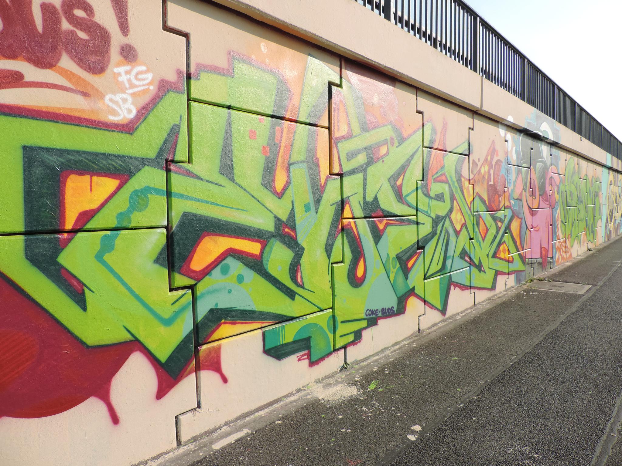 The graffiti on the left are from SHU and STORNO, and the graffiti on the right was made by DEAK