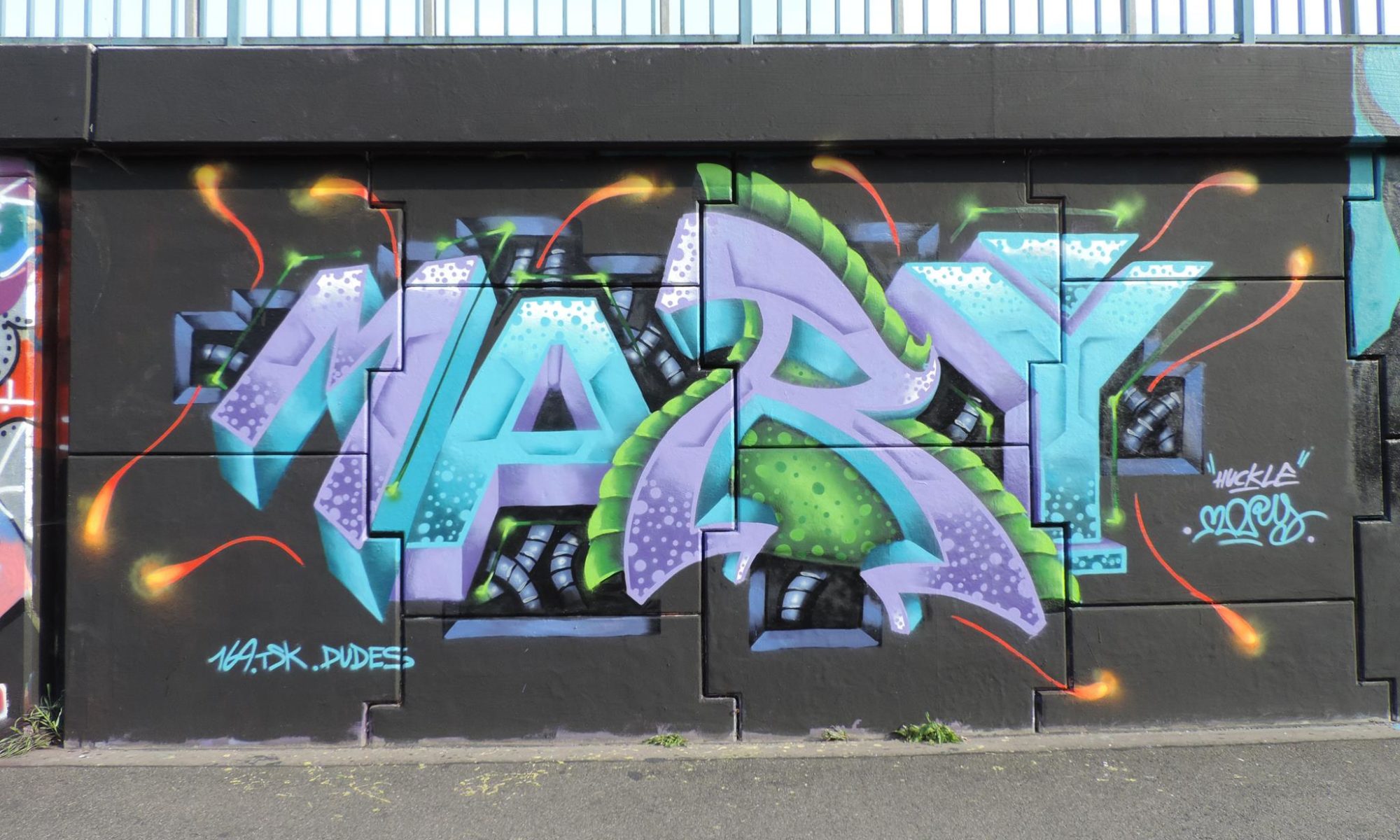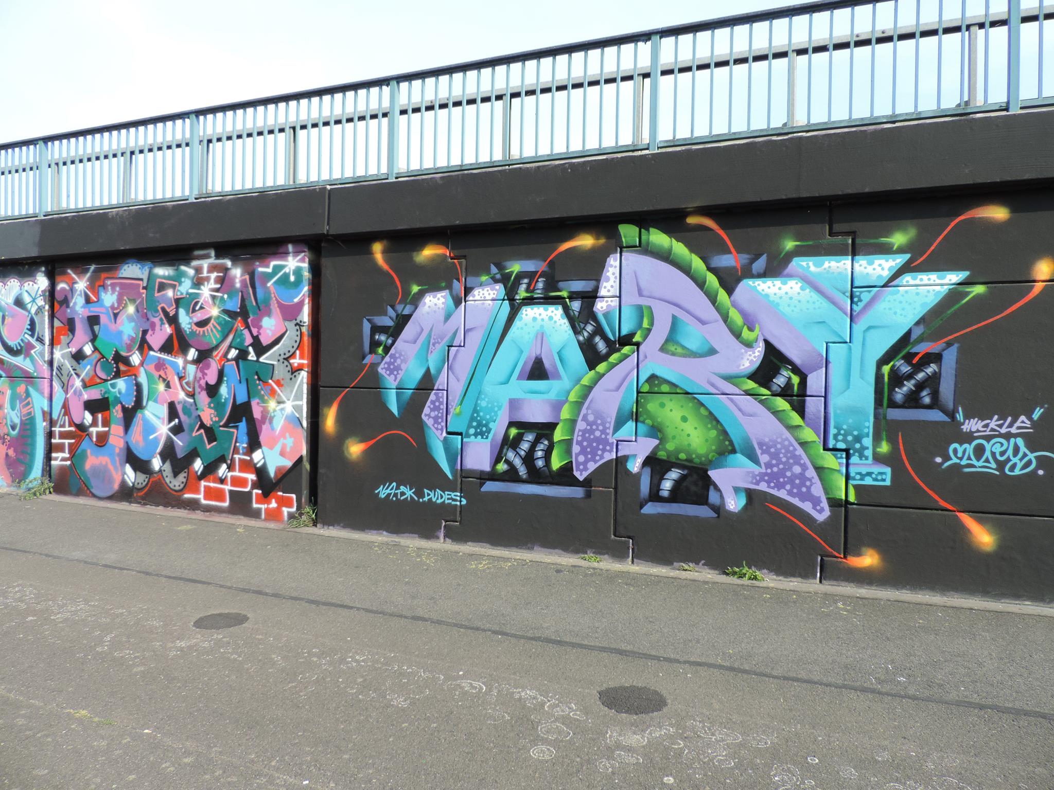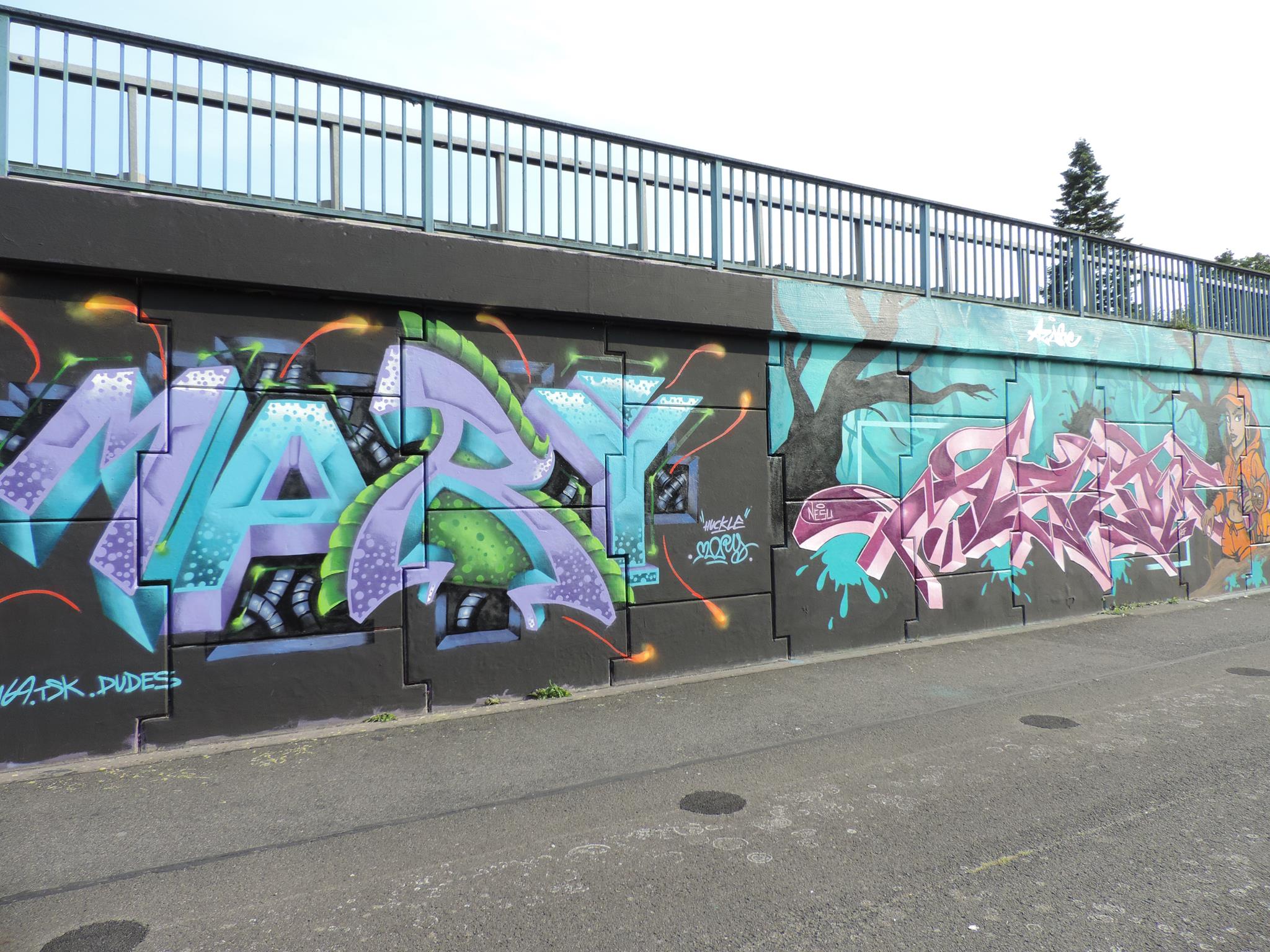 The graffiti on the left was made by PASK and the graffiti on the right is from AZURE