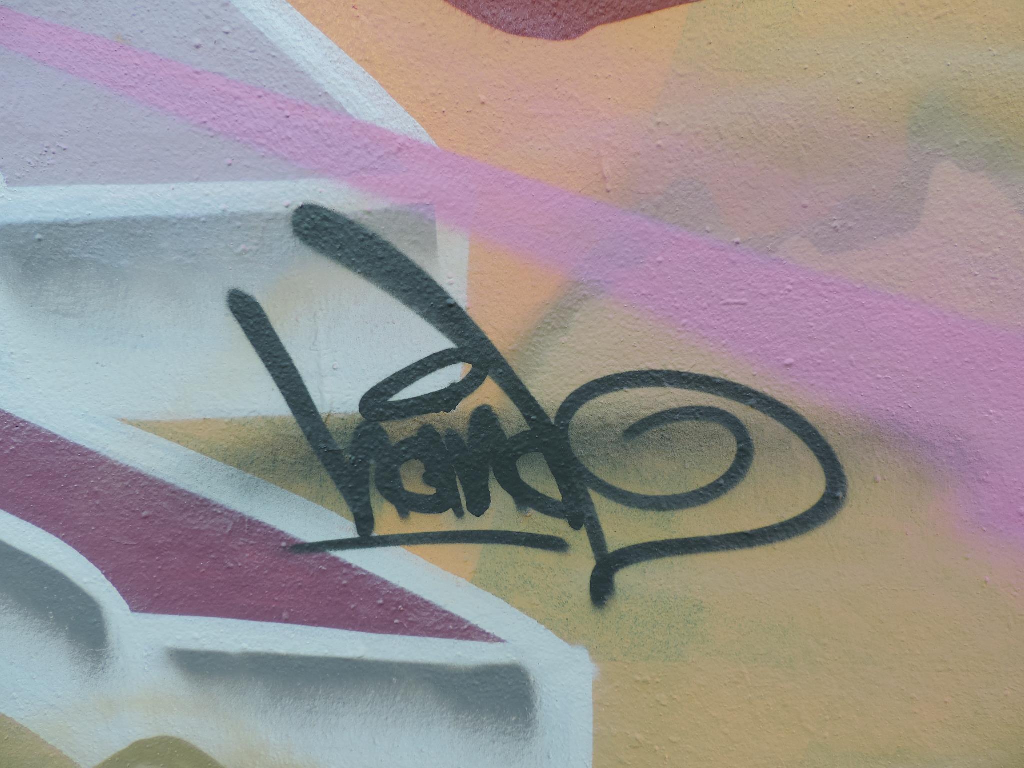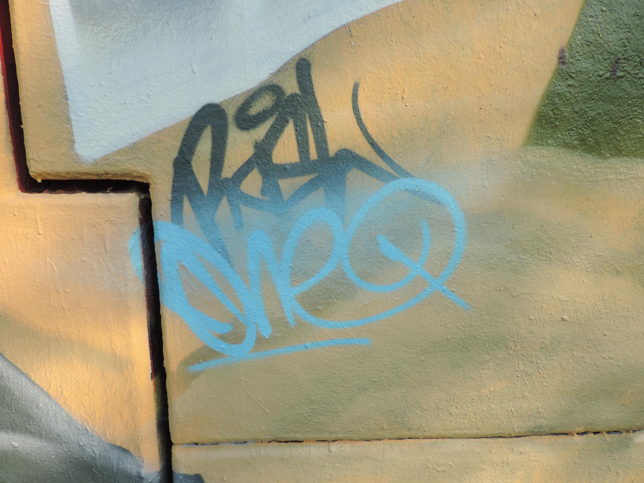 The graffiti on the left is from WUDIE and the artwork on the right was made by PEACE